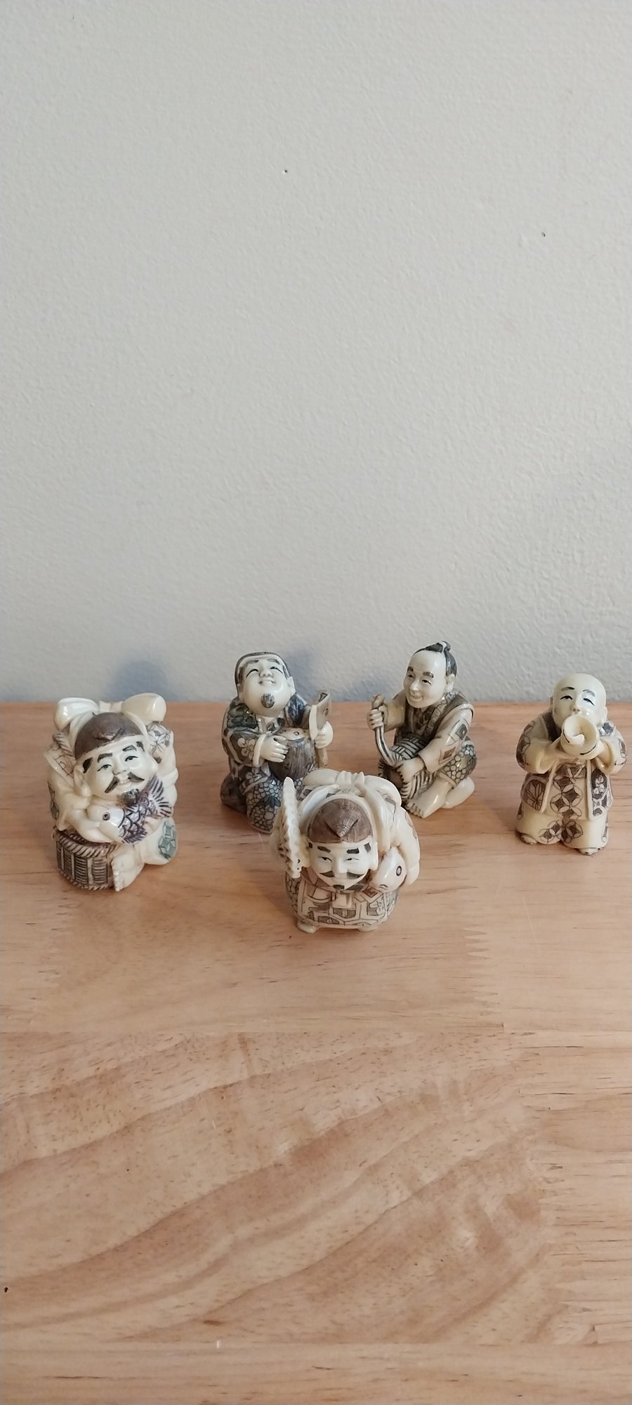 (5) Vintage Japanese Netsuke Beads Of People with Instruments
