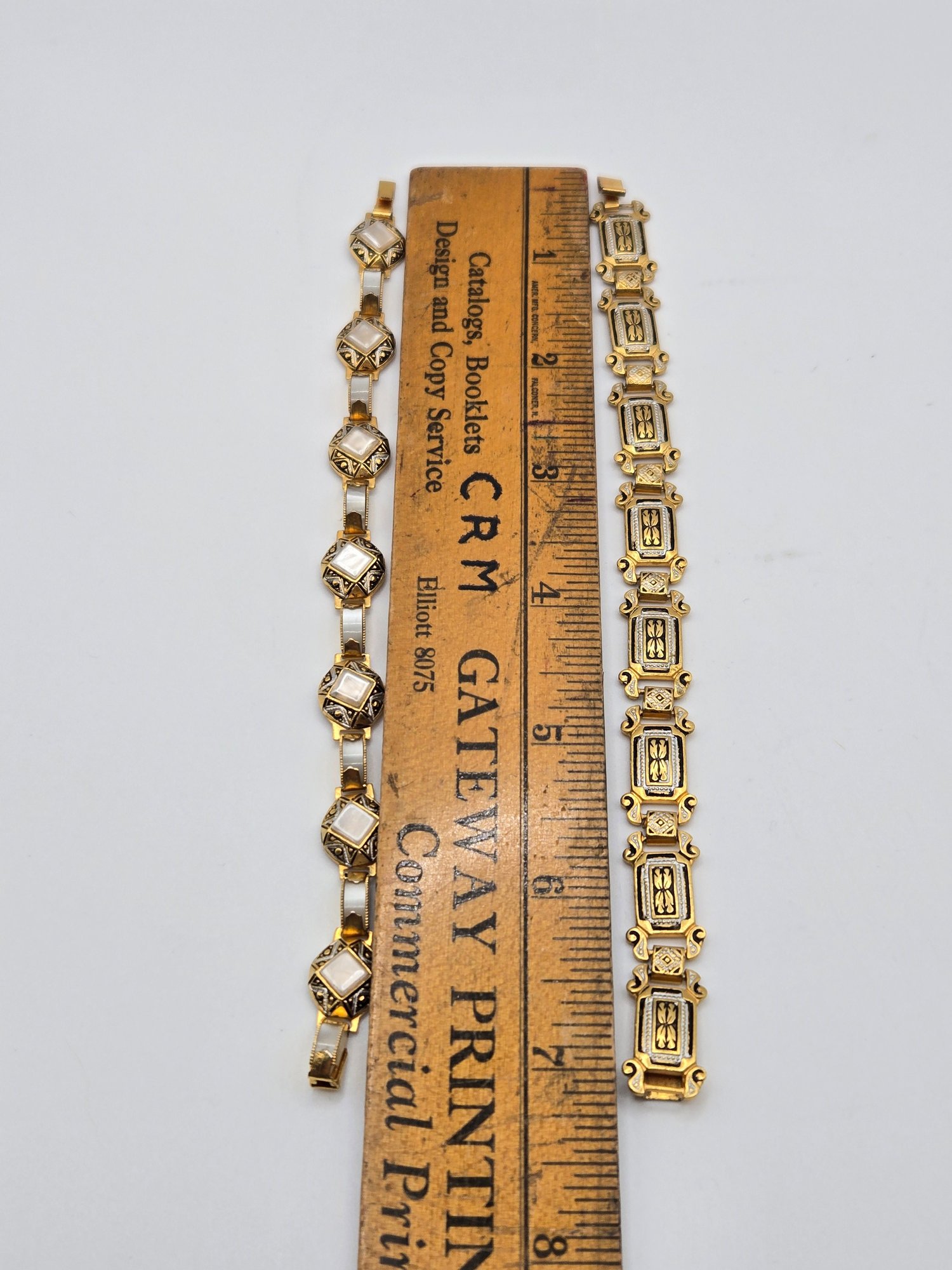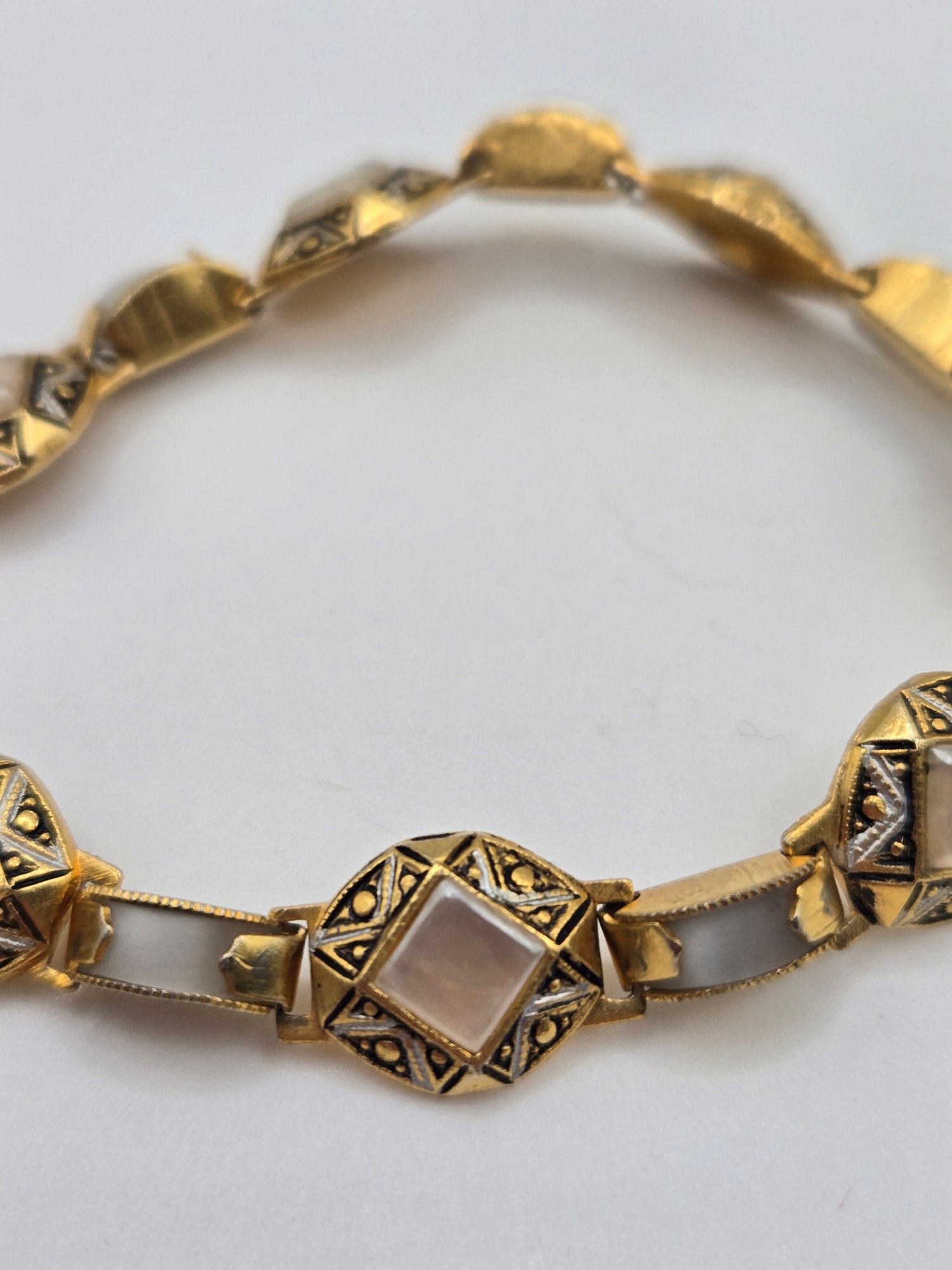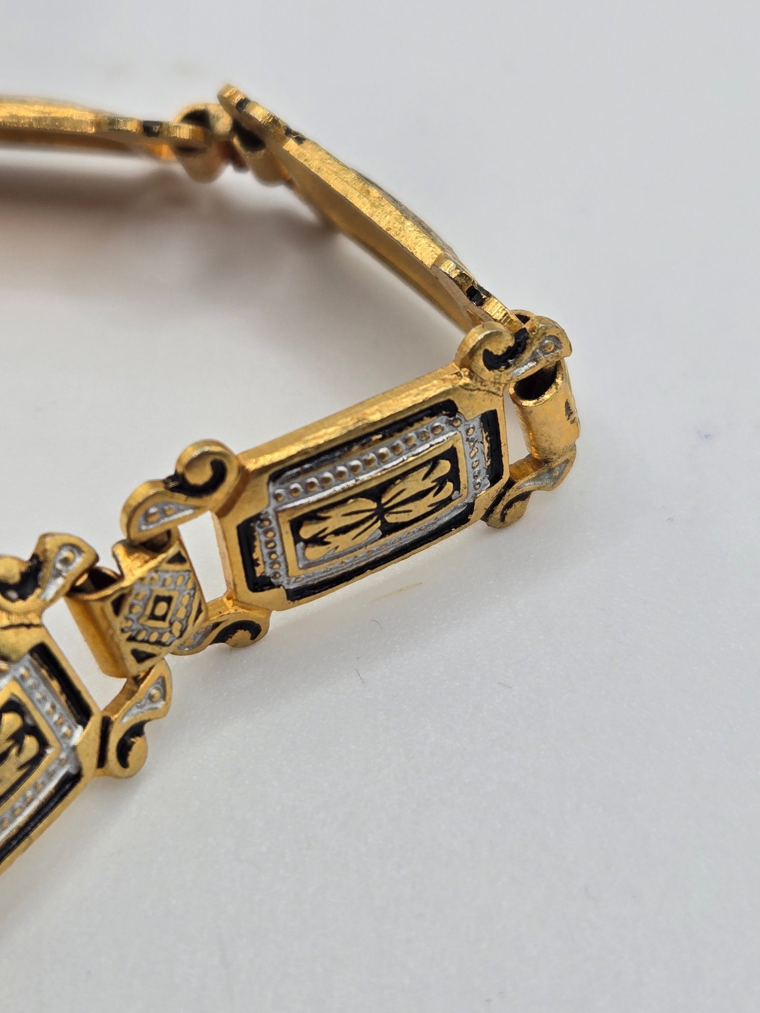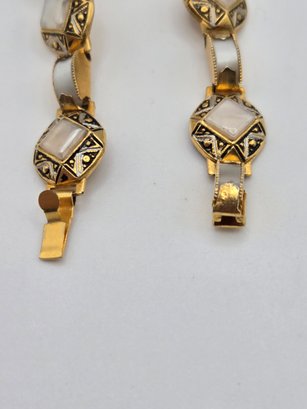 Spanish Toledo Damascene bracelets. One with mother of pearl links