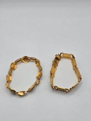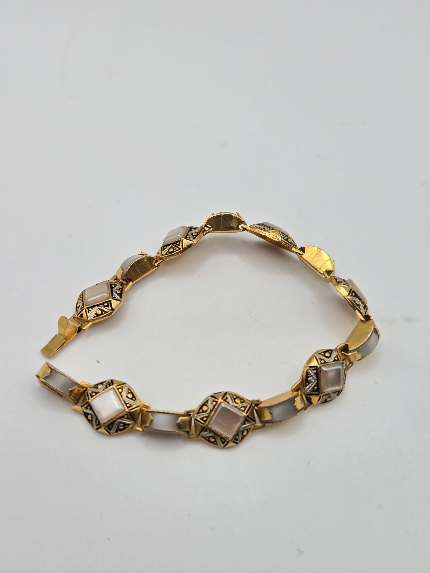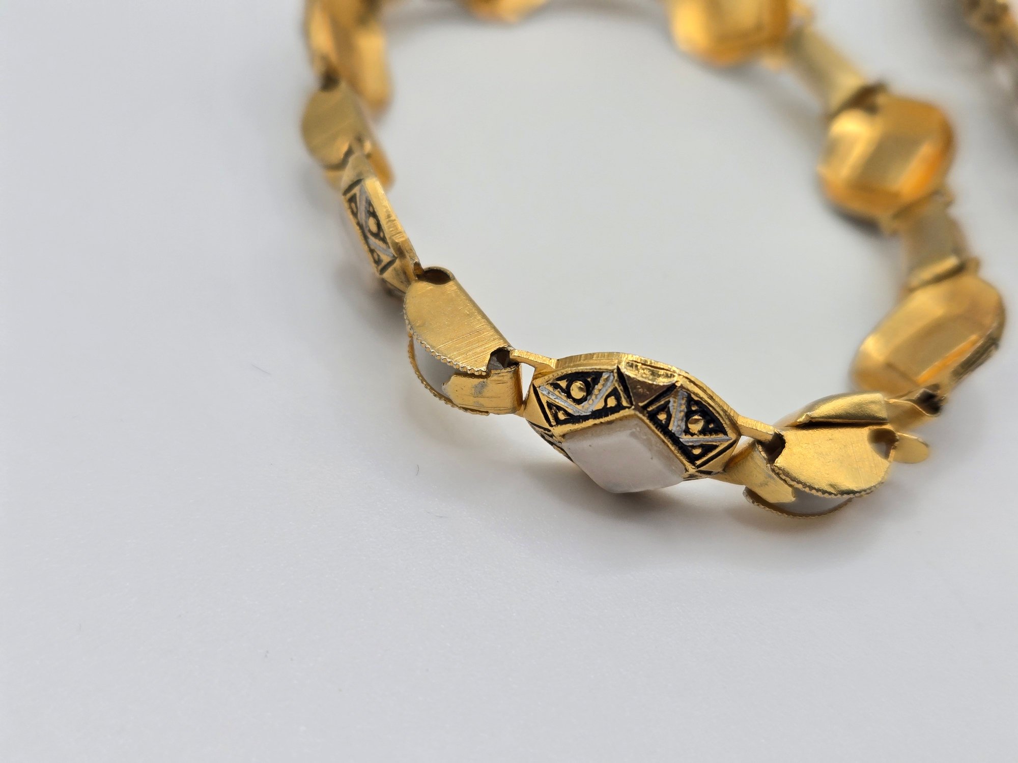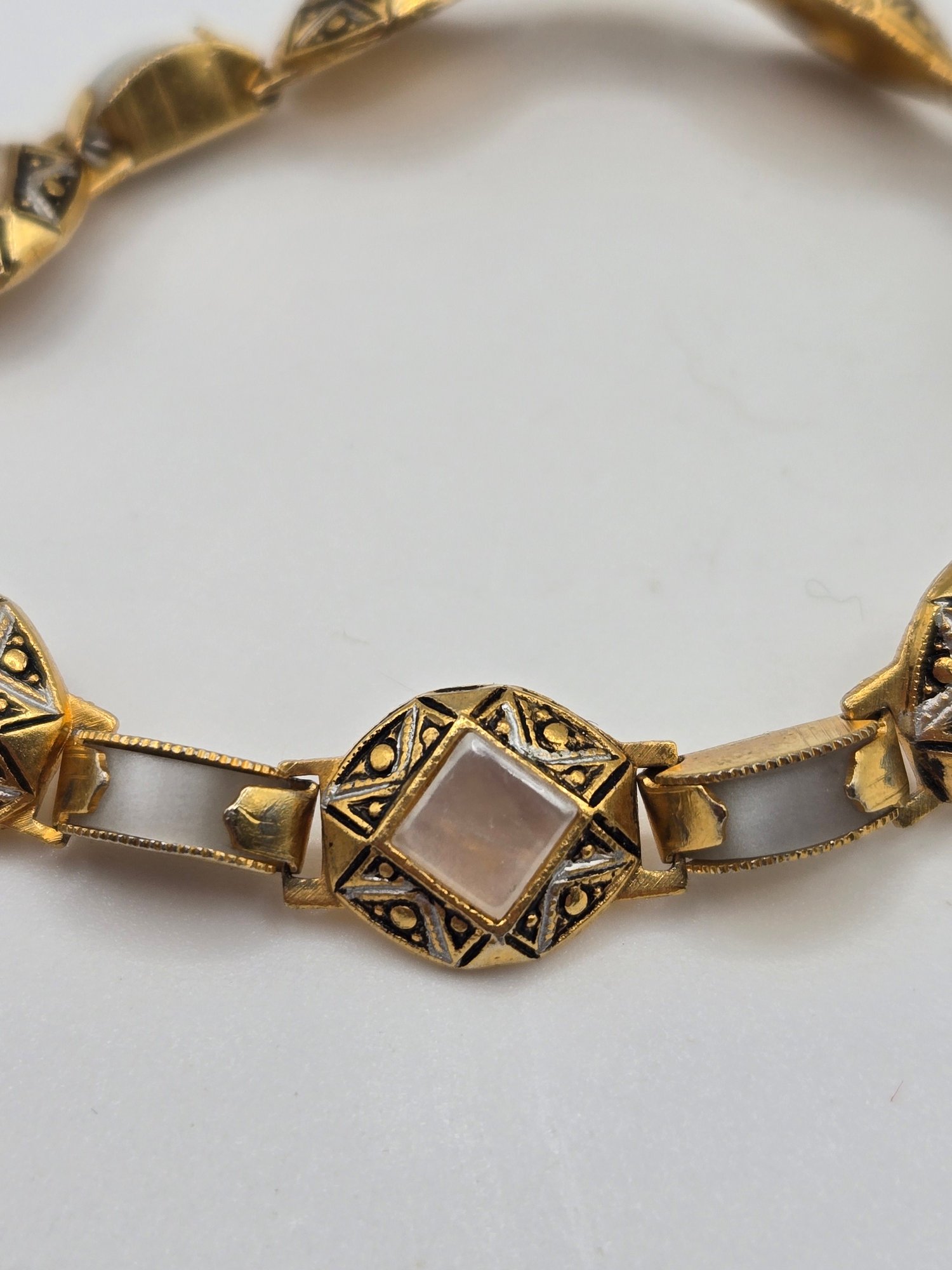 Spanish Toledo Damascene bracelets. One with mother of pearl links