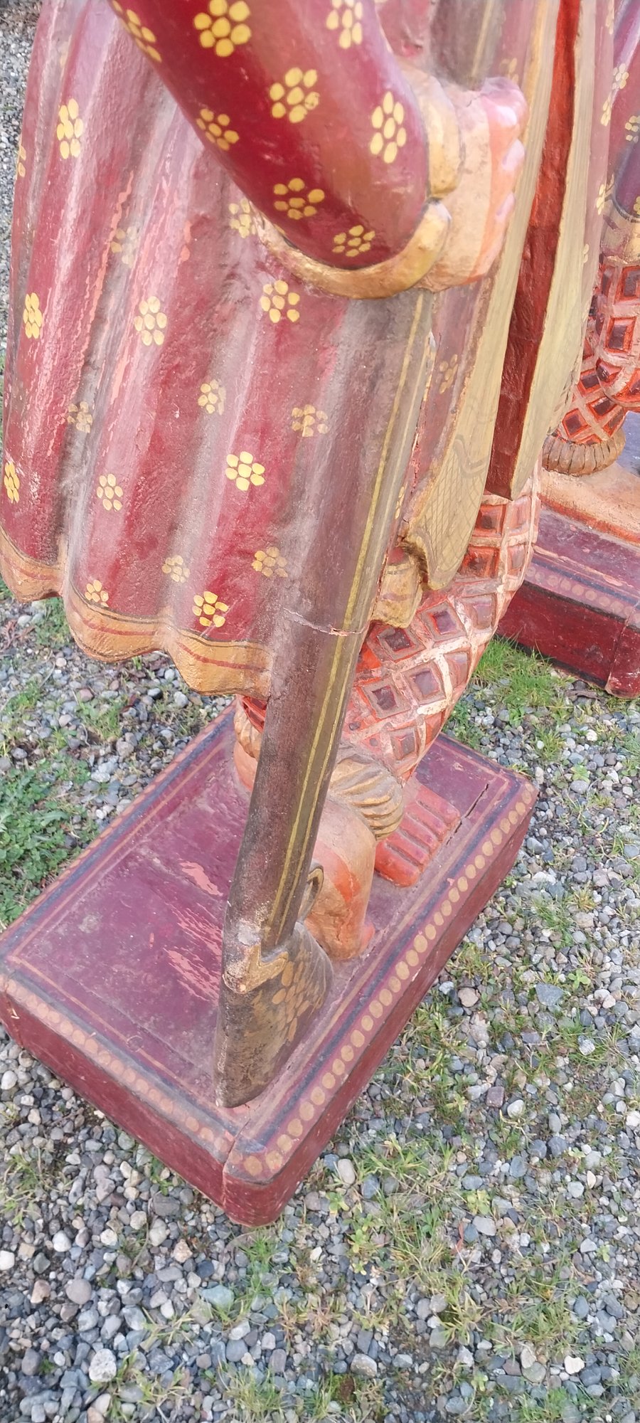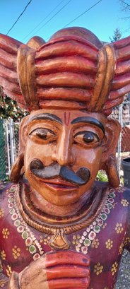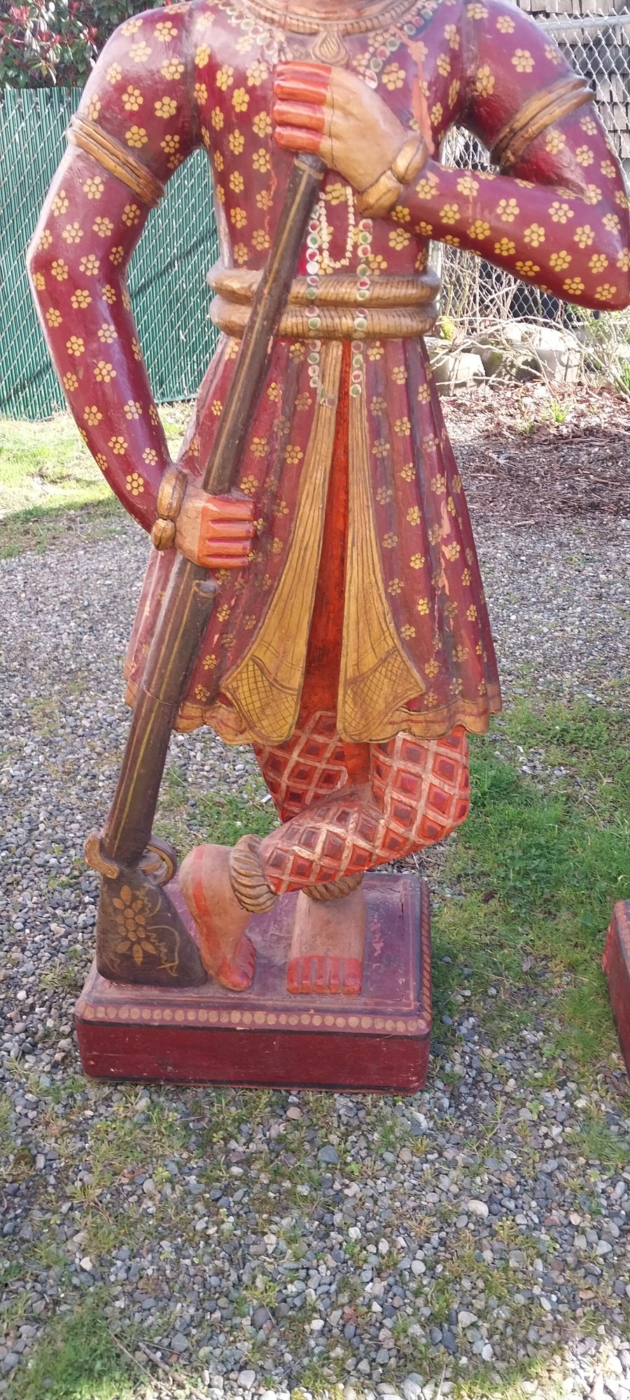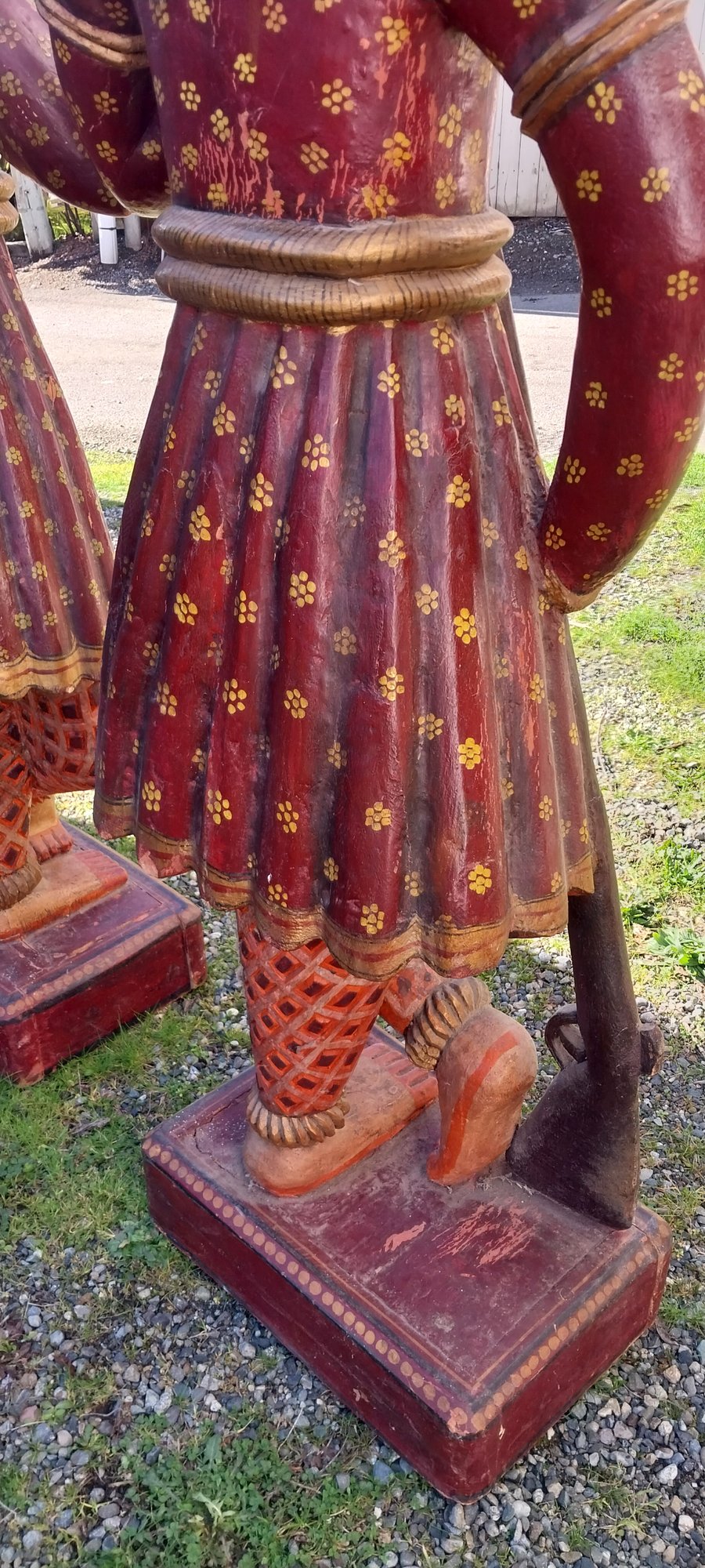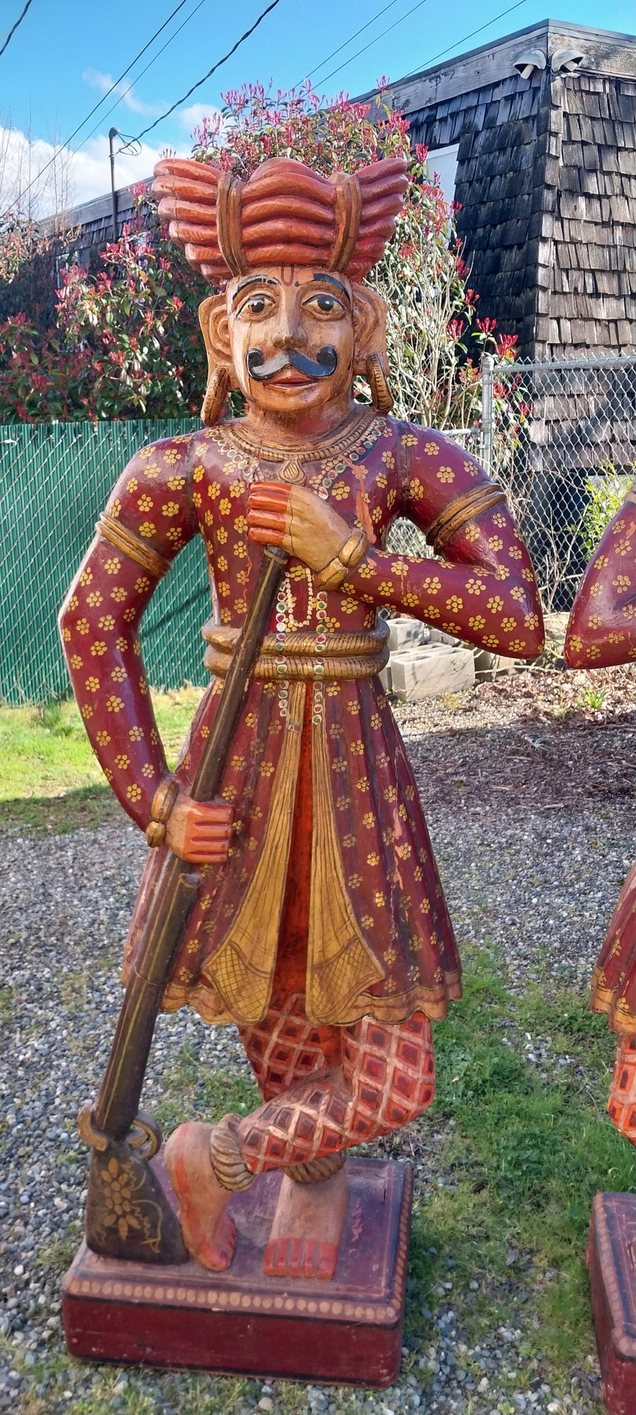 Pair of carved wooden Indian soldier chowkidar statues.