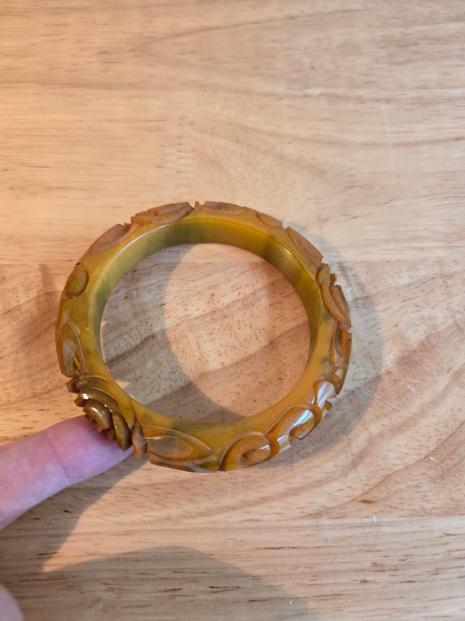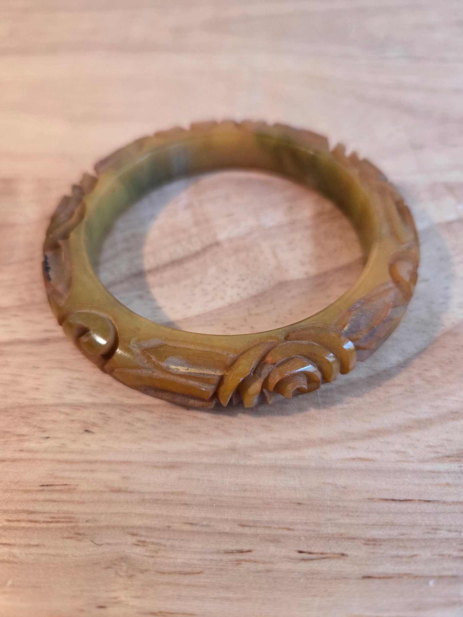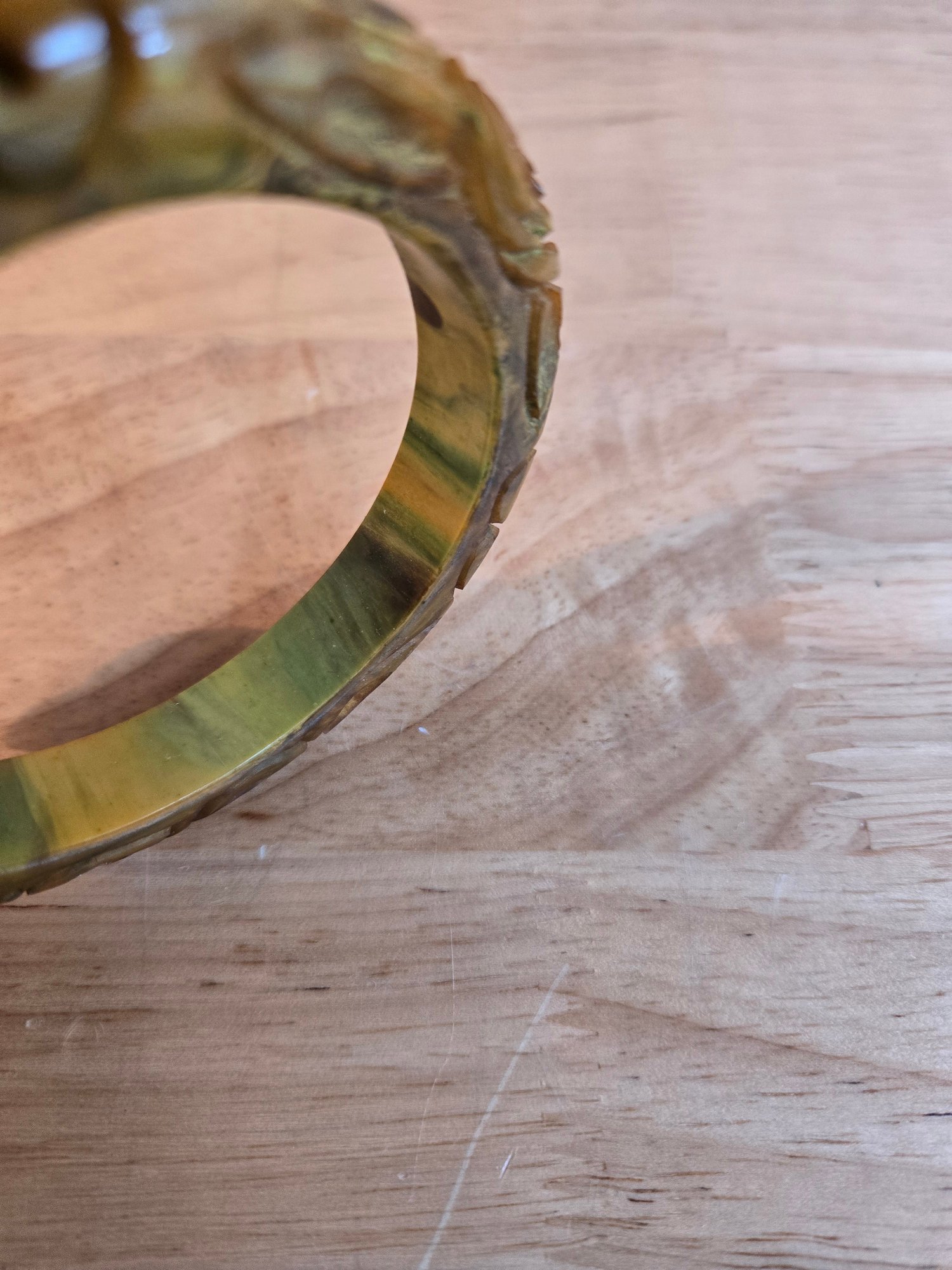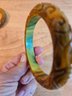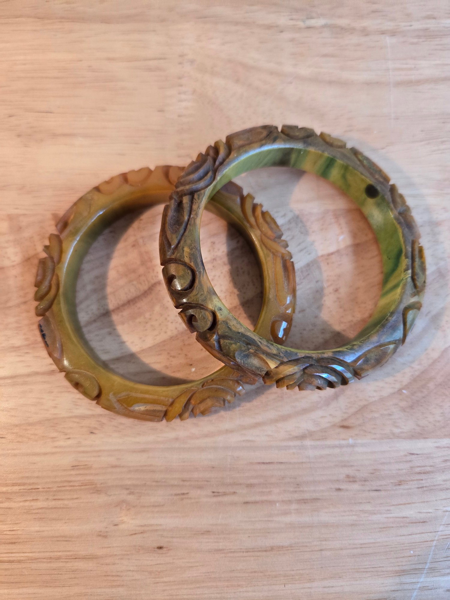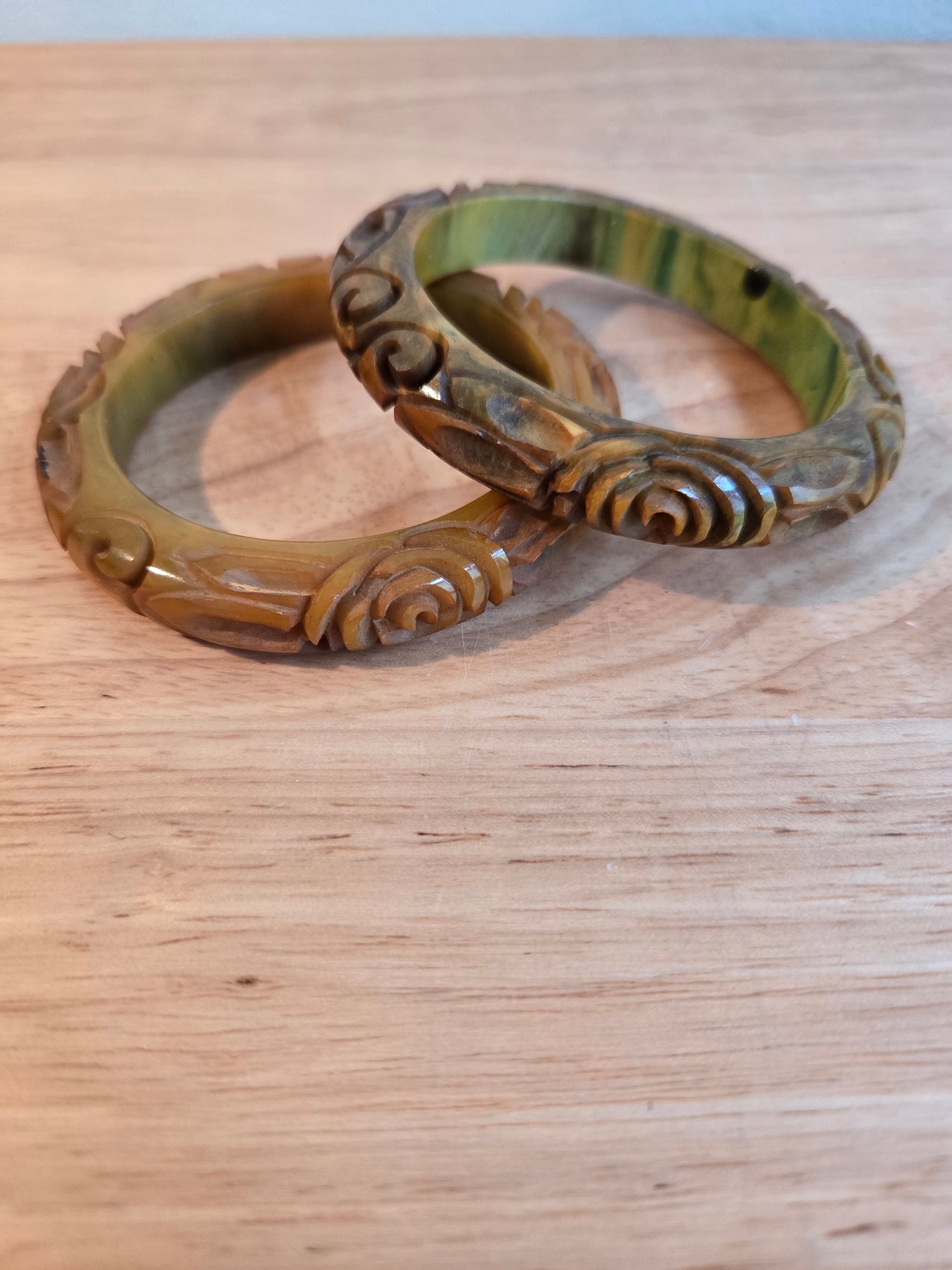 Pair of deeply carved marbled Bakelite bangles bracelets.