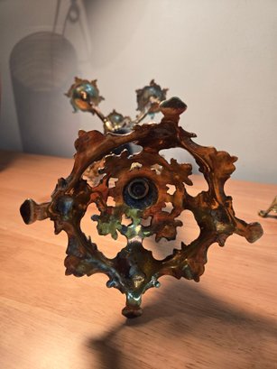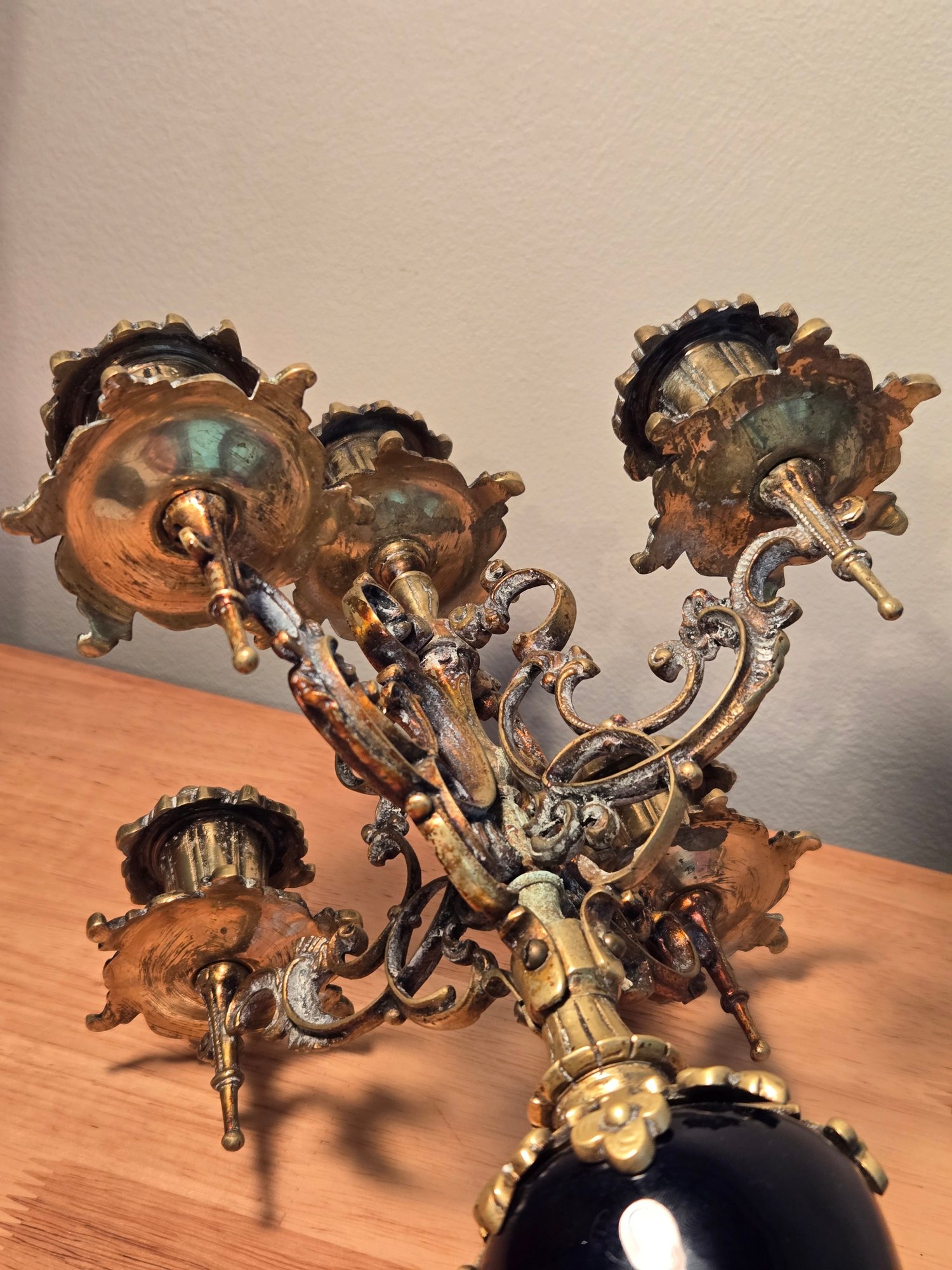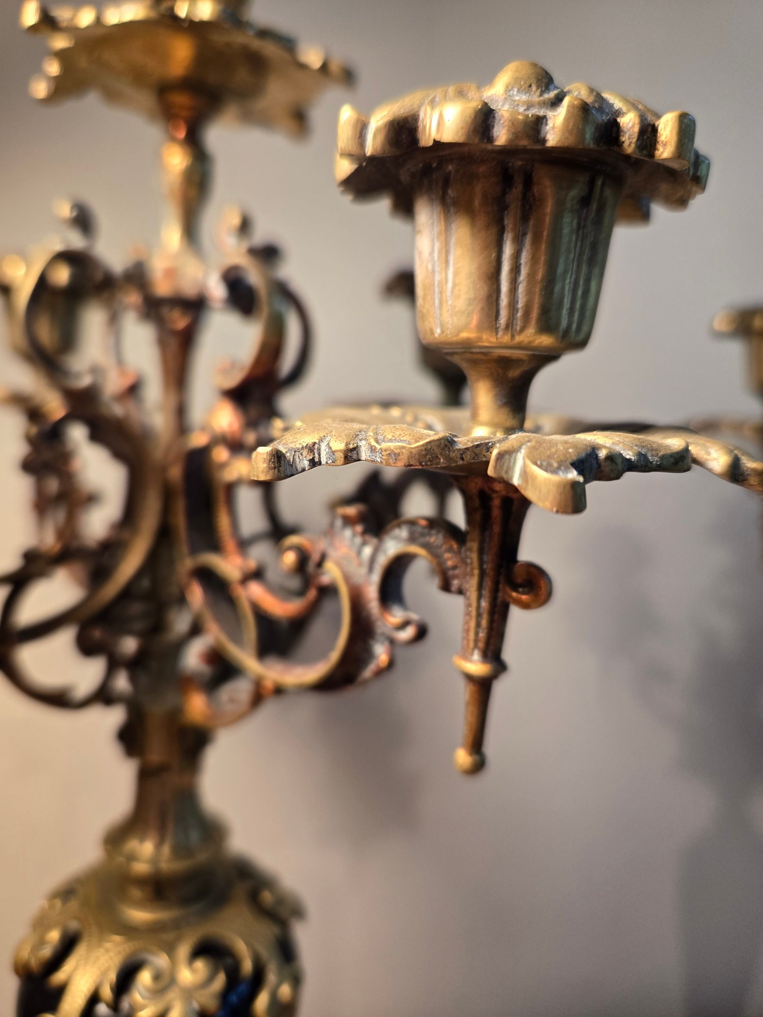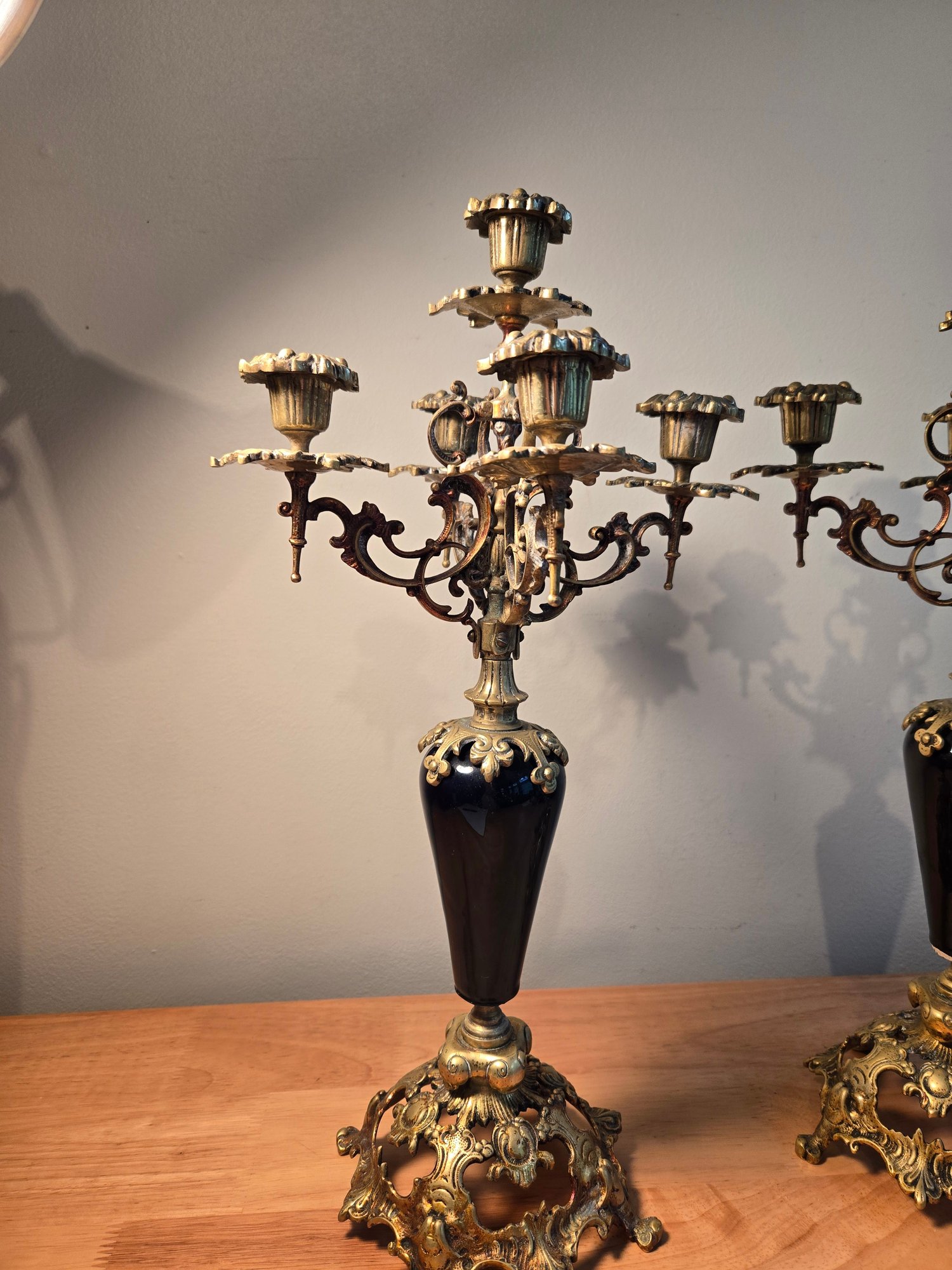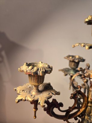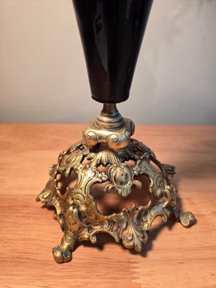 Antique Golden Brass And Black Rococo Decorative Candlesticks.