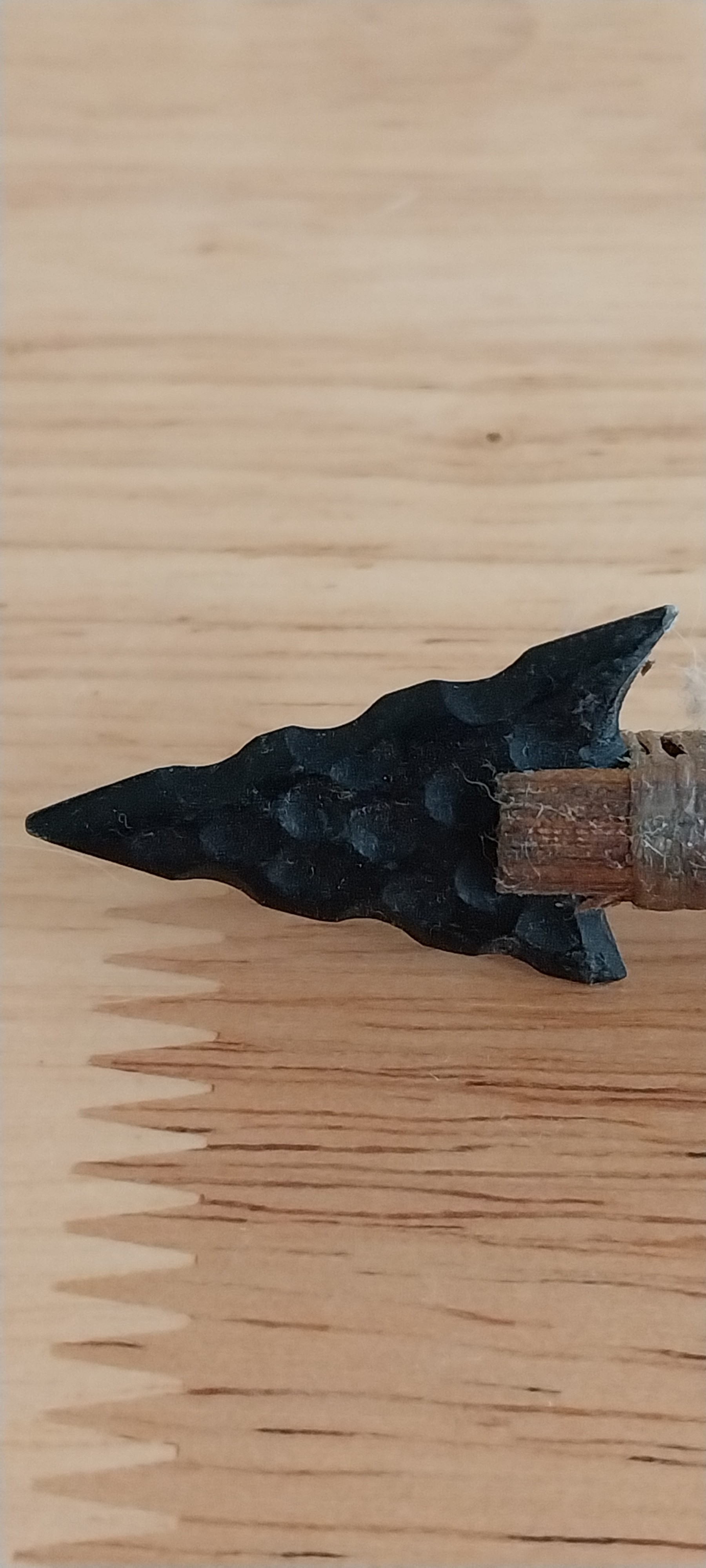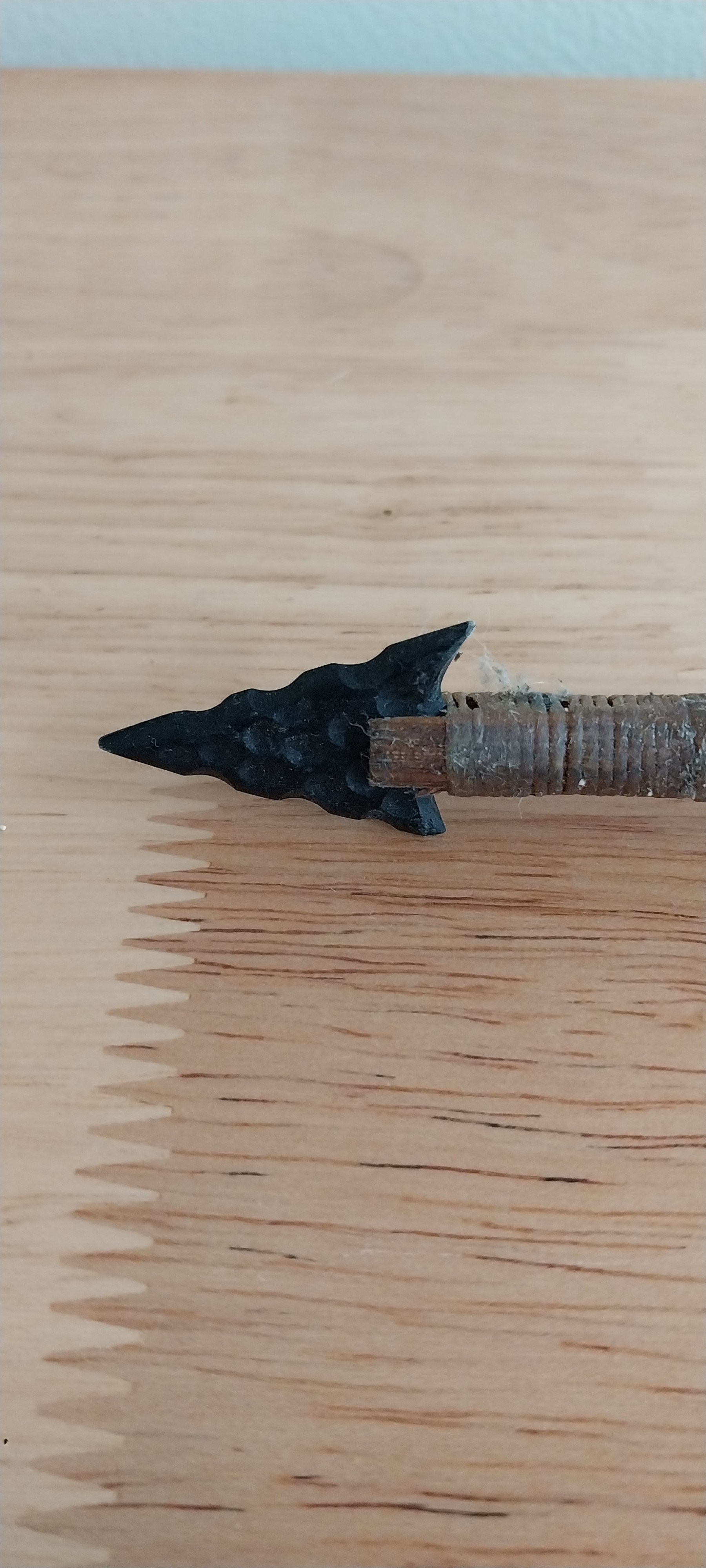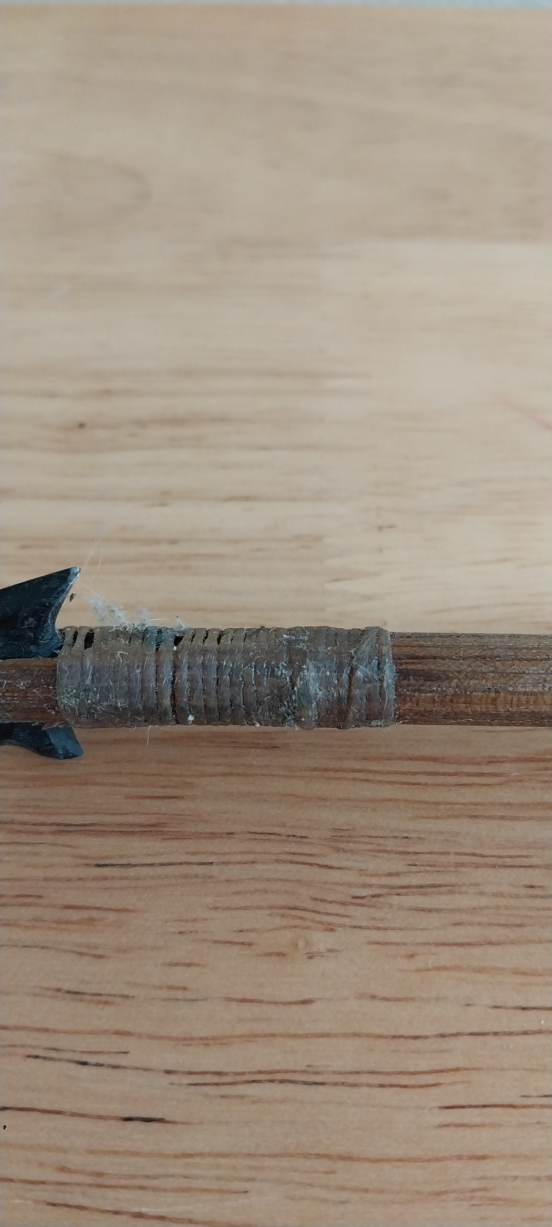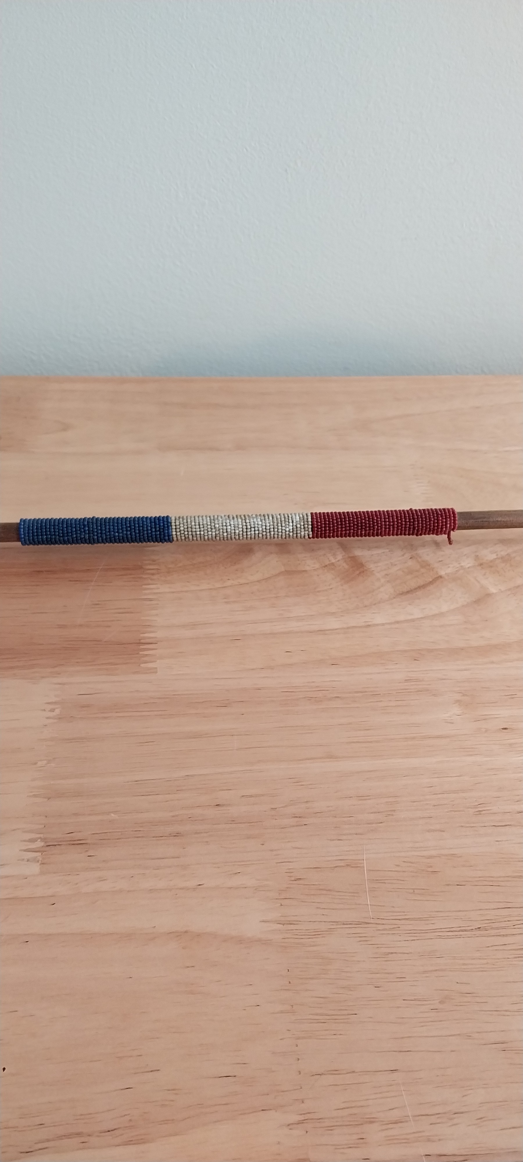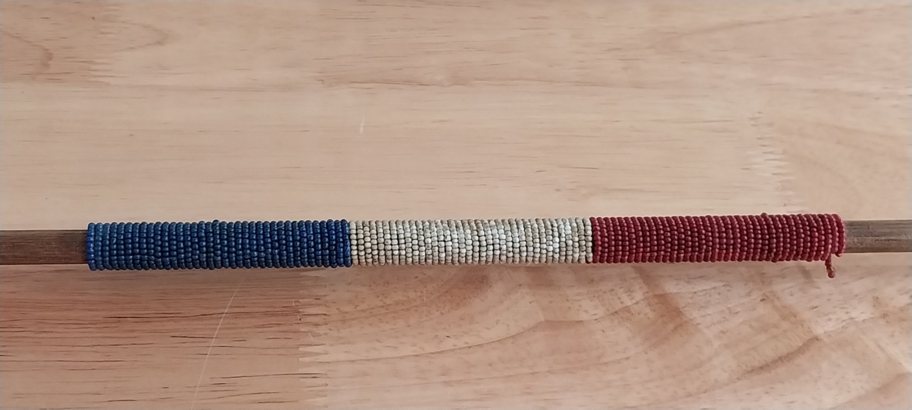 Native American Wooden Arrow with Feathers, Arrowhead and Beading