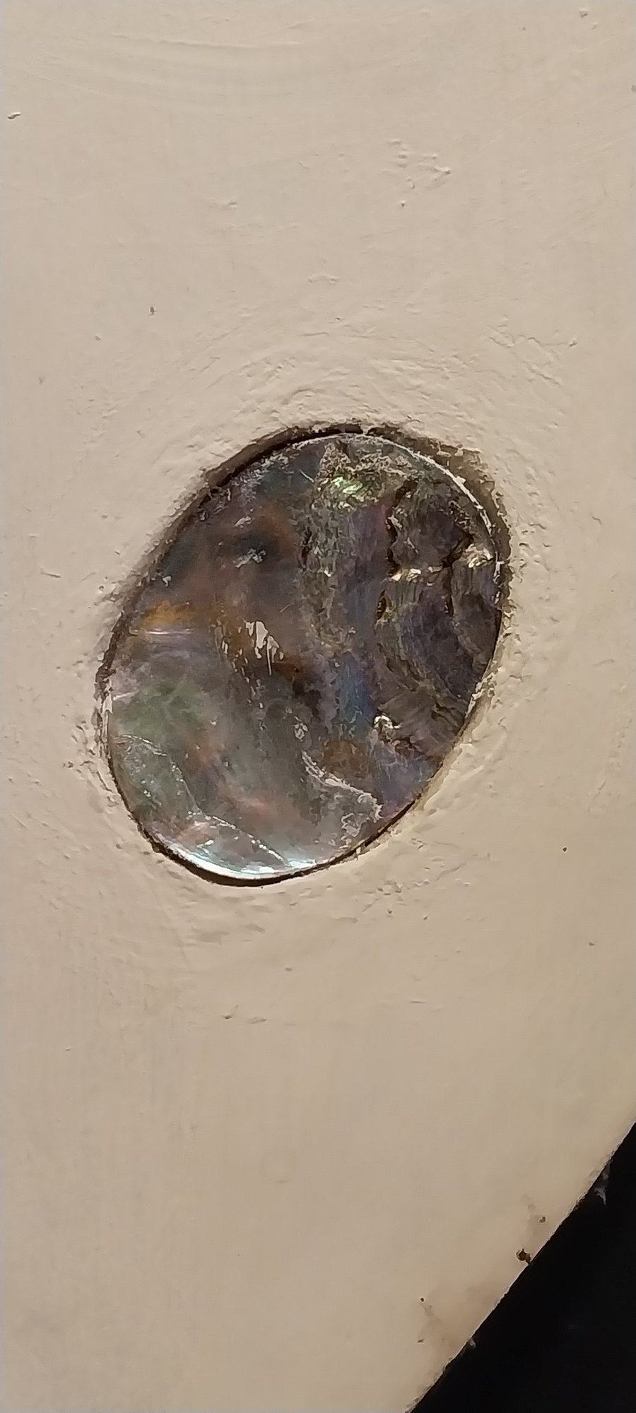 The mask was taken apart to transport. It is numbered to be reassembled.