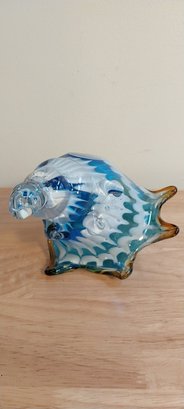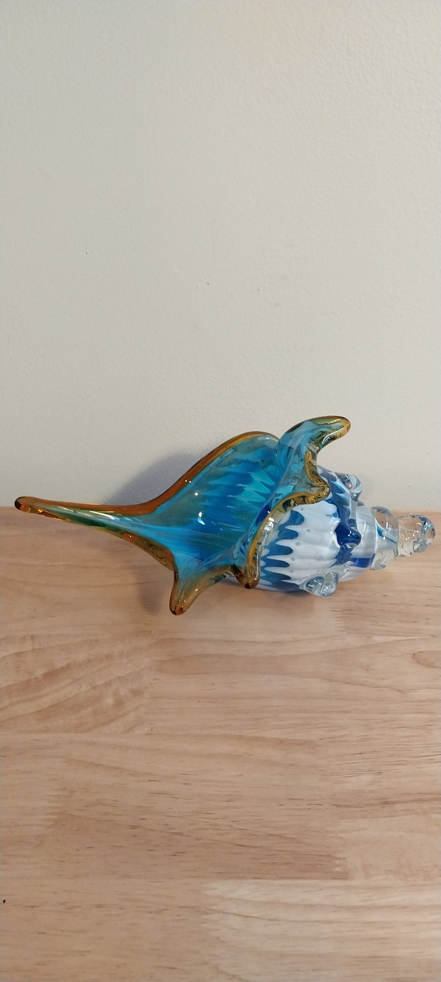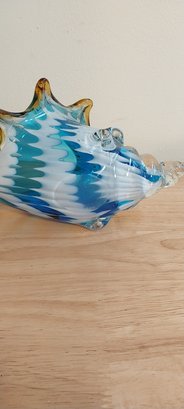 Blue glass conch shell.