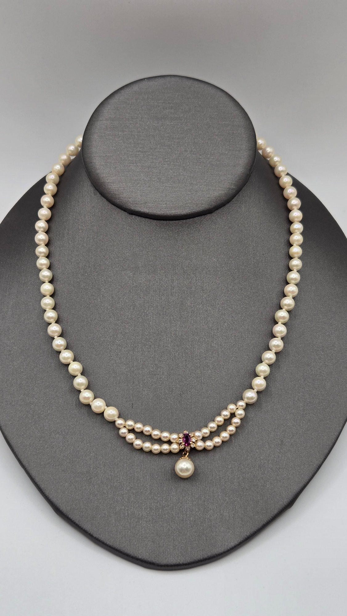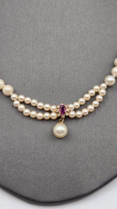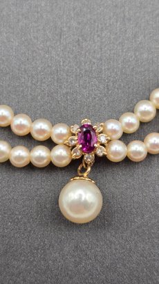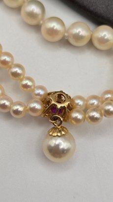 Blue Lagoon (Mikimoto) Pearls with Diamond and Ruby Pendant