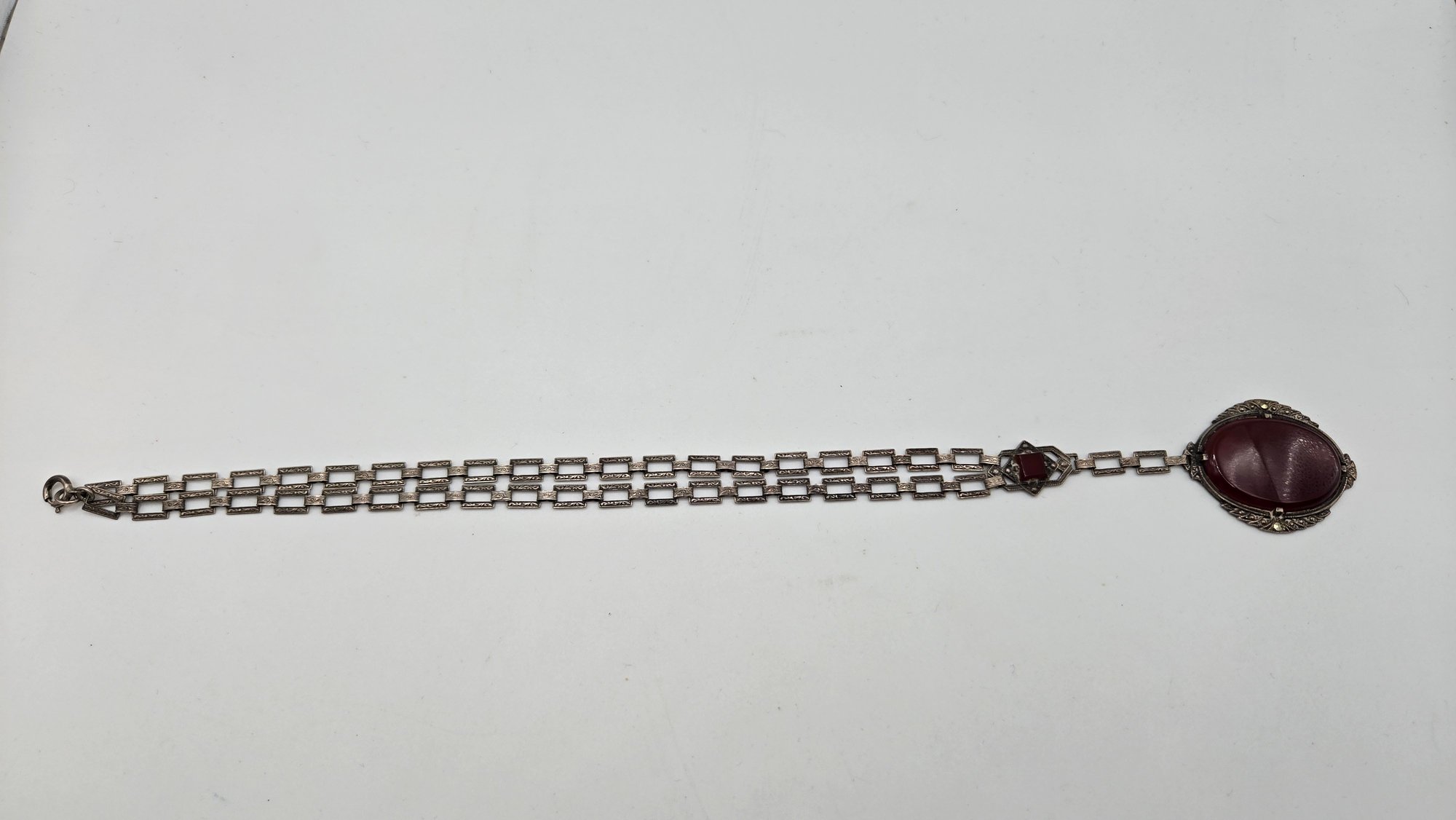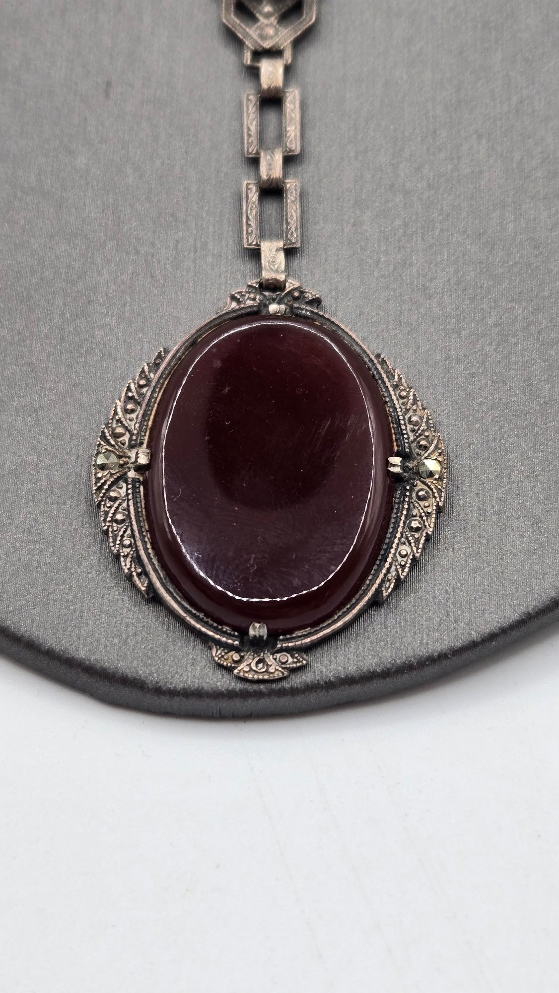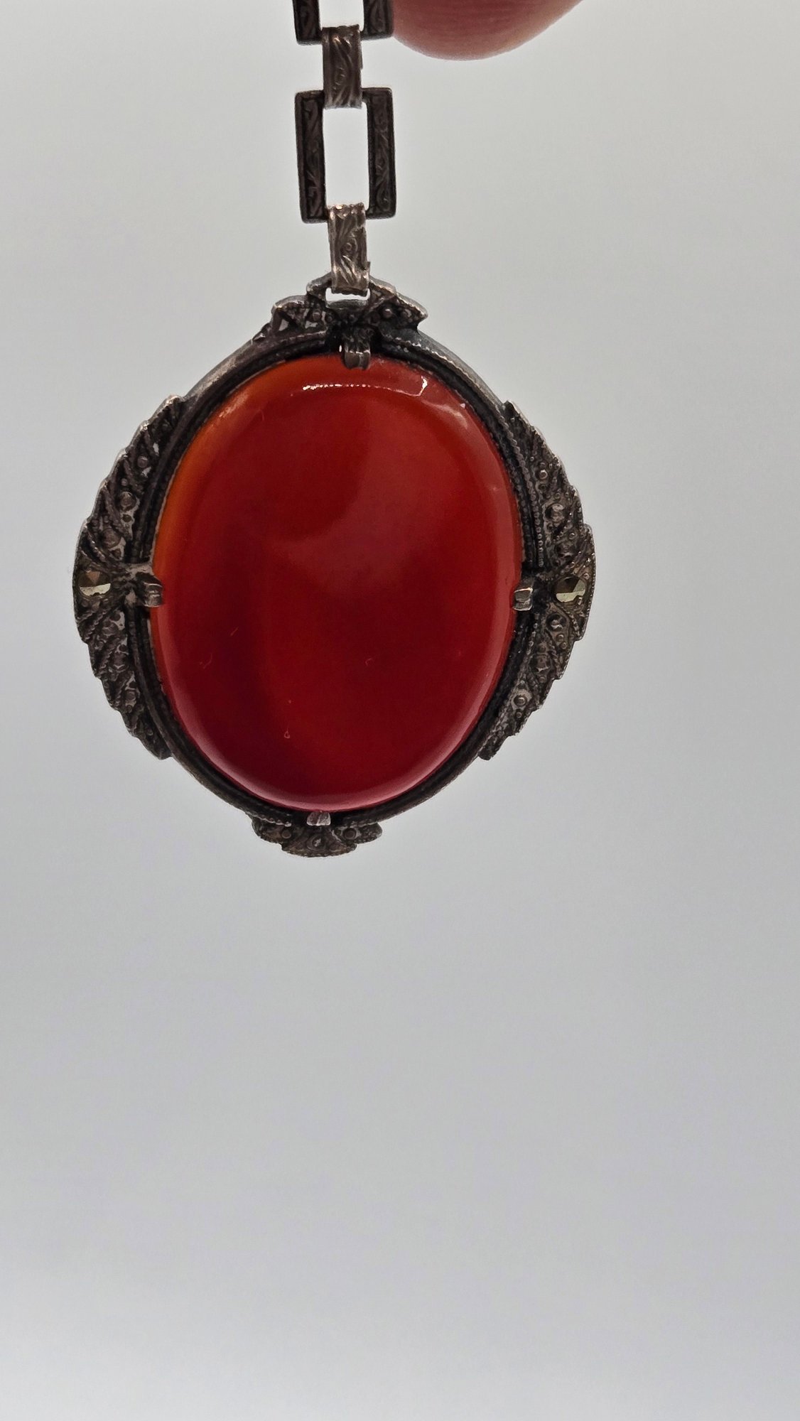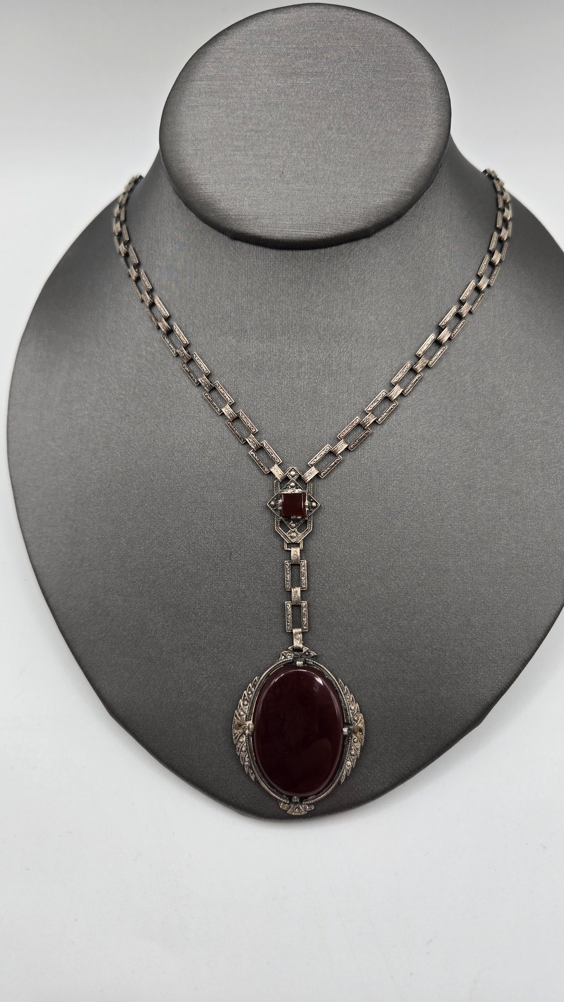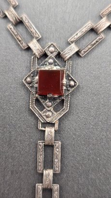 Edwardian Carnelian Chalcedony Sterling Necklace
