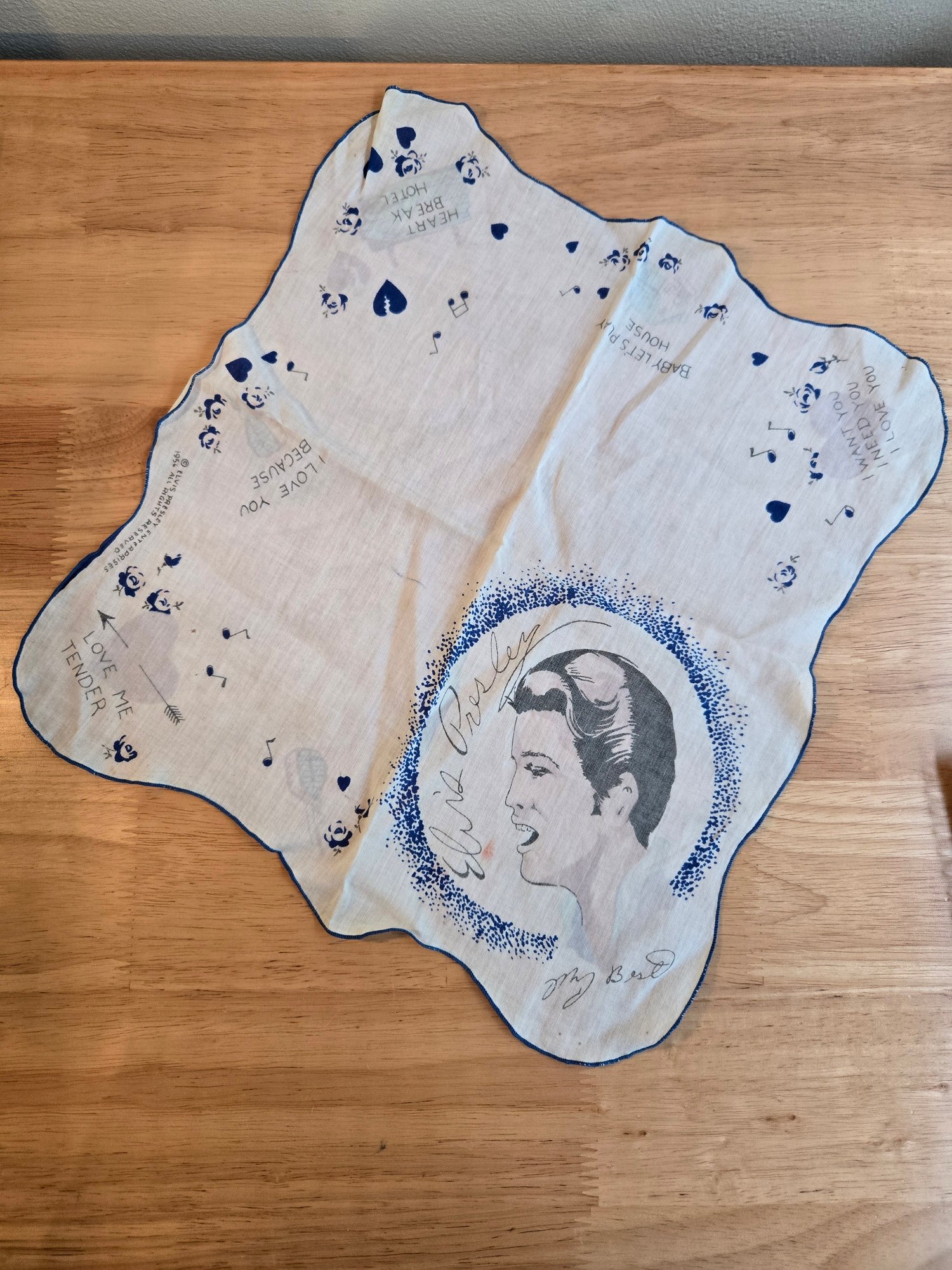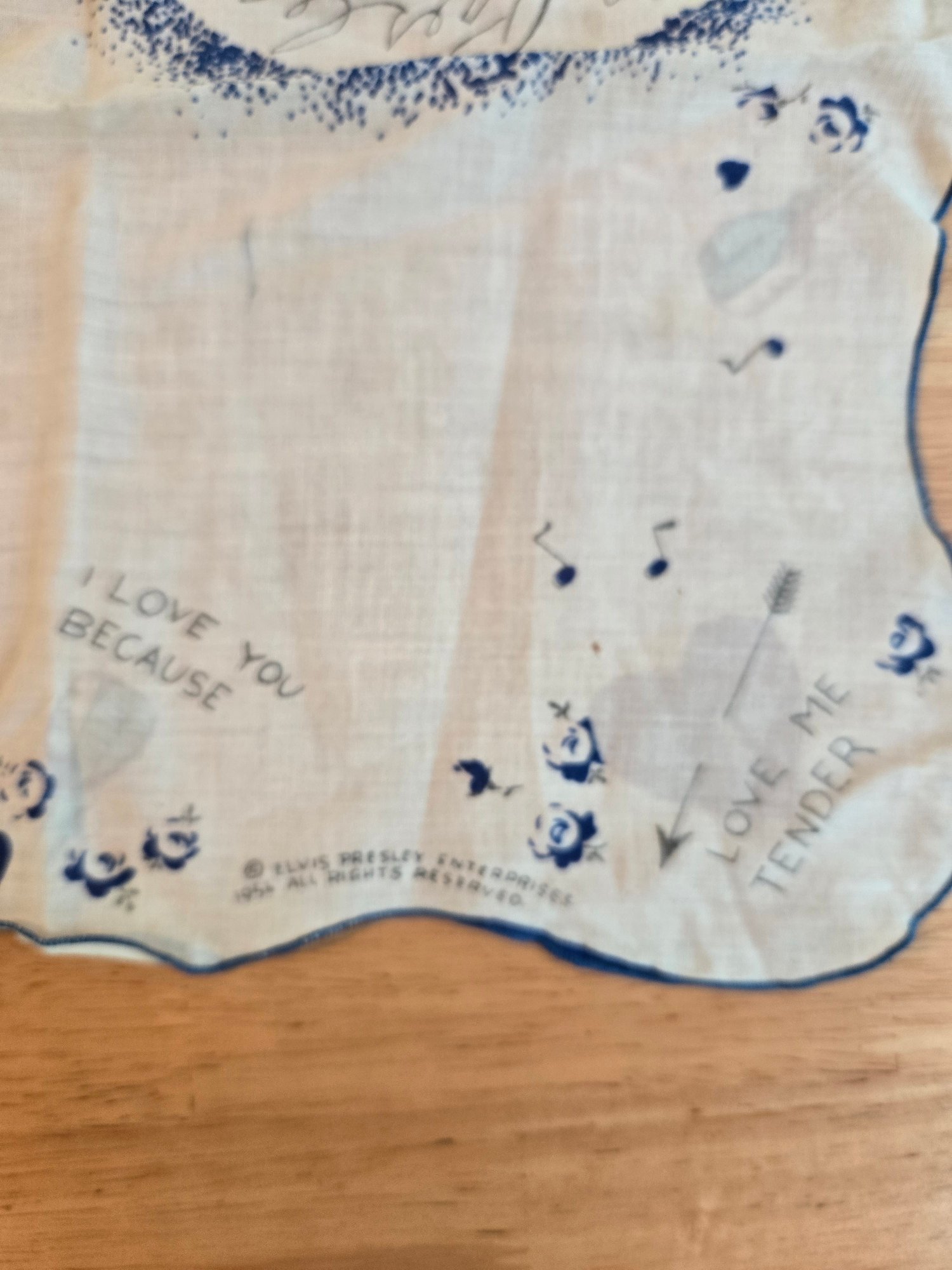 "Love Me Tender" original vintage concert fan scarf.