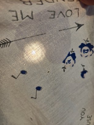 Few tiny pin holes and lipstick mark, small ink mark. See photos