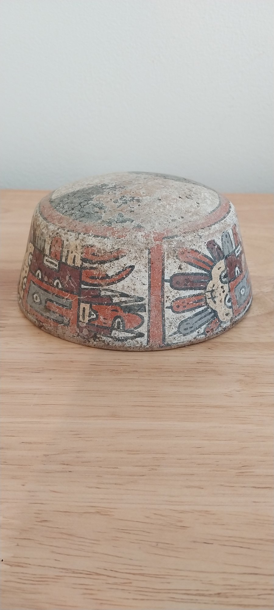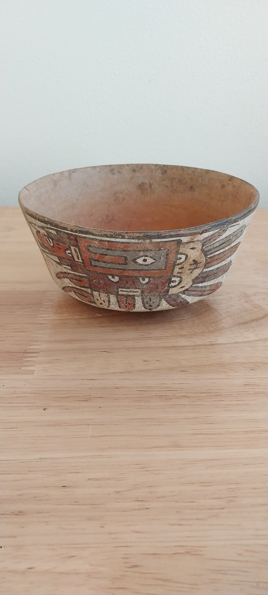 Peruvian Nazca Terracotta Bowl with Deity design. Terracotta and pigment