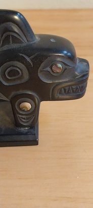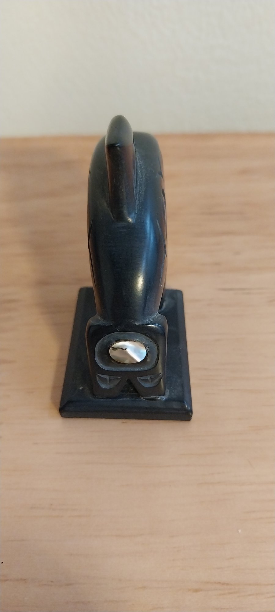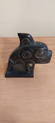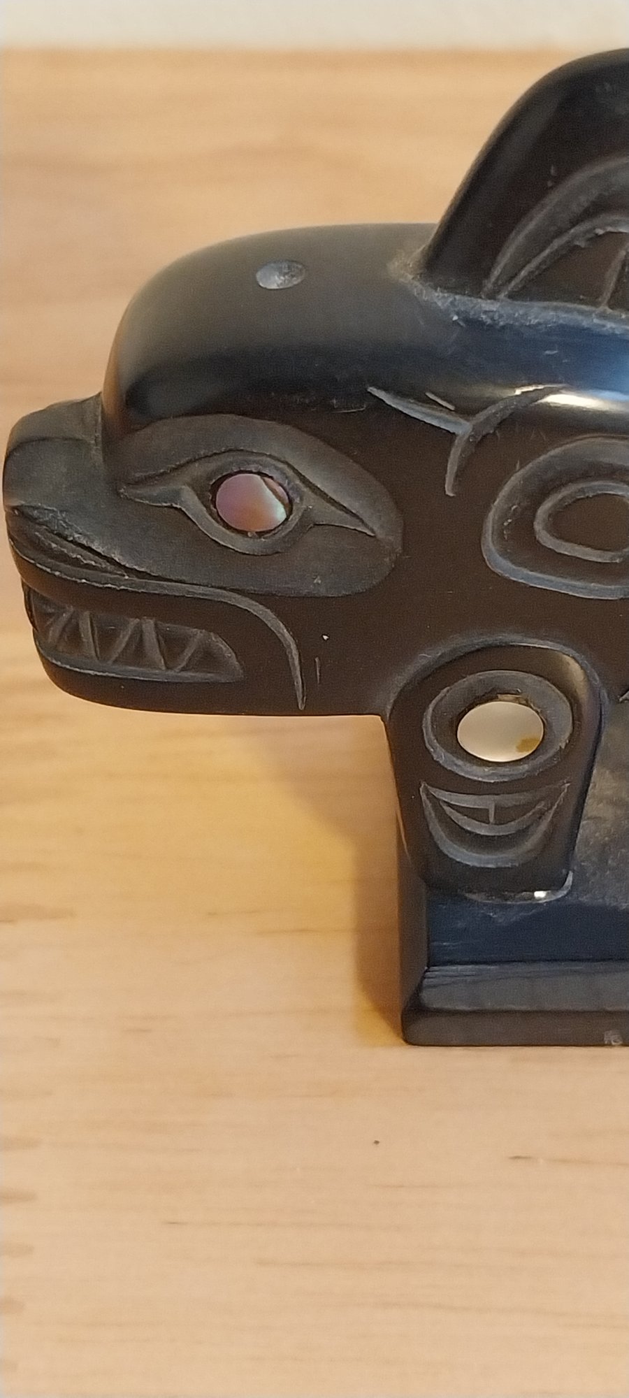 Haida Argillite Killer Whale with Mother of Pearl/Abalone insets.