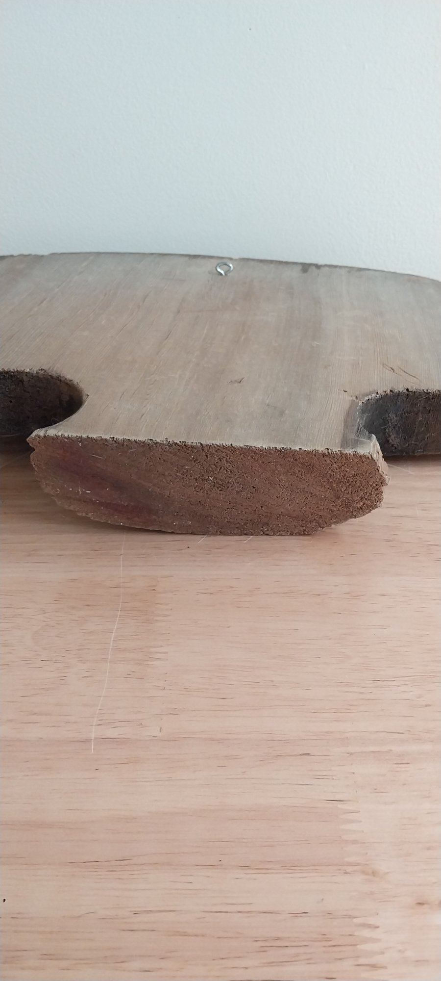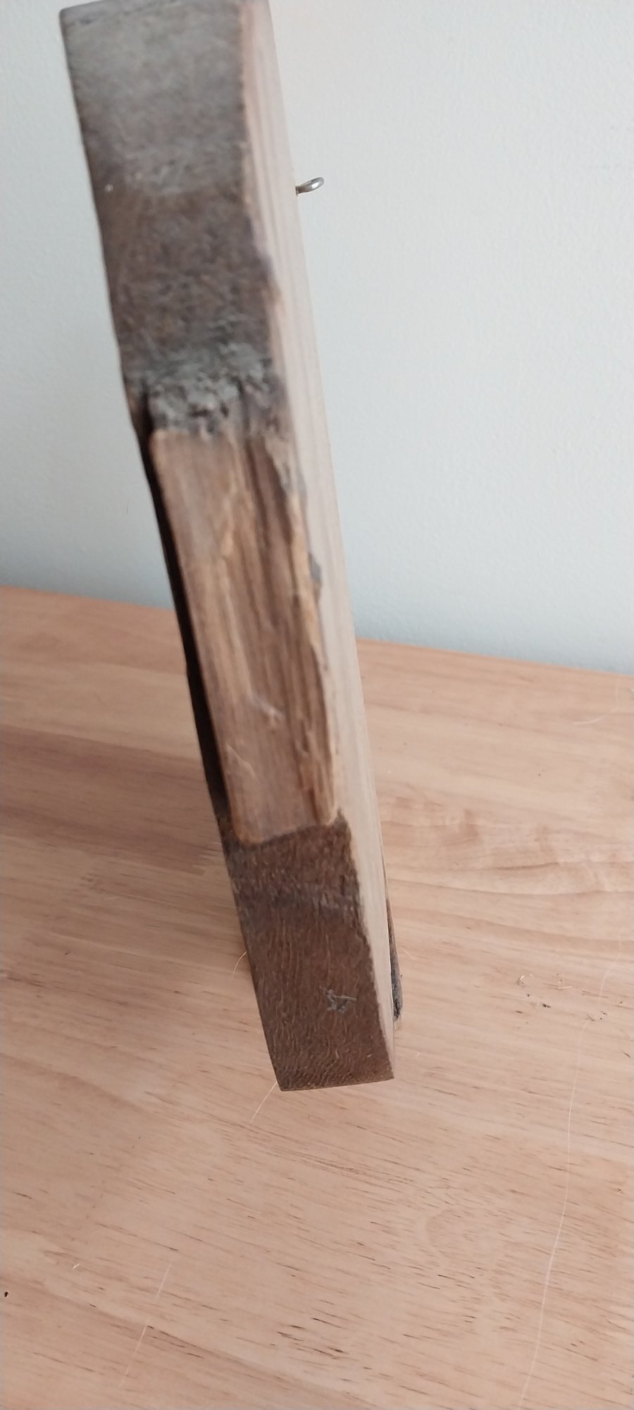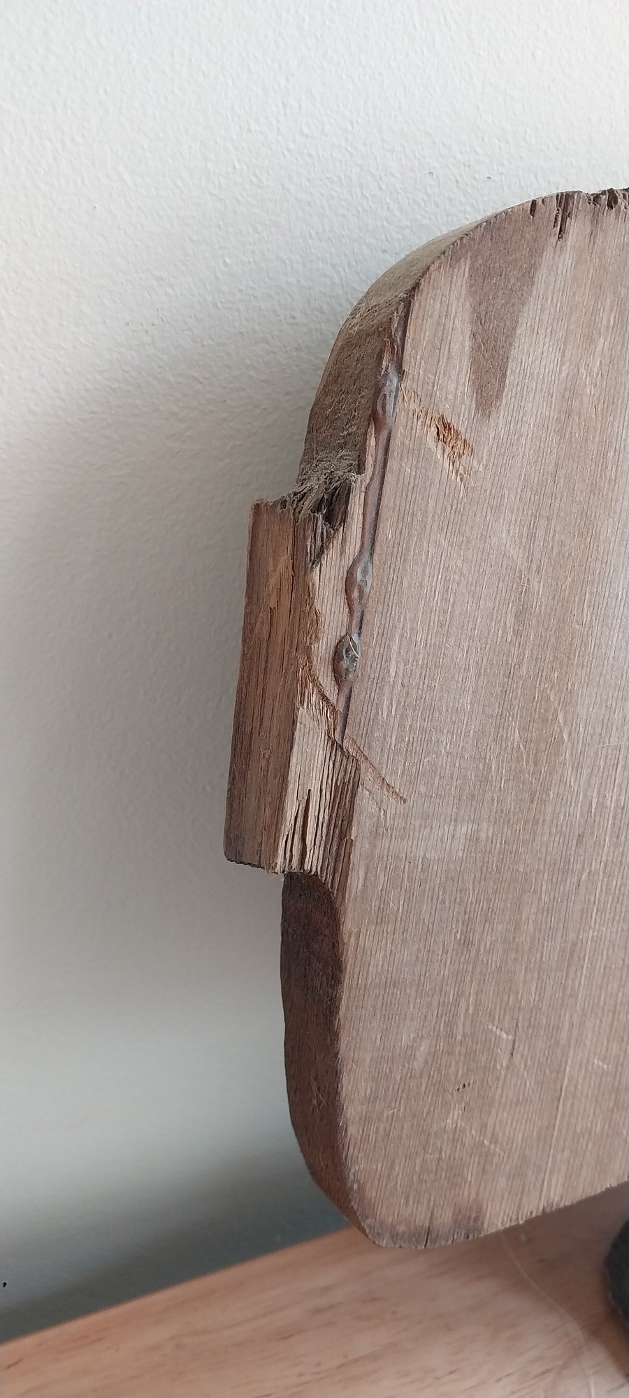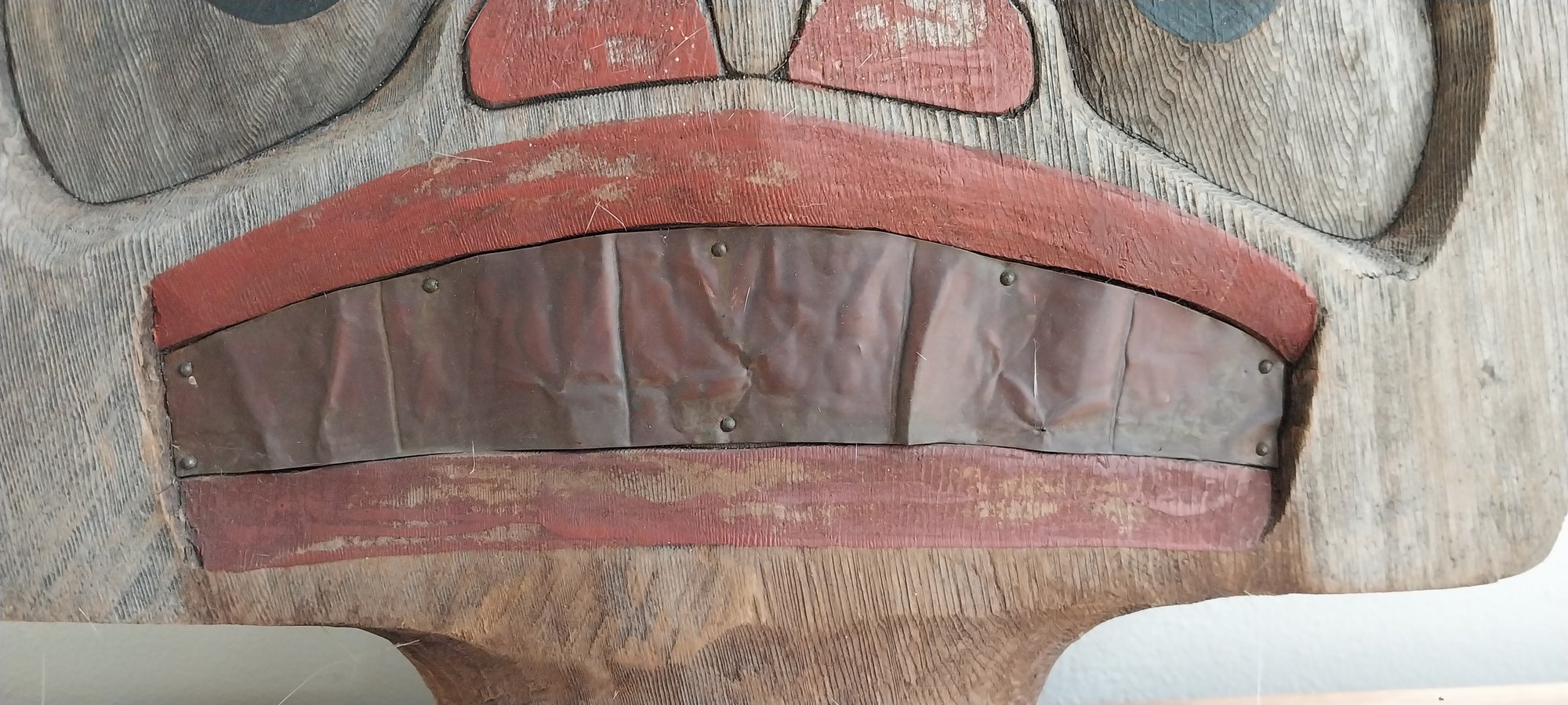 Metal/copper teeth on red cedar with pigment