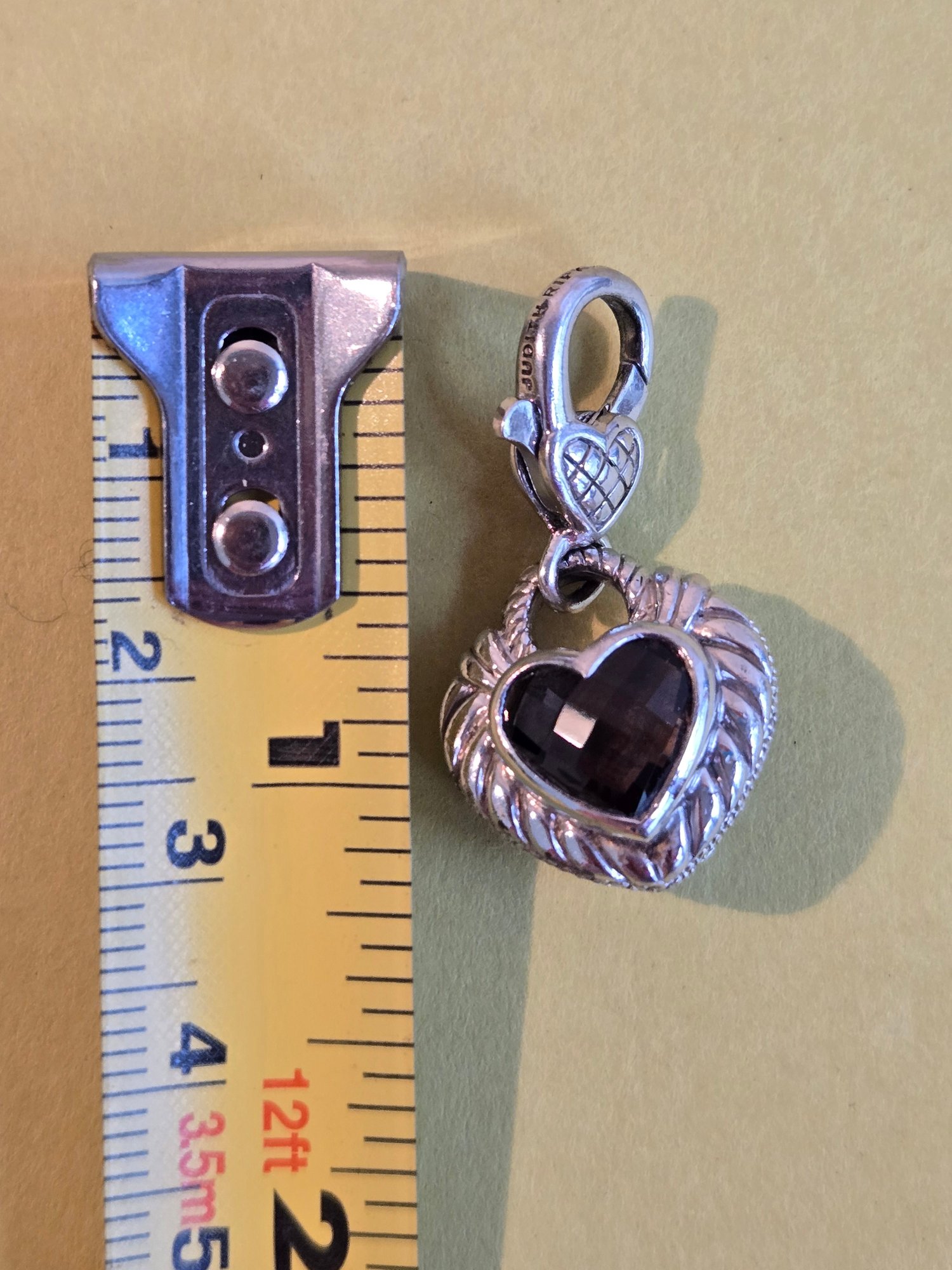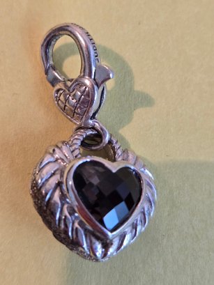 Judith Ripka sterling heart pendant with smokey topaz.