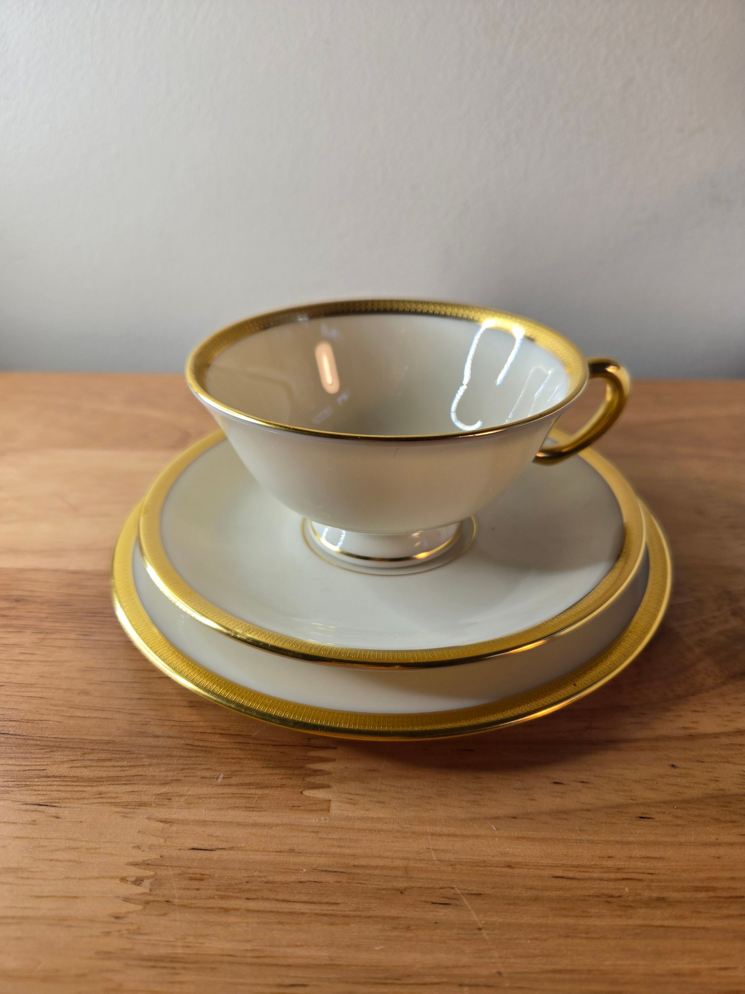 Lenox Tuxedo Gold. Off-white cream with gold embossed rim