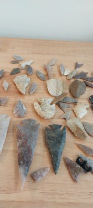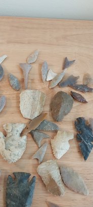 Approximately 50 pieces in this lot of arrowheads and spearpoints/flints.