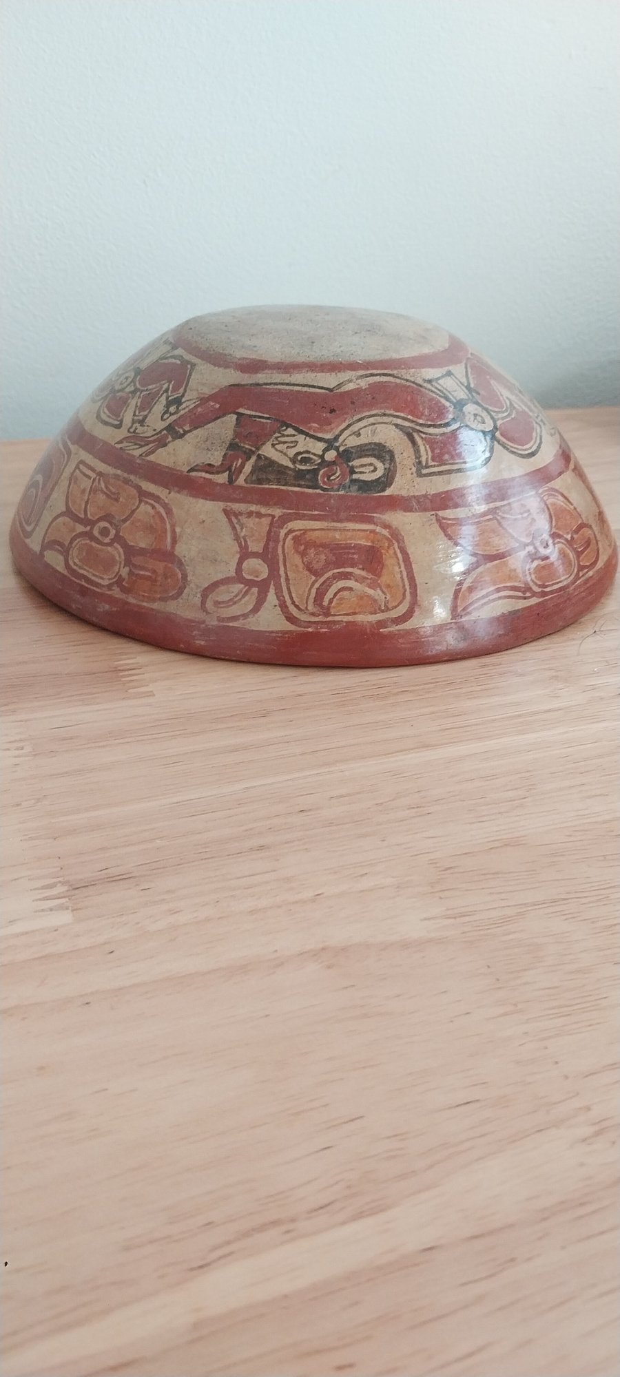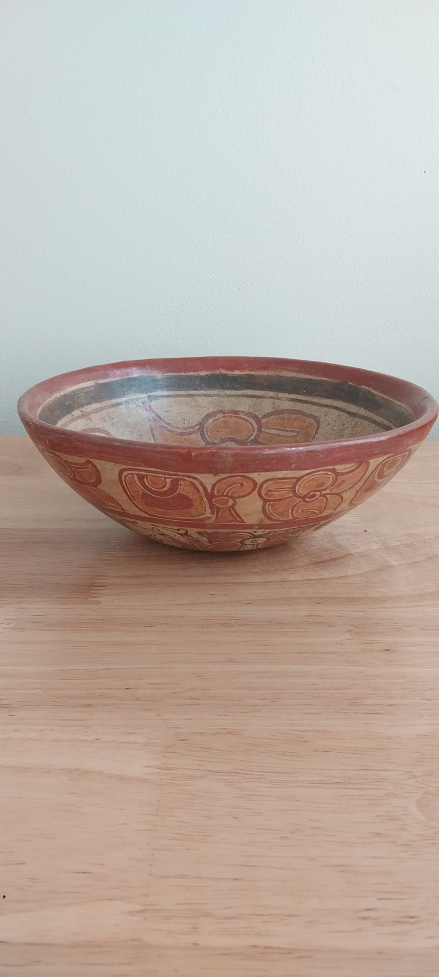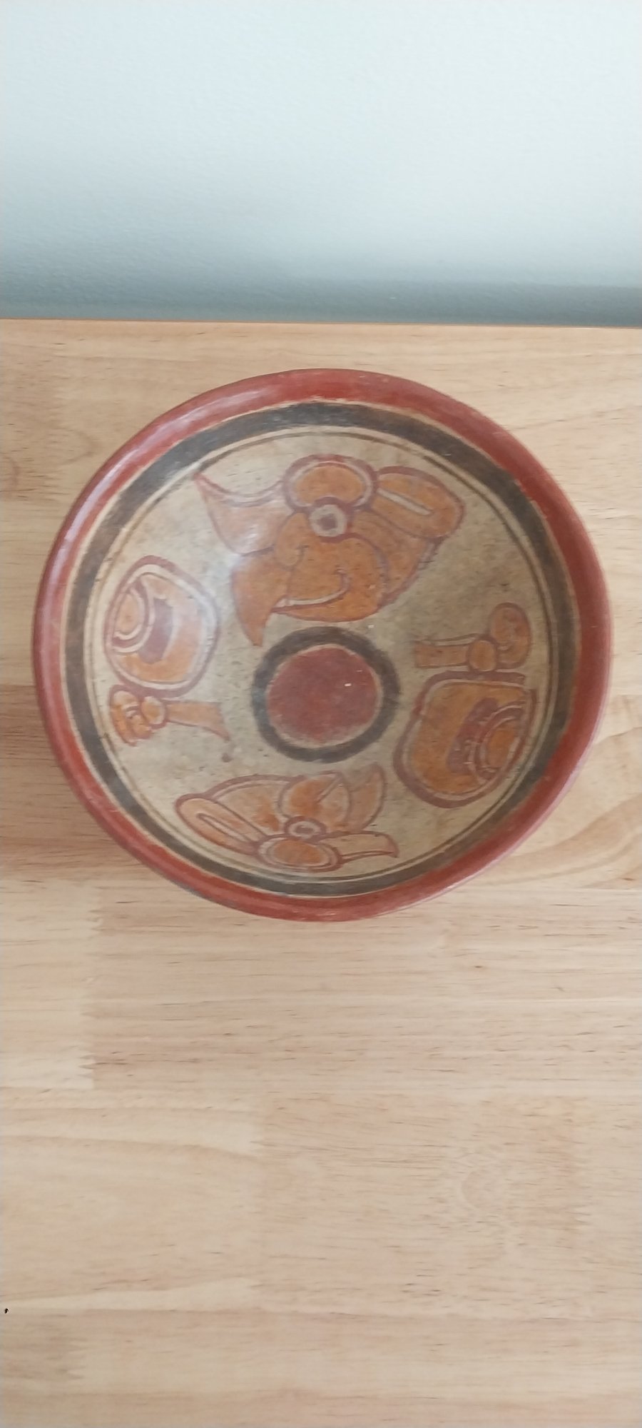 Terracotta and pigment decorate this Mayan chief's bowl inside and outside