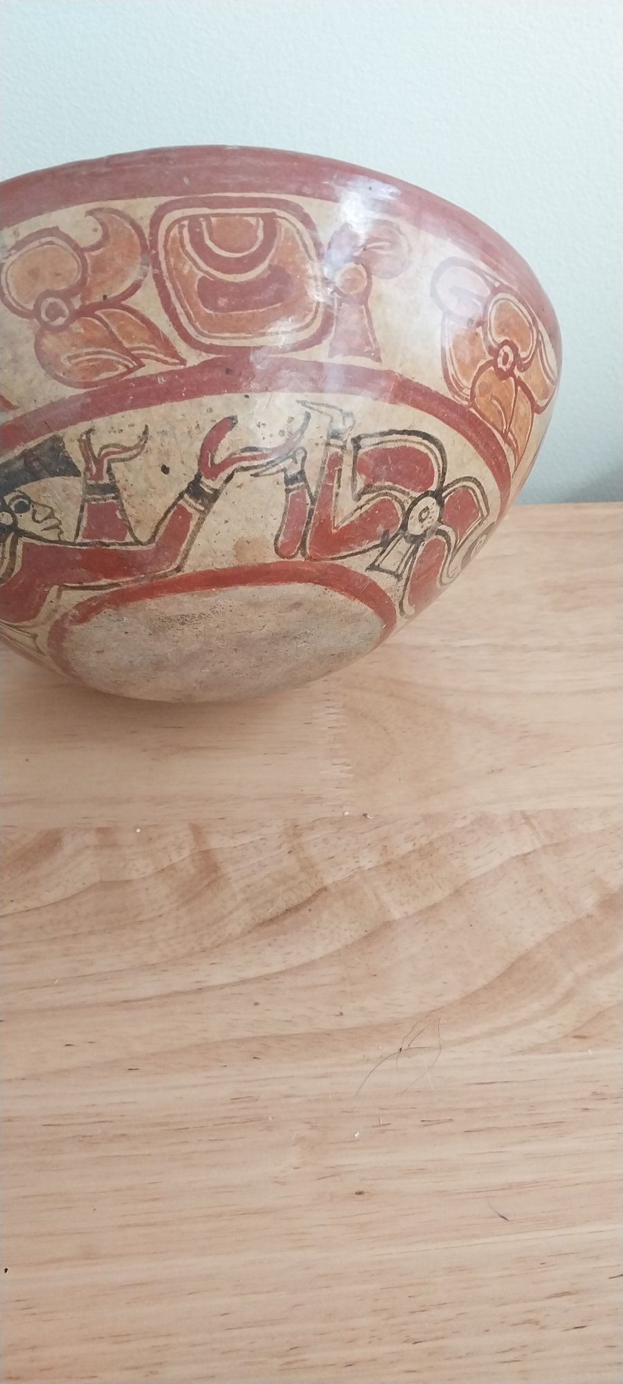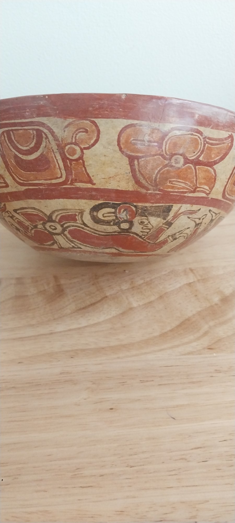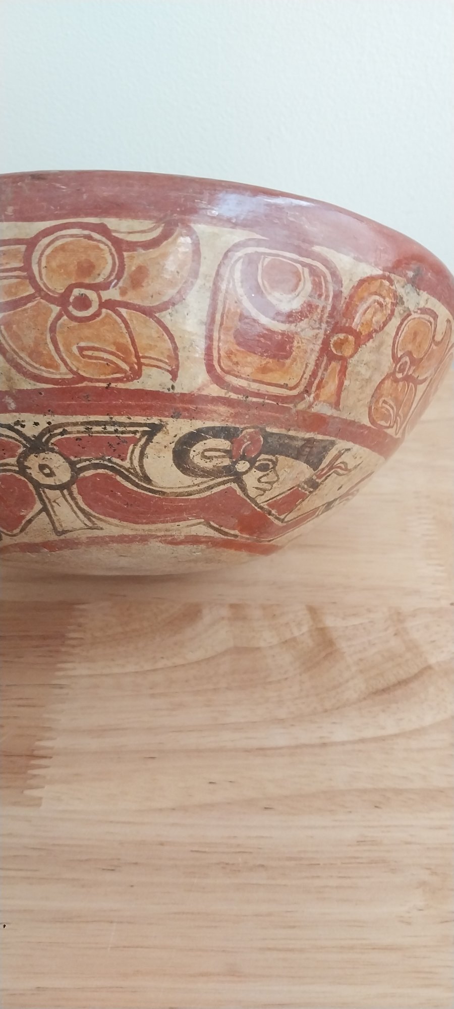 Terracotta and pigment decorate this Mayan chief's bowl inside and outside