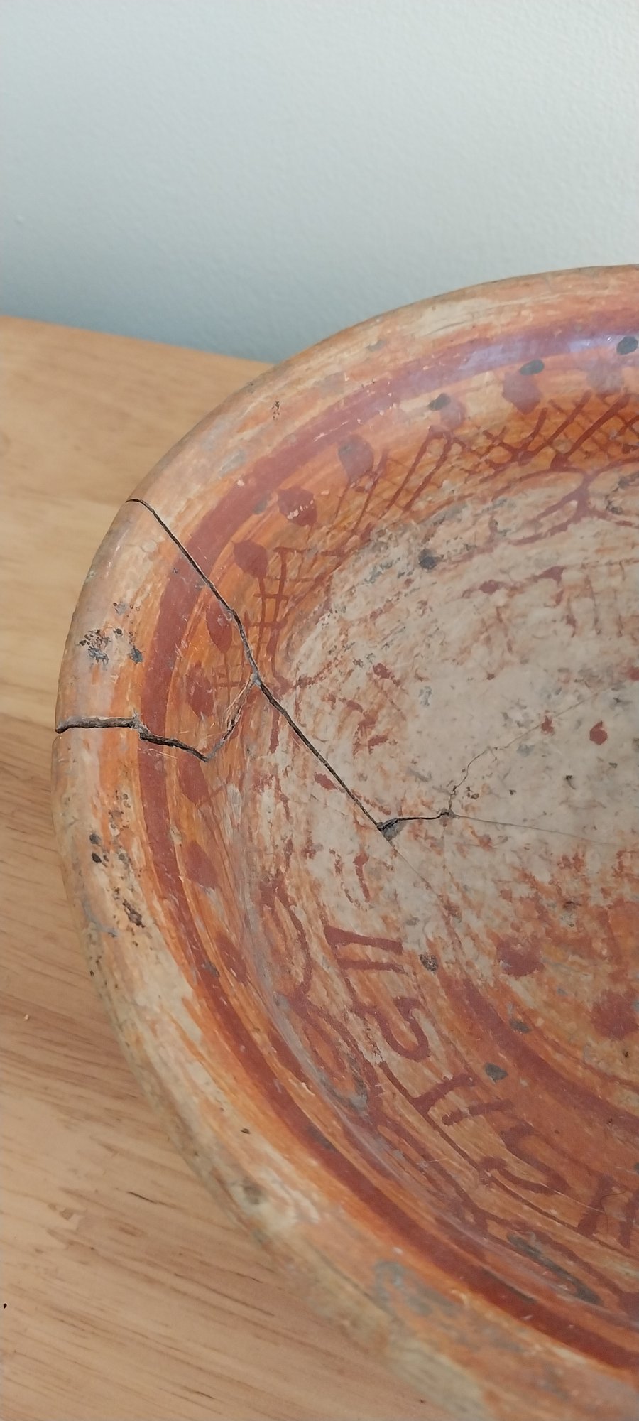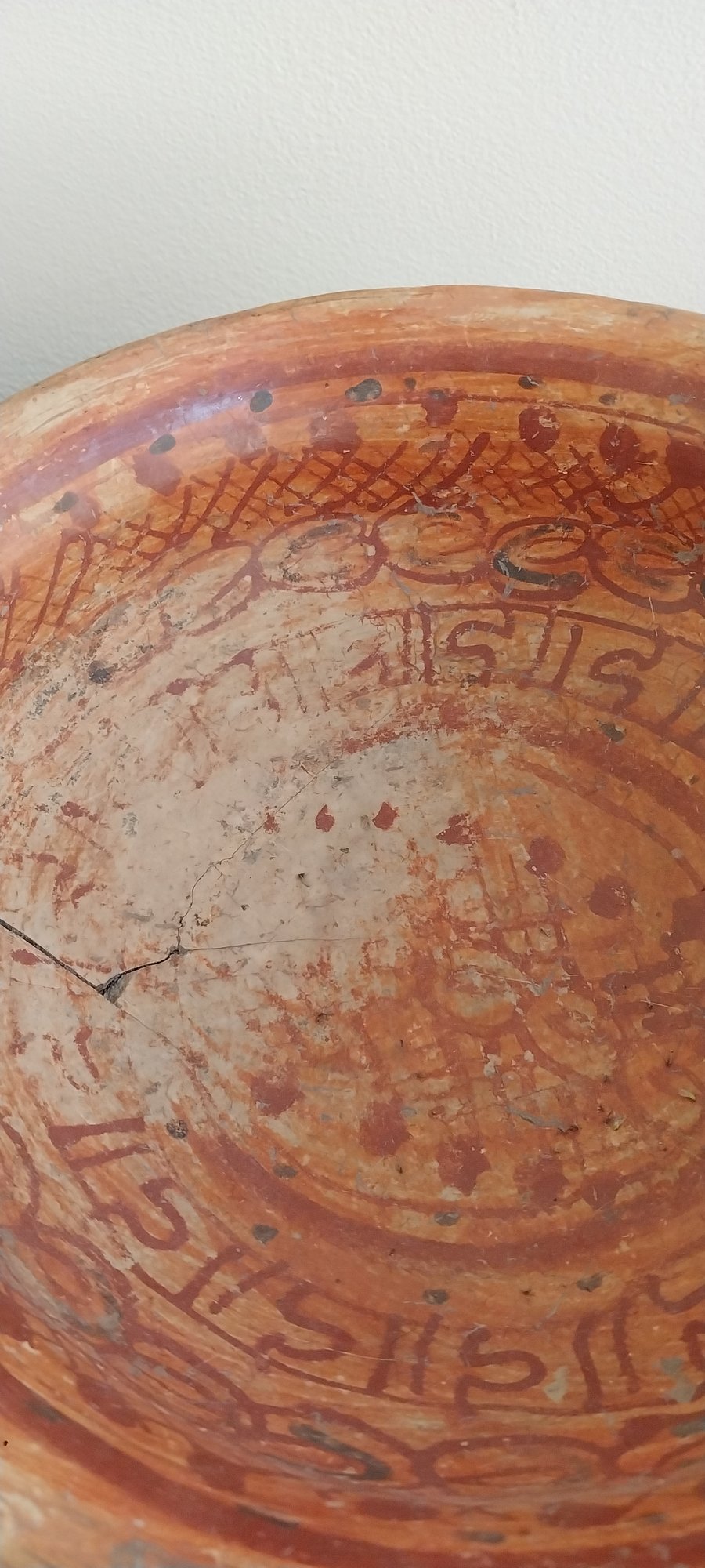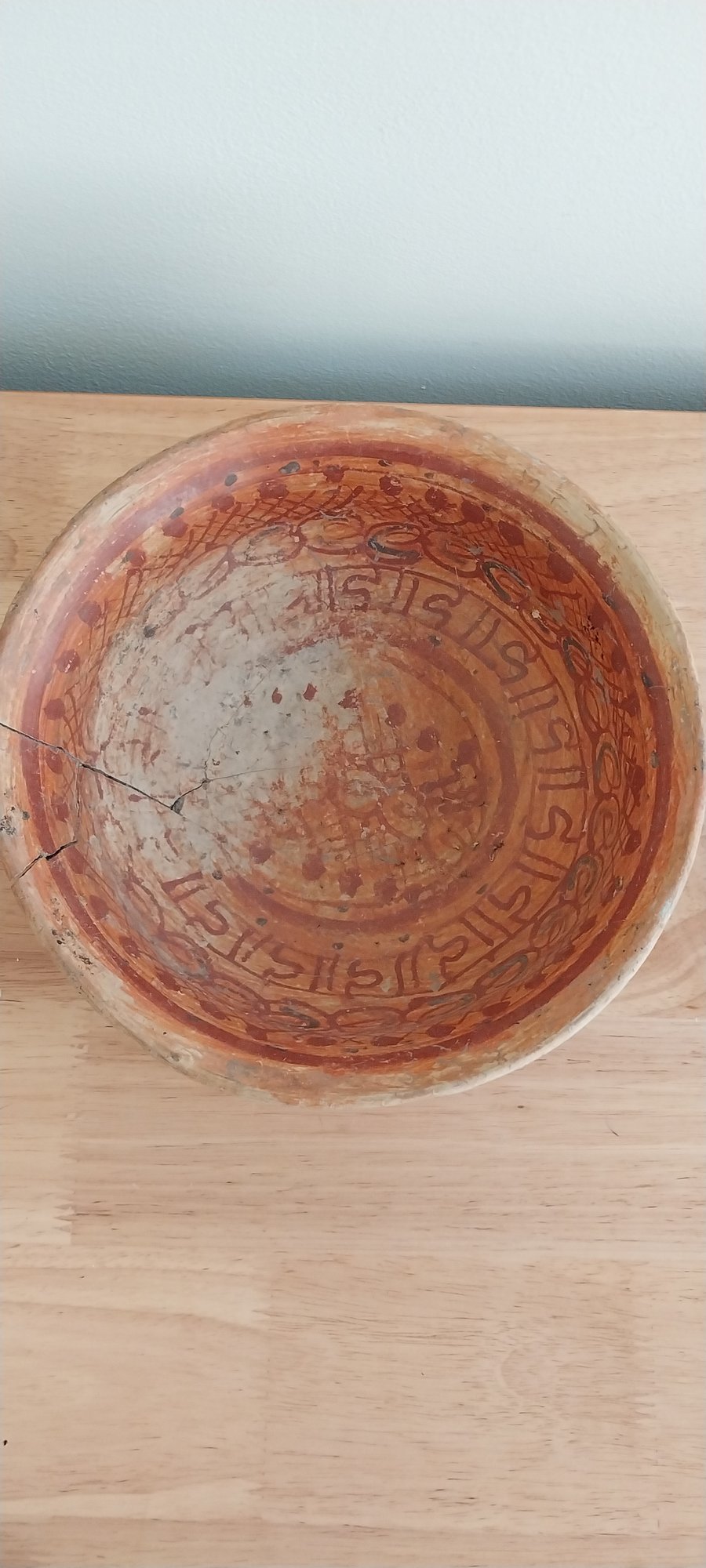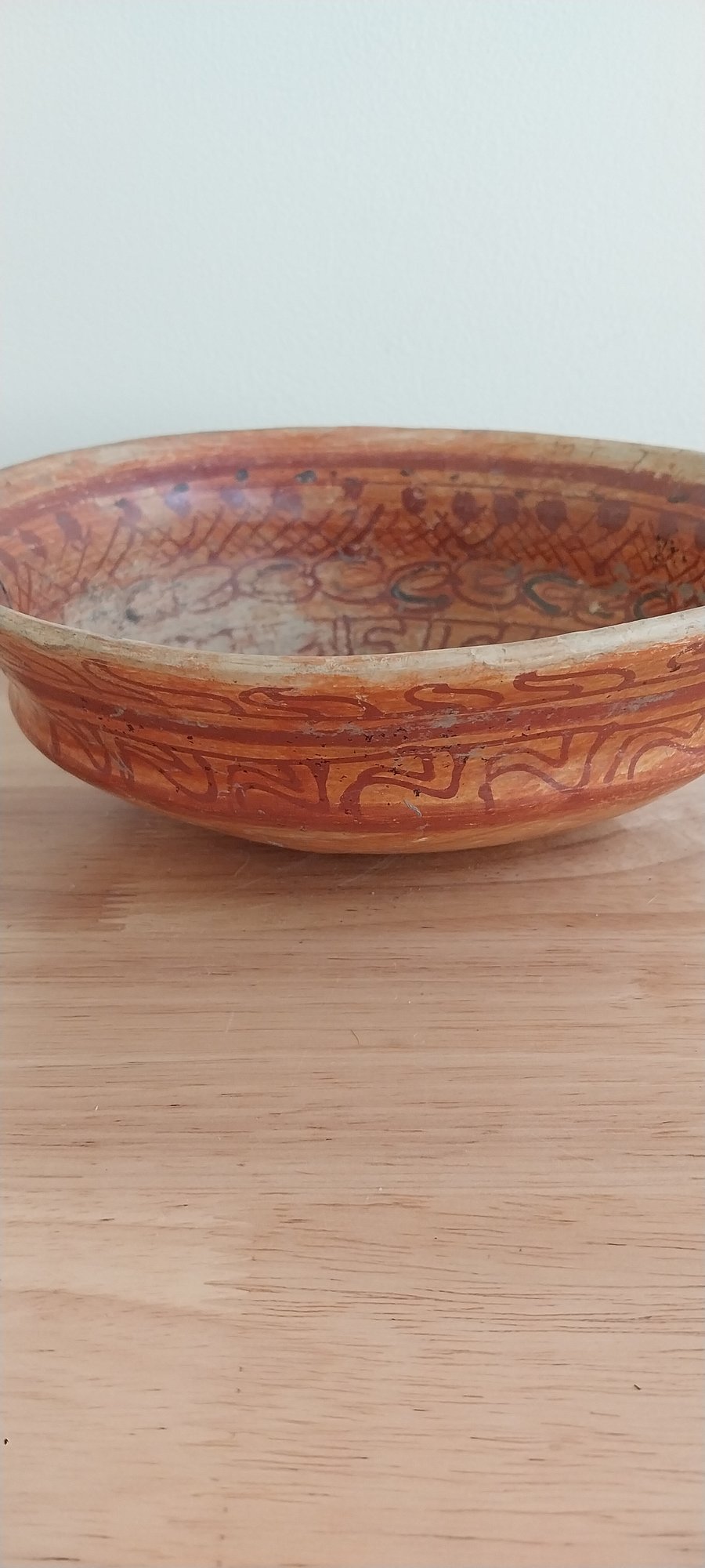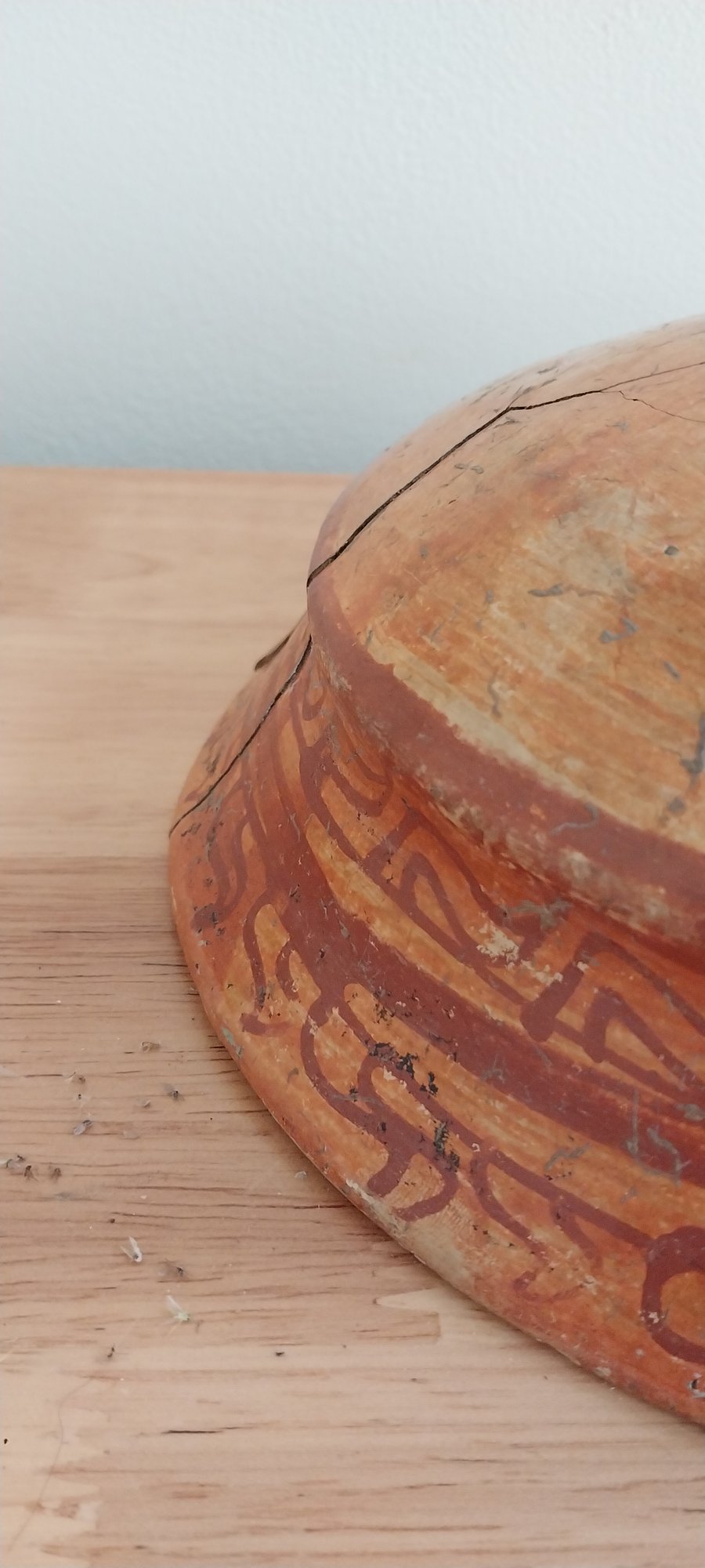 Mayan Copador bowl with abstract design. Ploychrome pigment, rounded bottom and beveled edge.