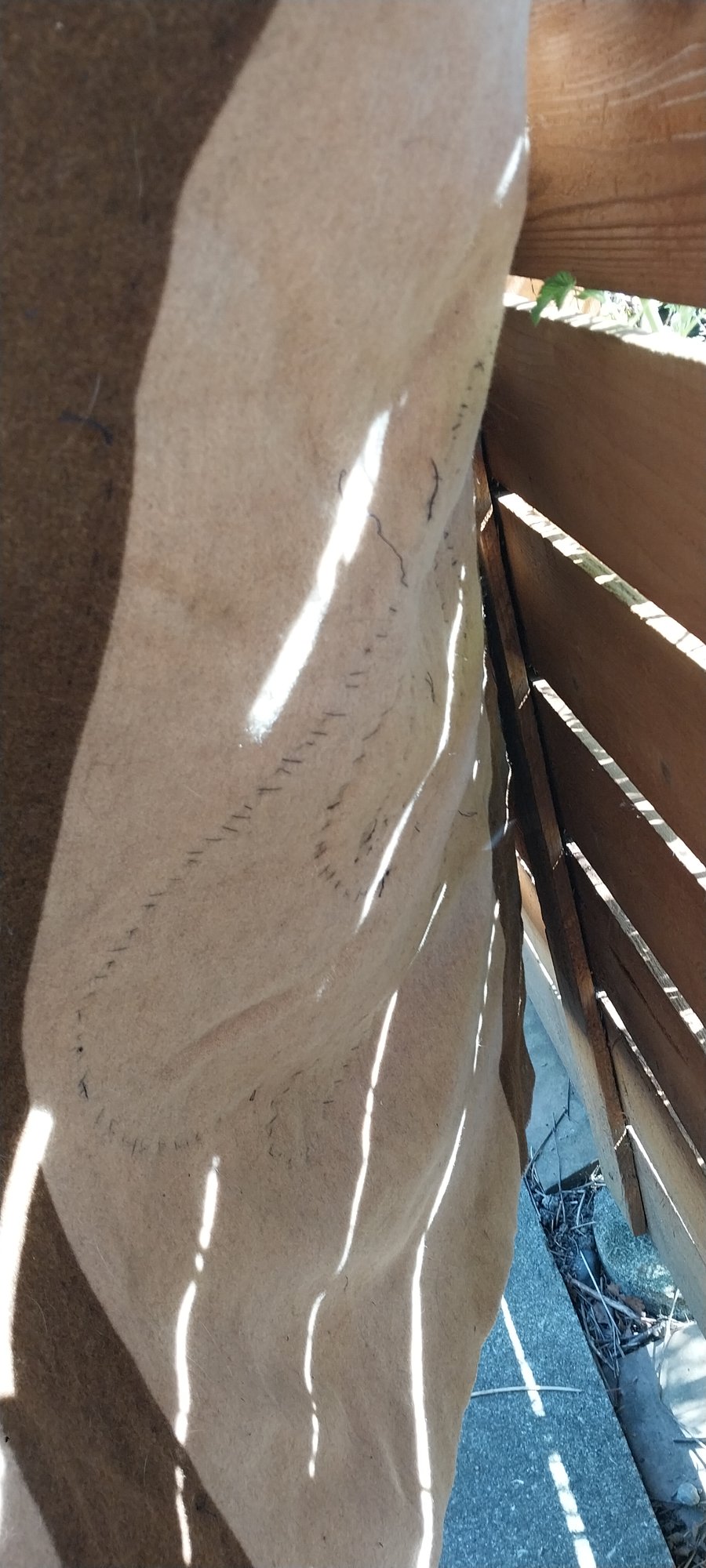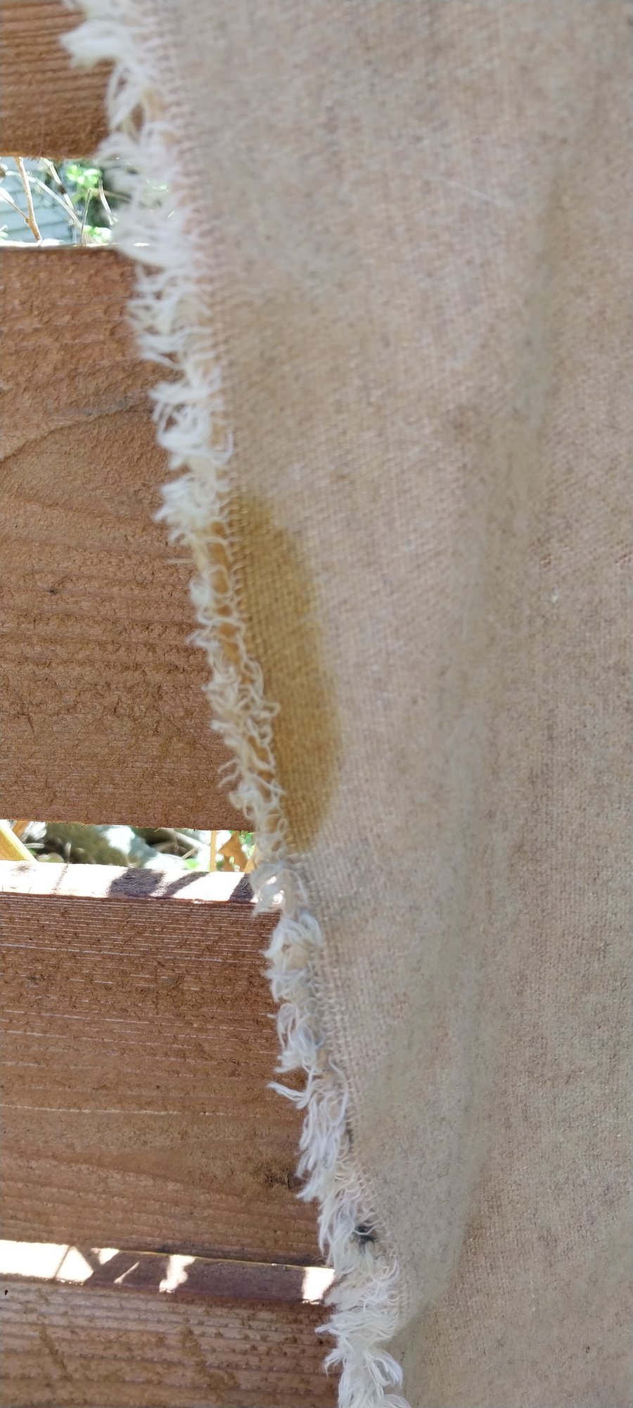 76" x 52". There are some spots that could most likely be cleaned. I did not see any holes