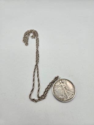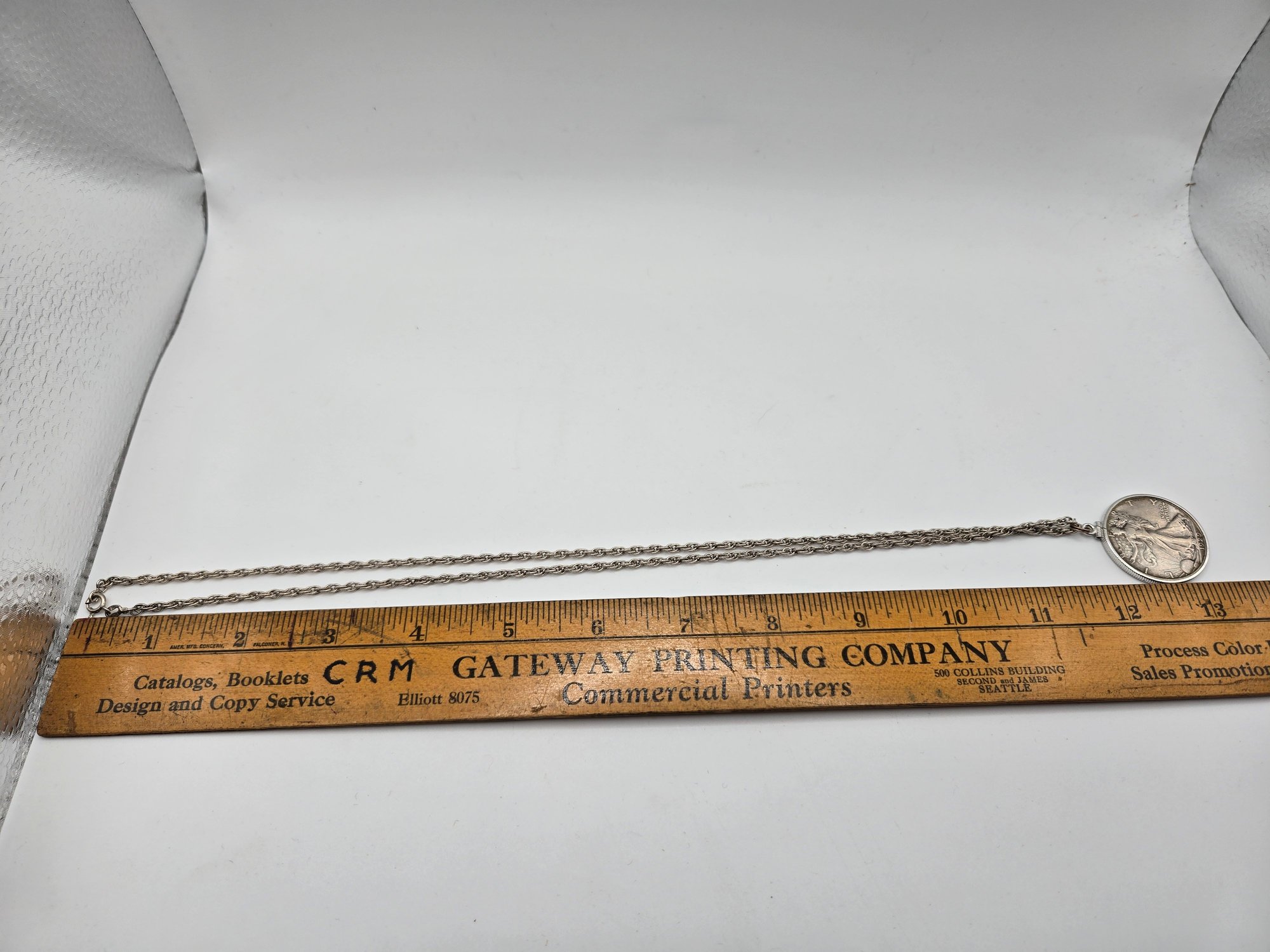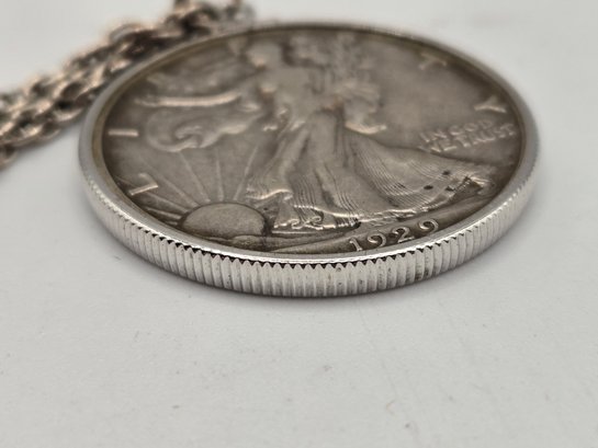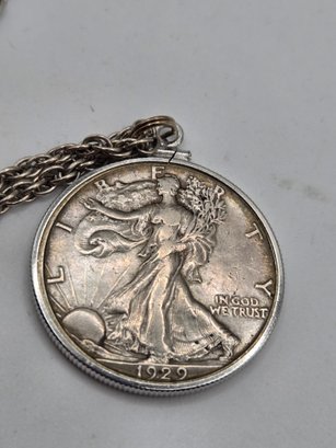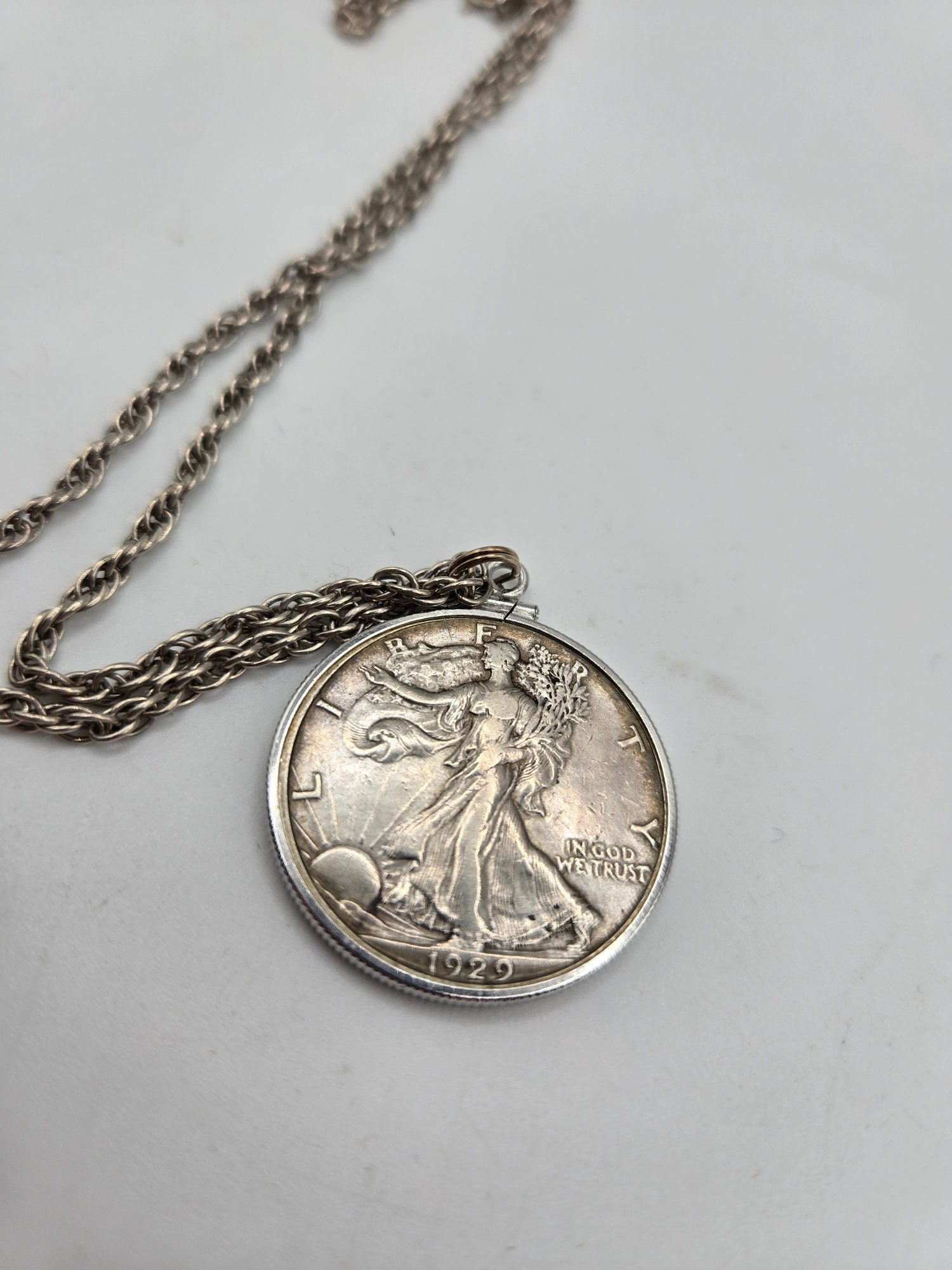 Rare 1929 "D" walking Liberty Pendant on Sterling Chain