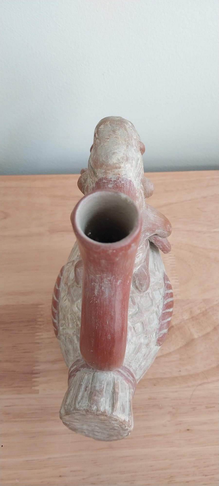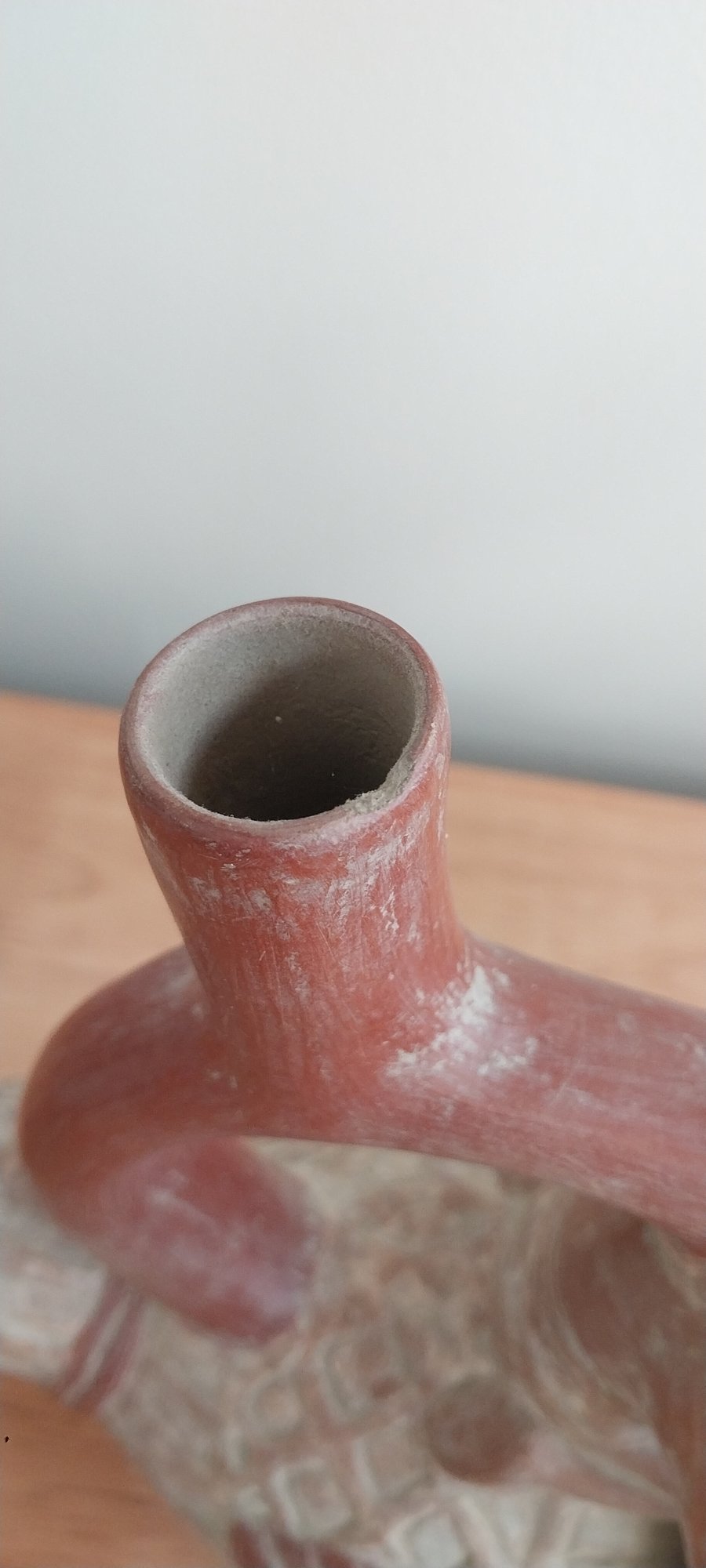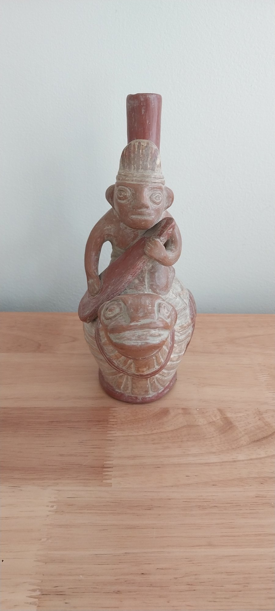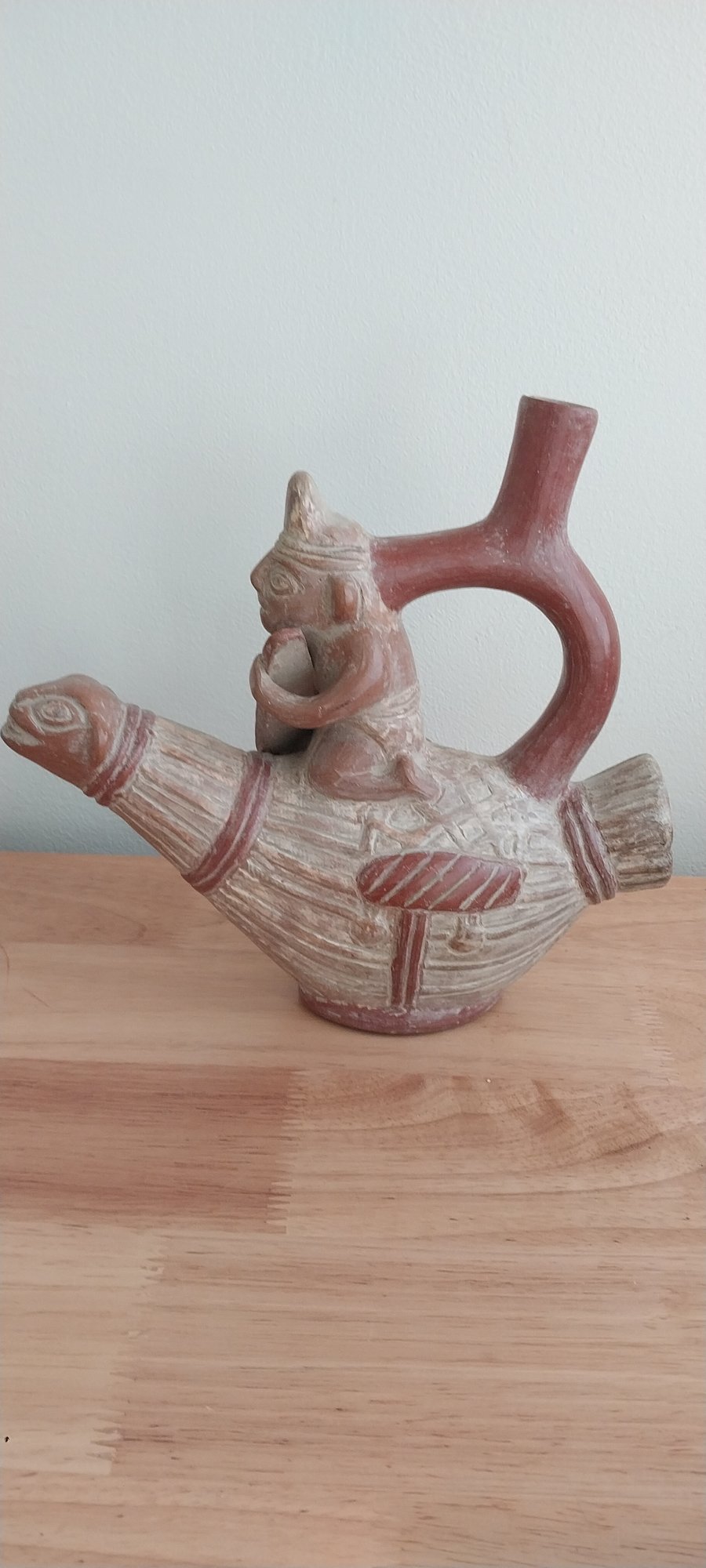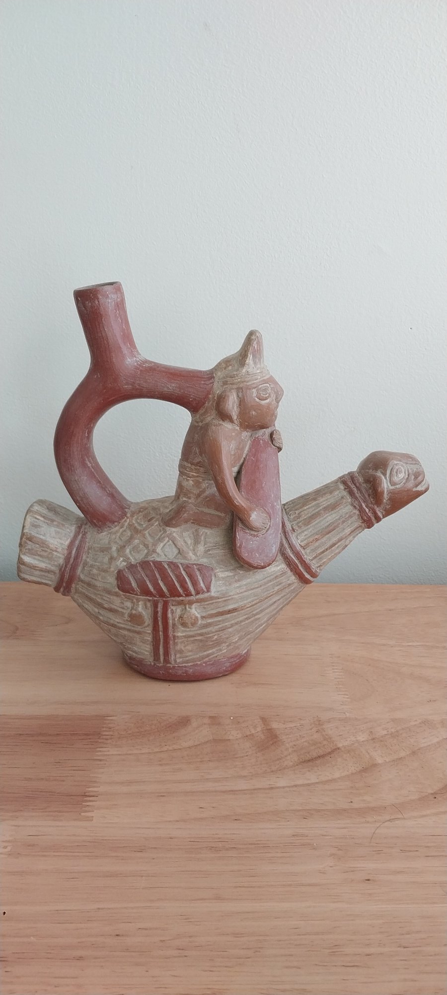 Pre-Columbian Chimu vase with Stirrip spout and anthropomorphic design