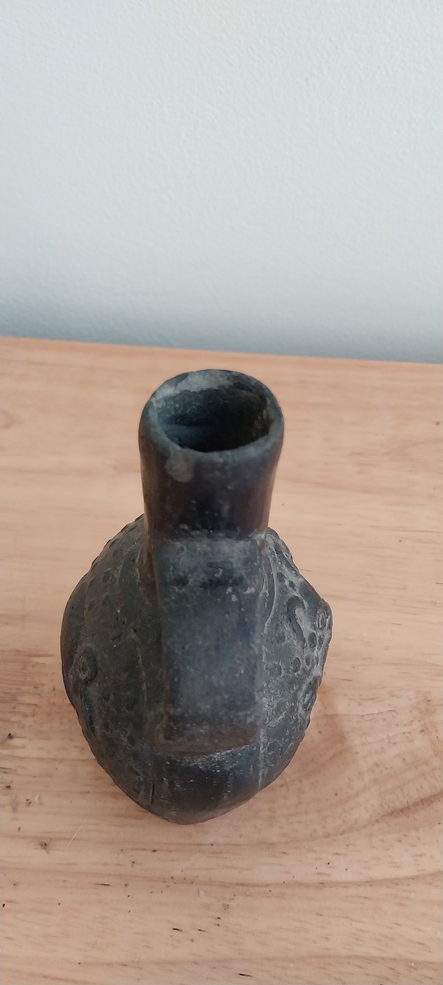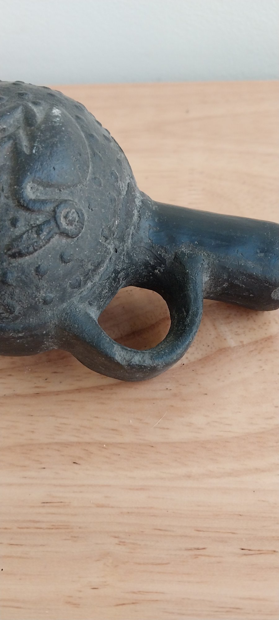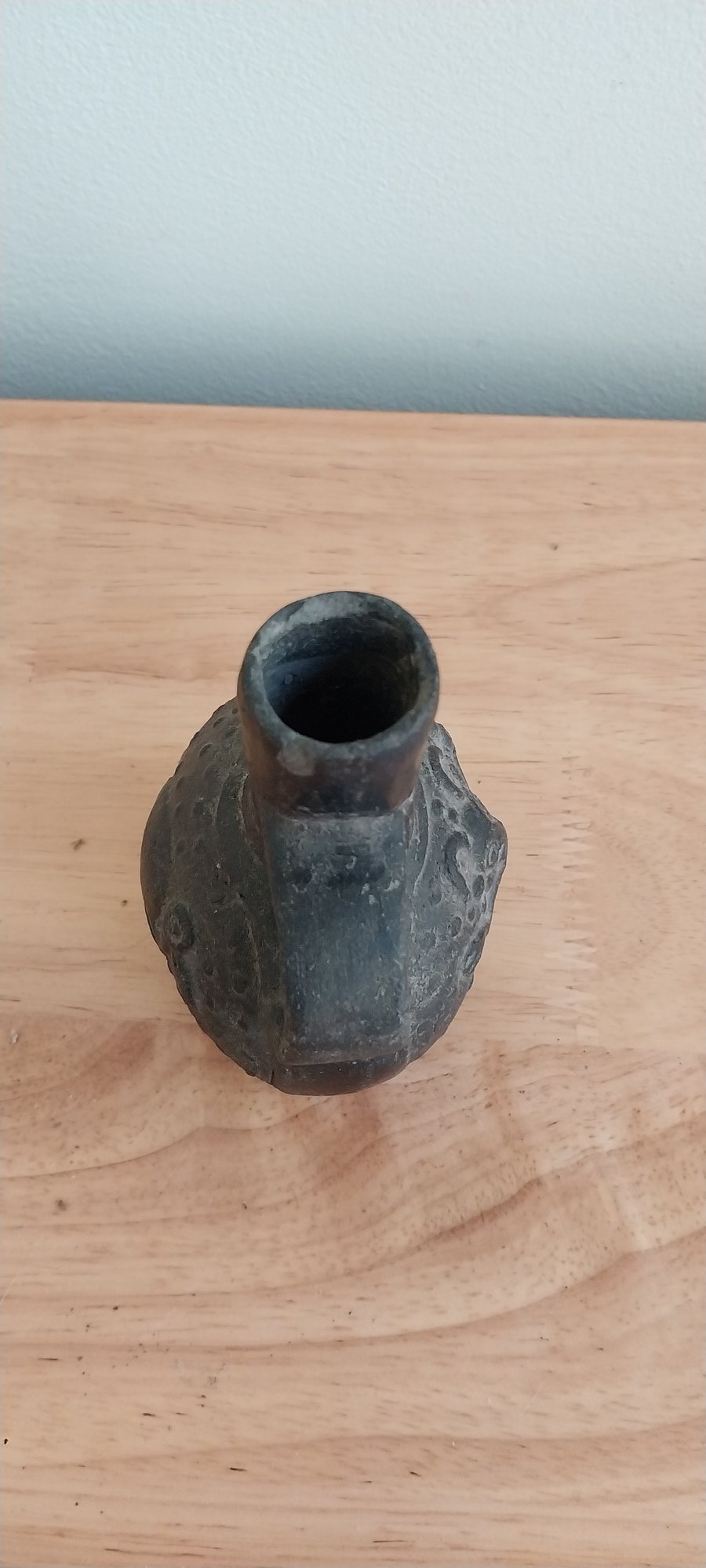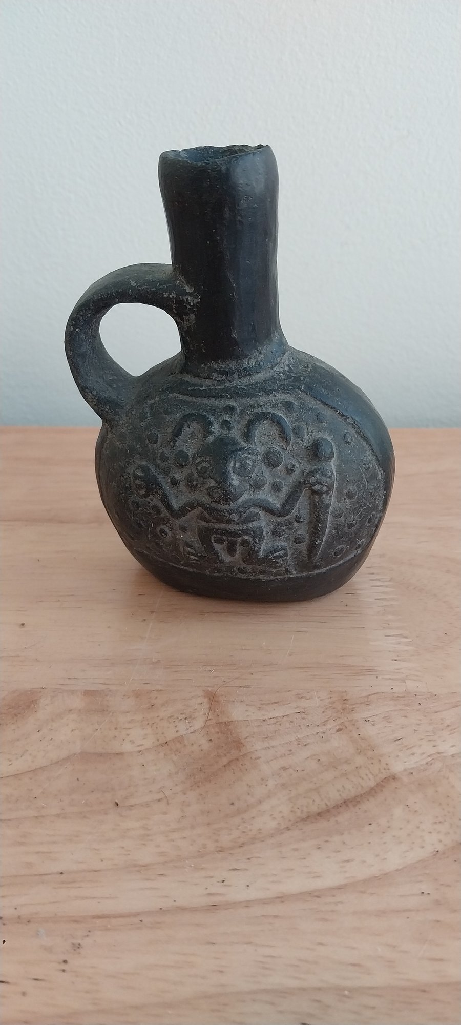 Pre-Columbian Chimu Vessel with avian and figural detailing. Stirrup spout.
