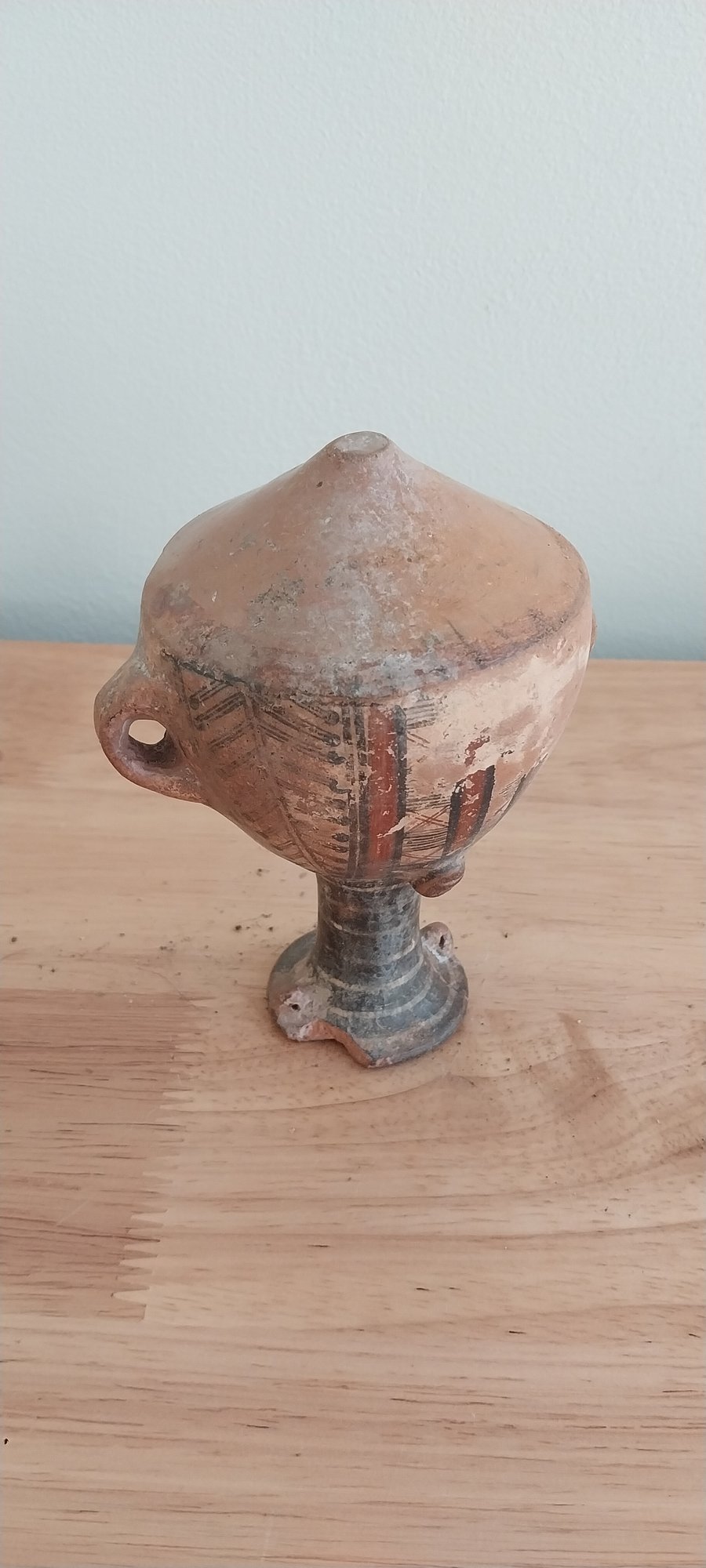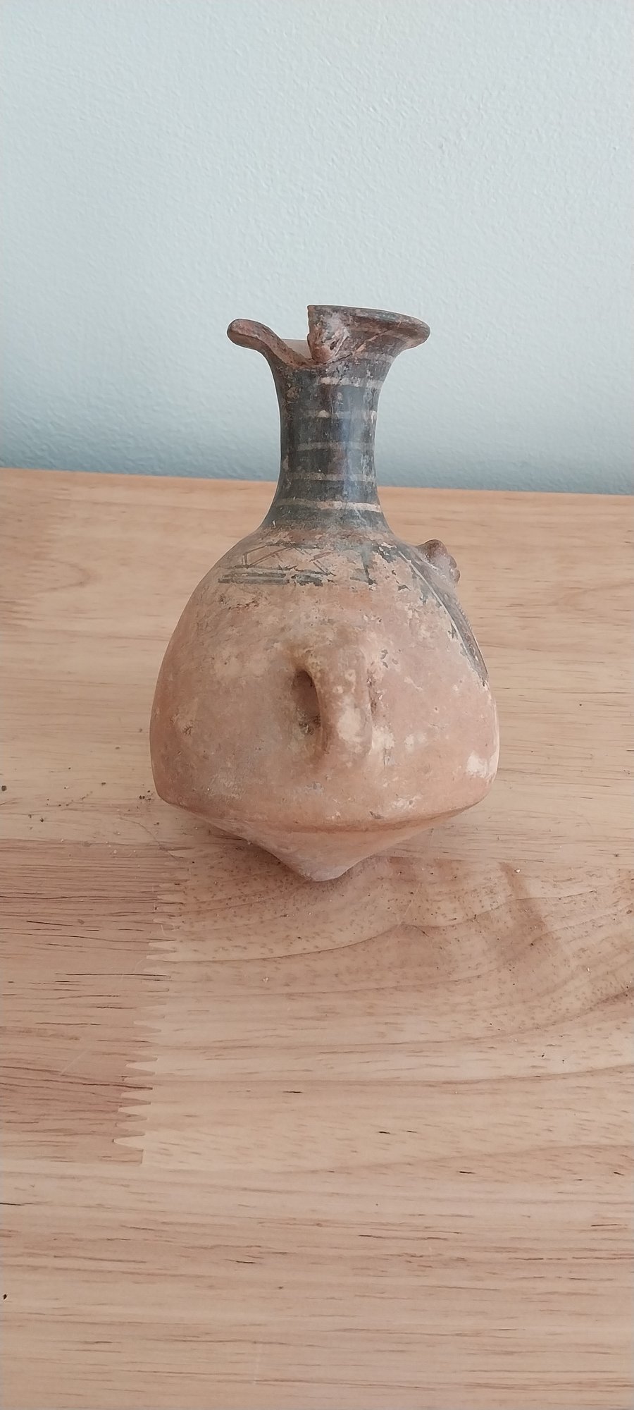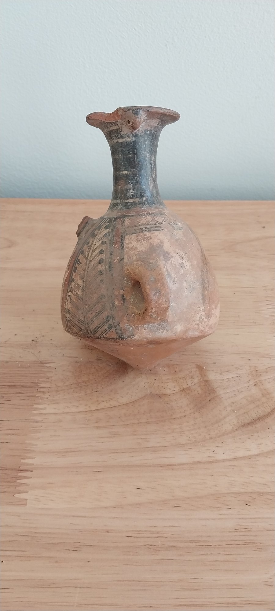 Pre-Columbian Inca Aribalo Vessel. Ceramic with holes for carrying