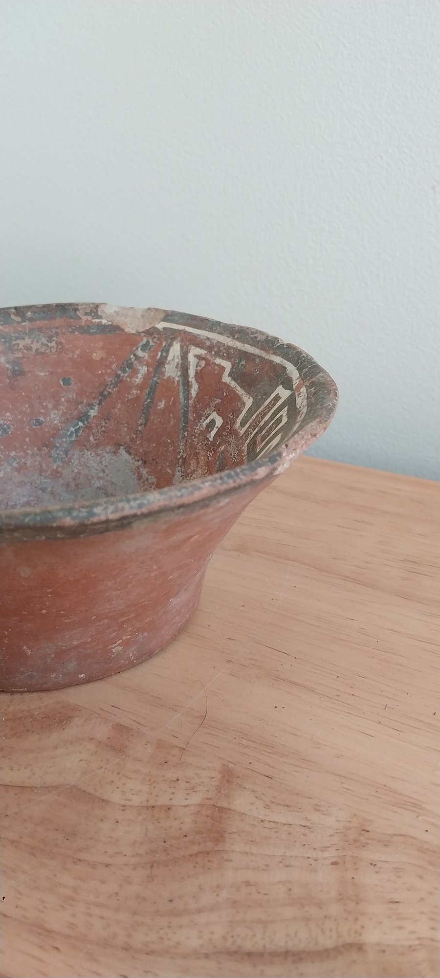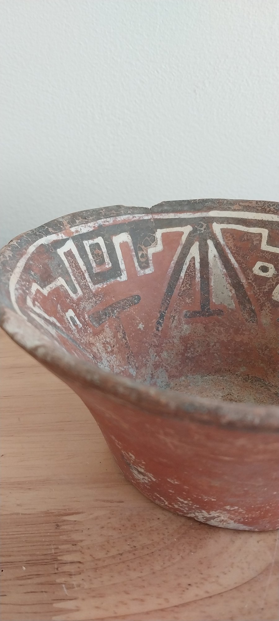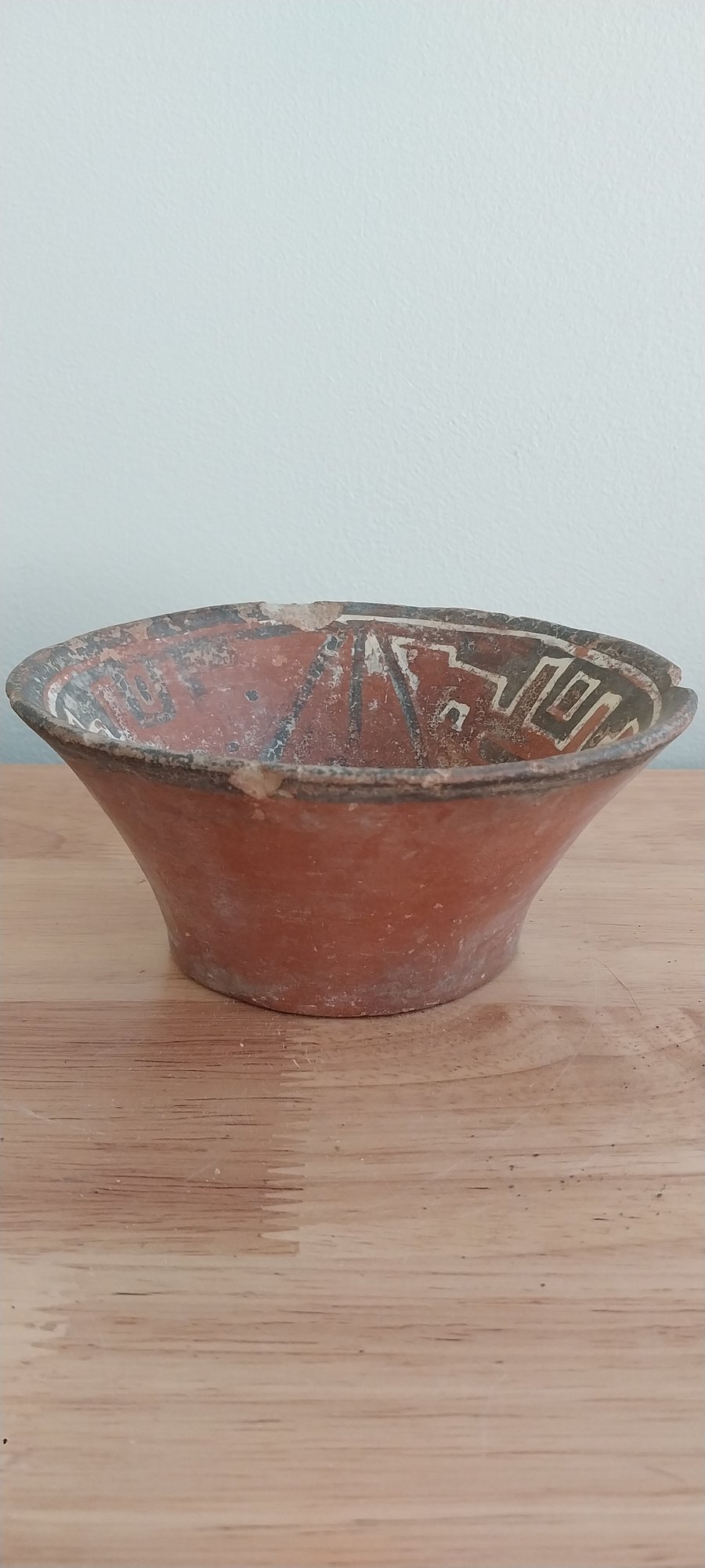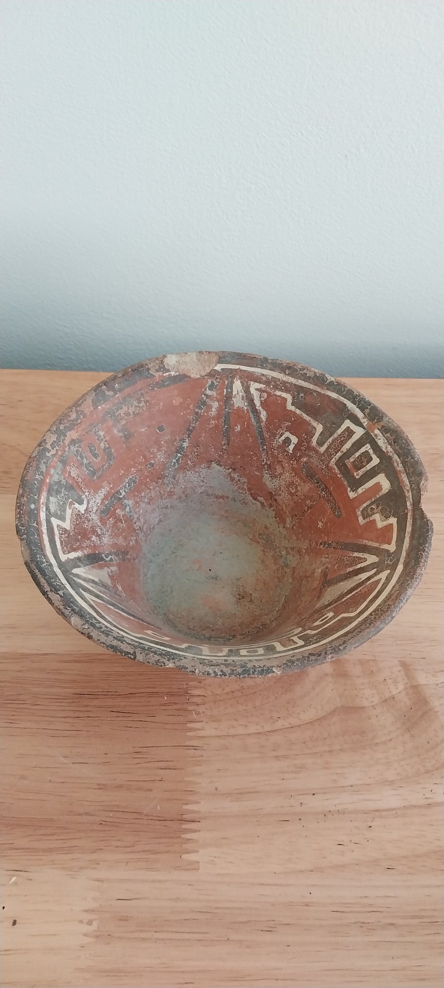Pre-Columbian Narino polychrome terracotta bowl with geometric pattern on inside of bowl