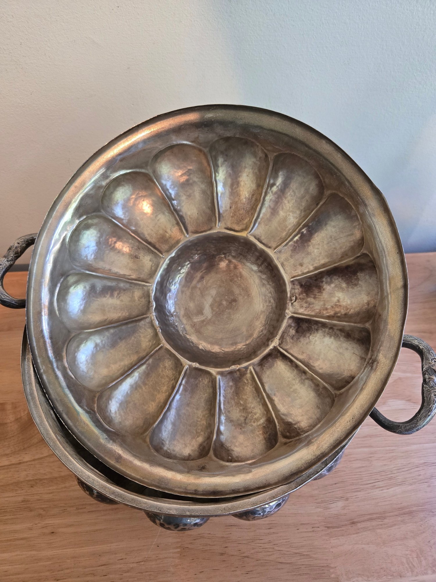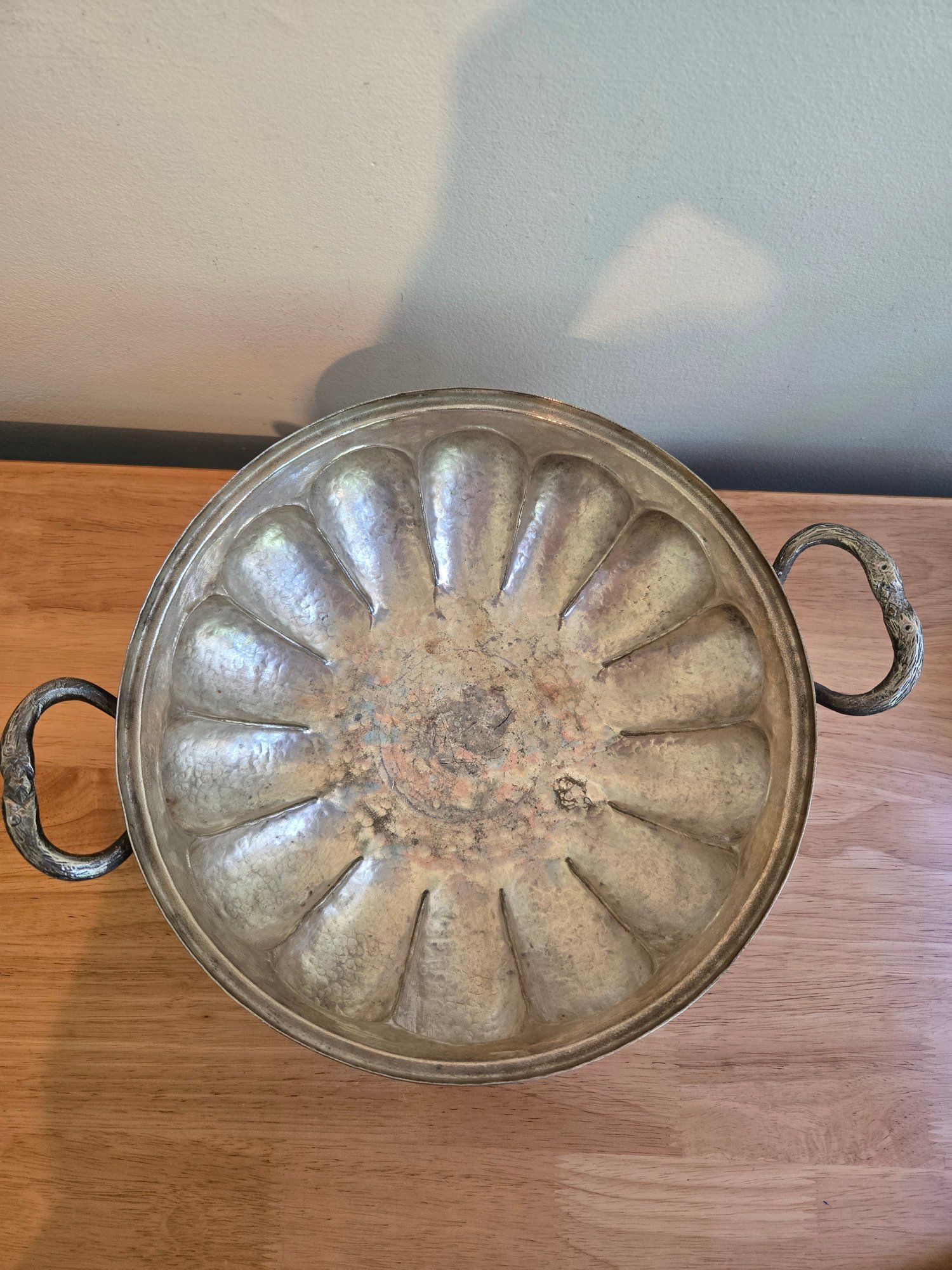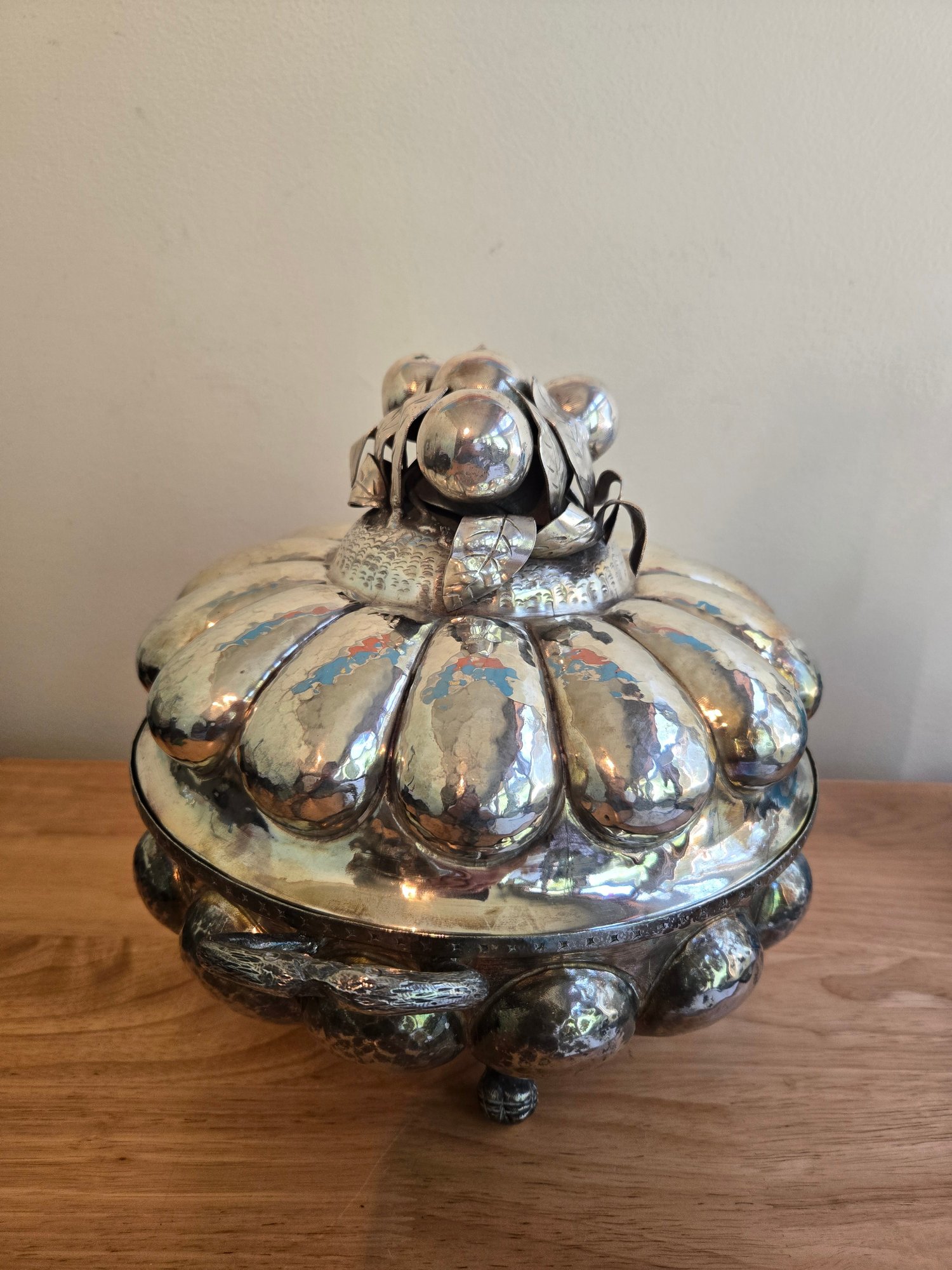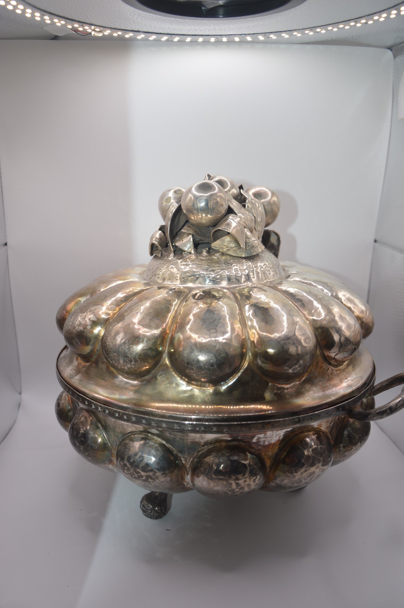 20th century South American silver coquera tureen. Hammered alpaca silver.