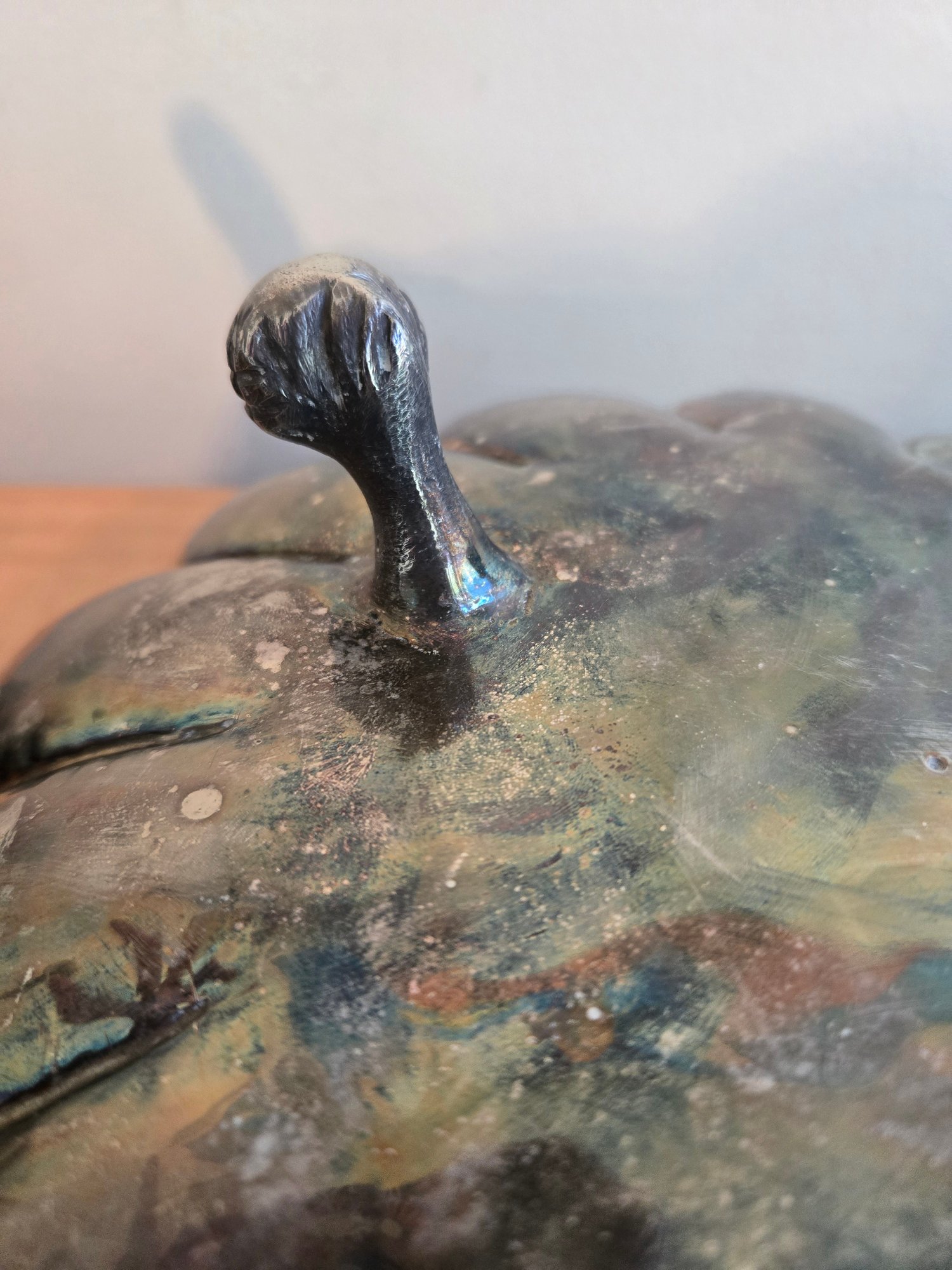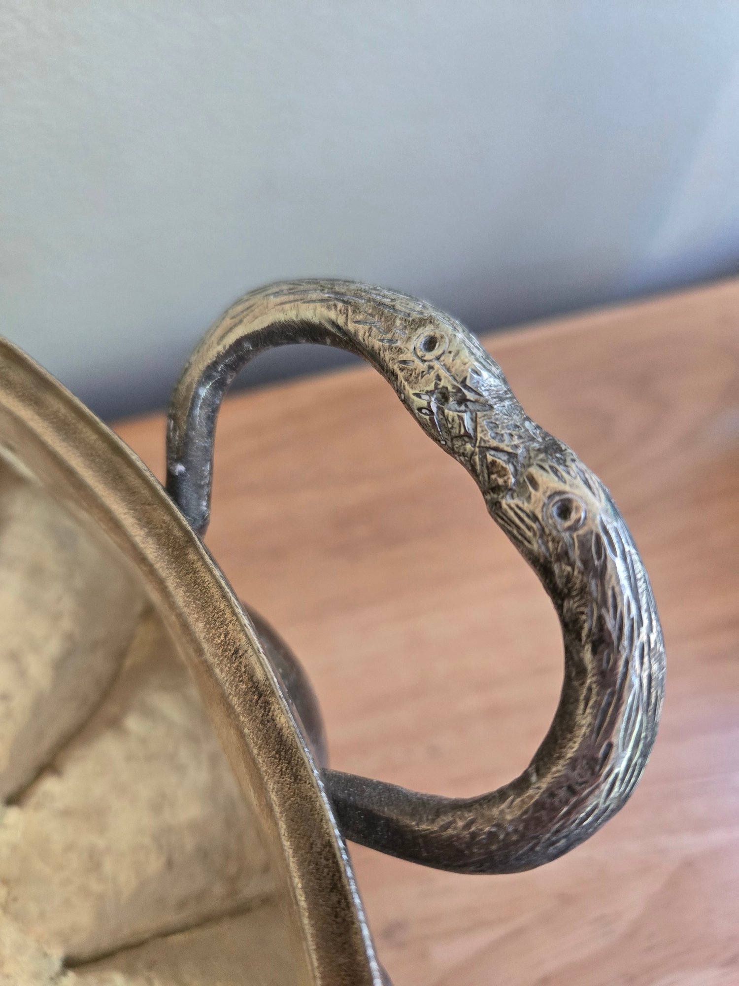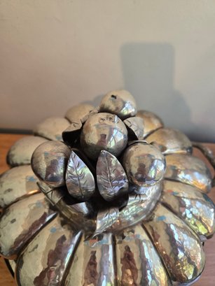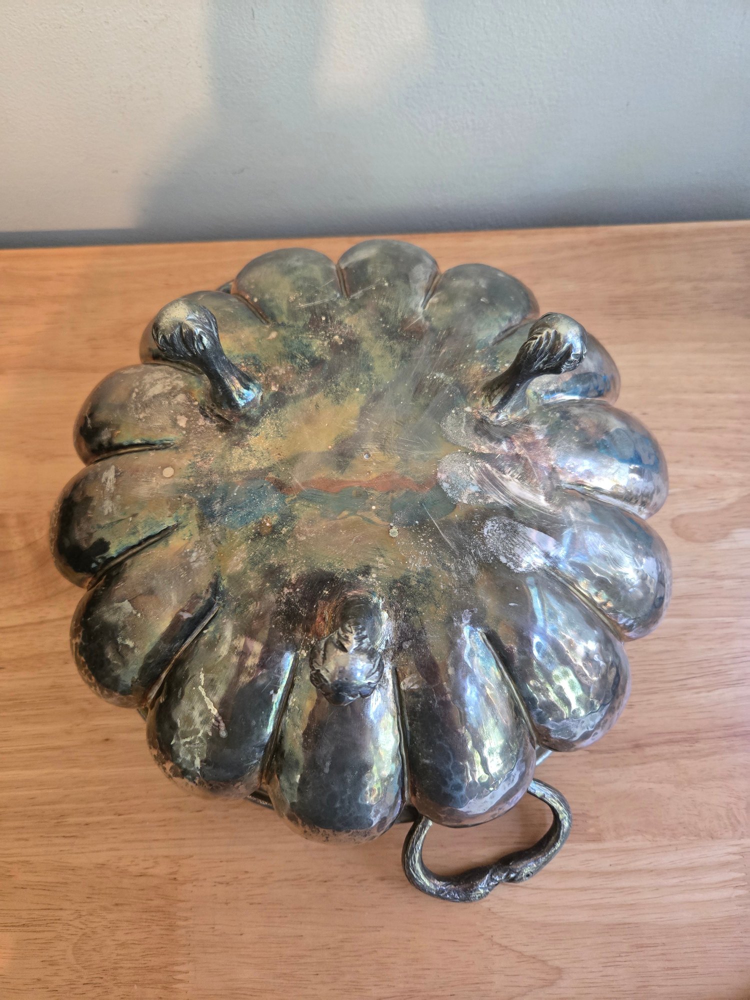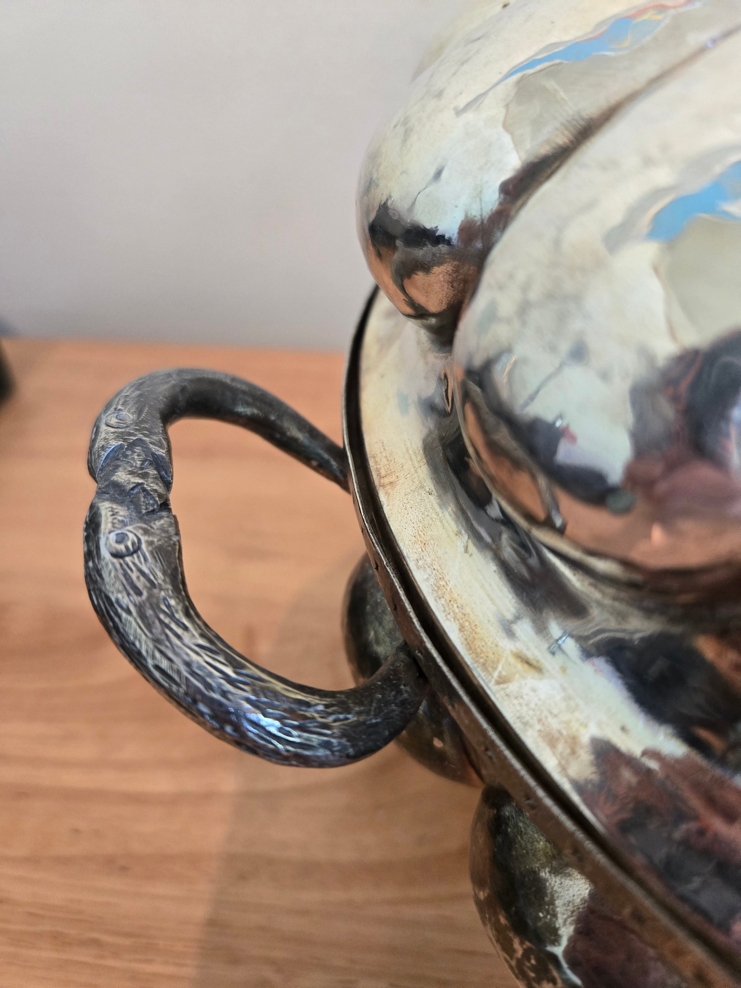 20th century South American silver coquera tureen. Hammered alpaca silver.