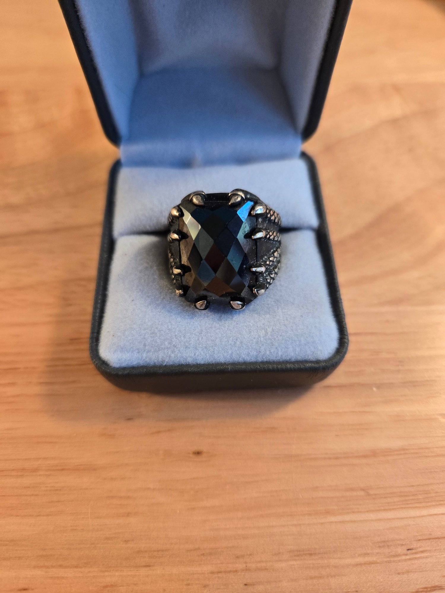 Sterling silver and black onyx men's ring. Dragon talons hold stone