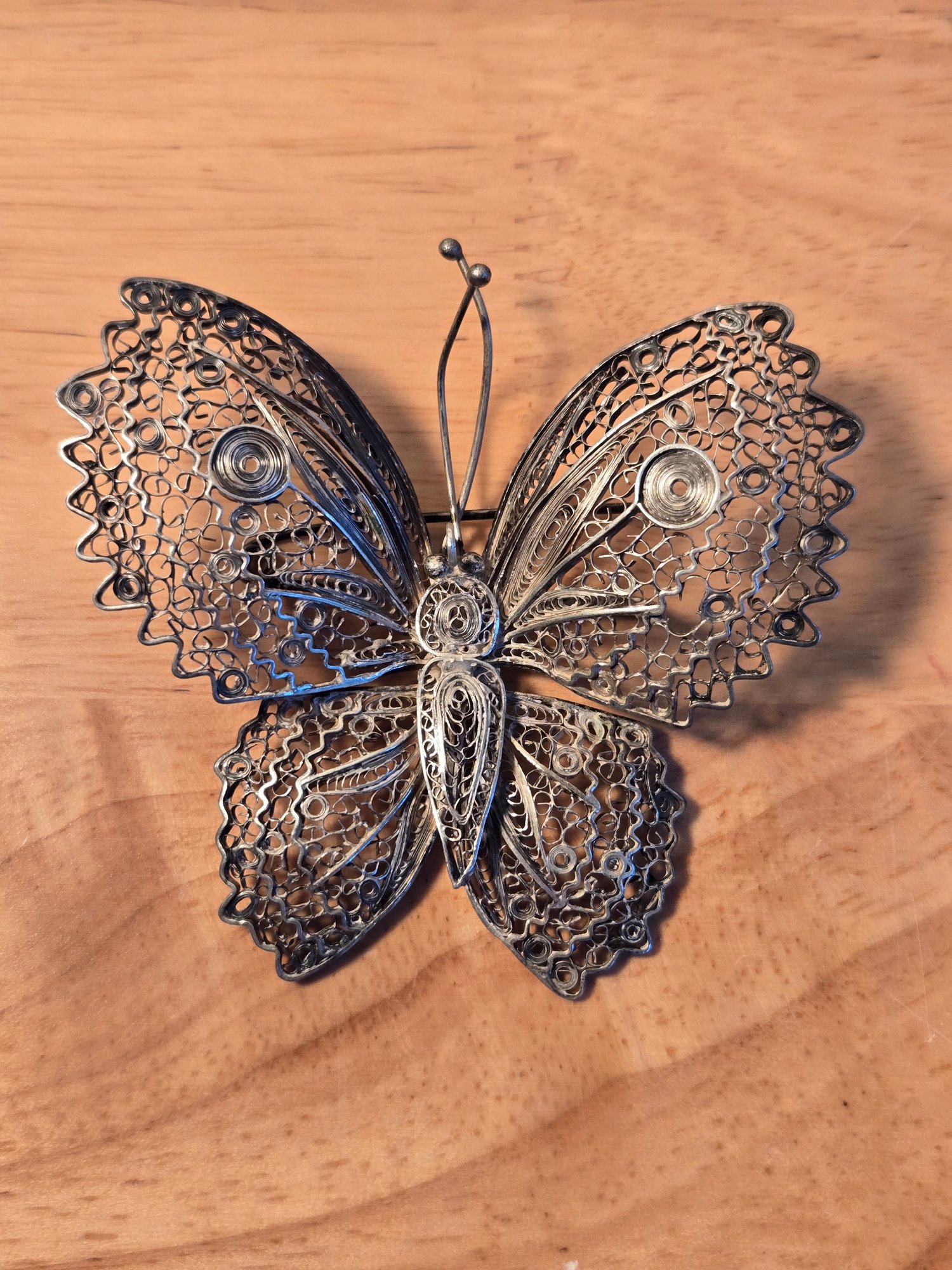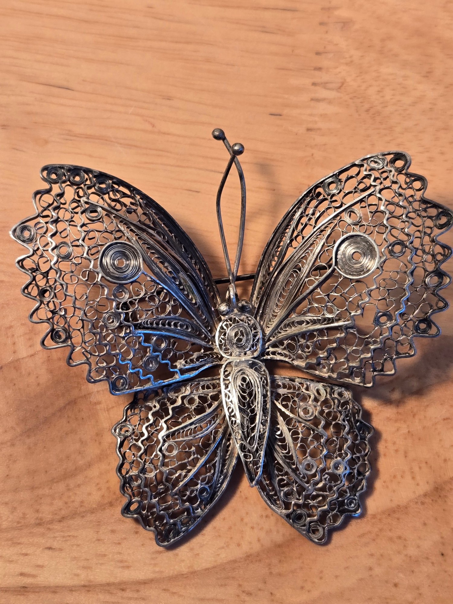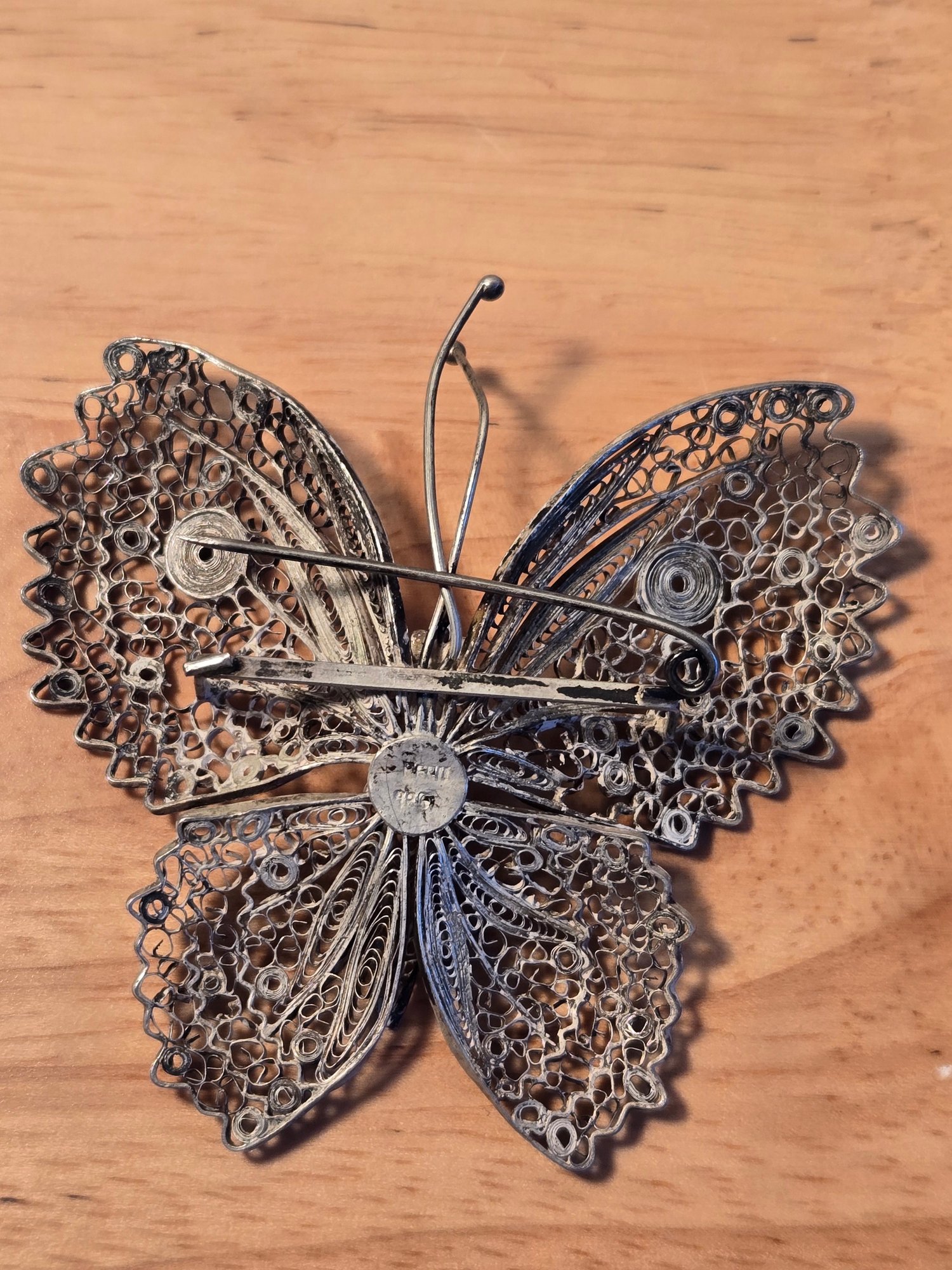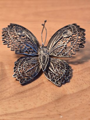 Sterling silver antique Victorian filigree butterfly brooch