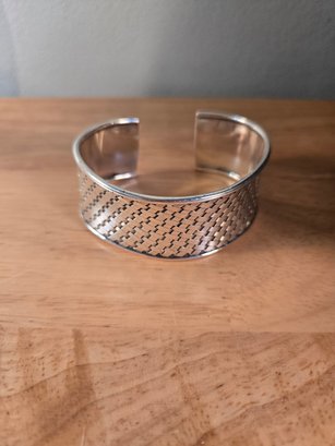 Sterling silver cuff bracelet with basket weave design