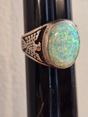 Sterling silver and cabochon opal ring.