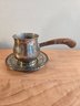 The pipkin has a wood handle and it's marked with #172. It measures 3.25" tall, 7.5" wide (with handle), and it weighs 2.98 ozt