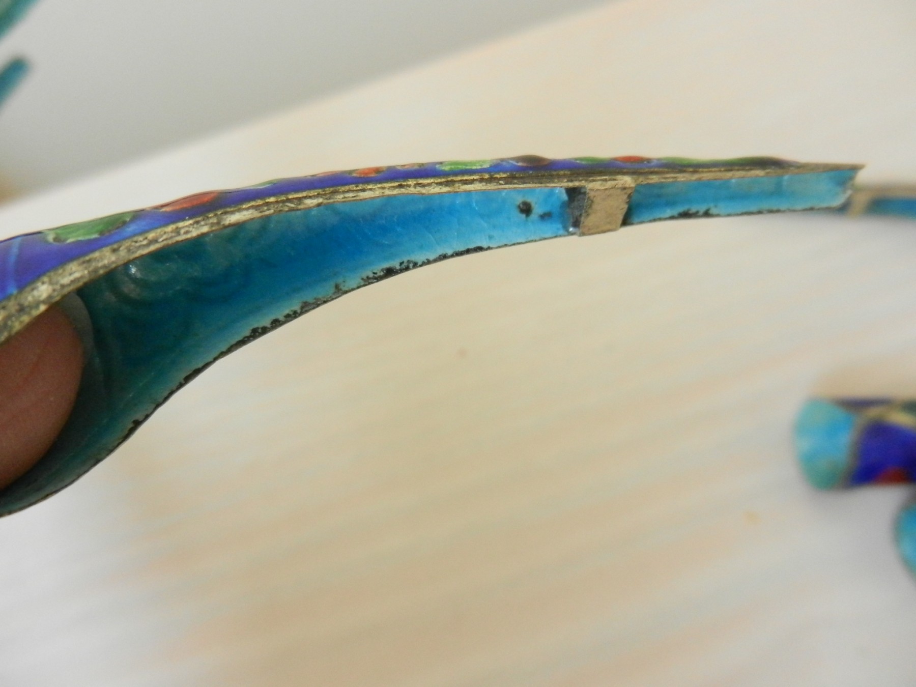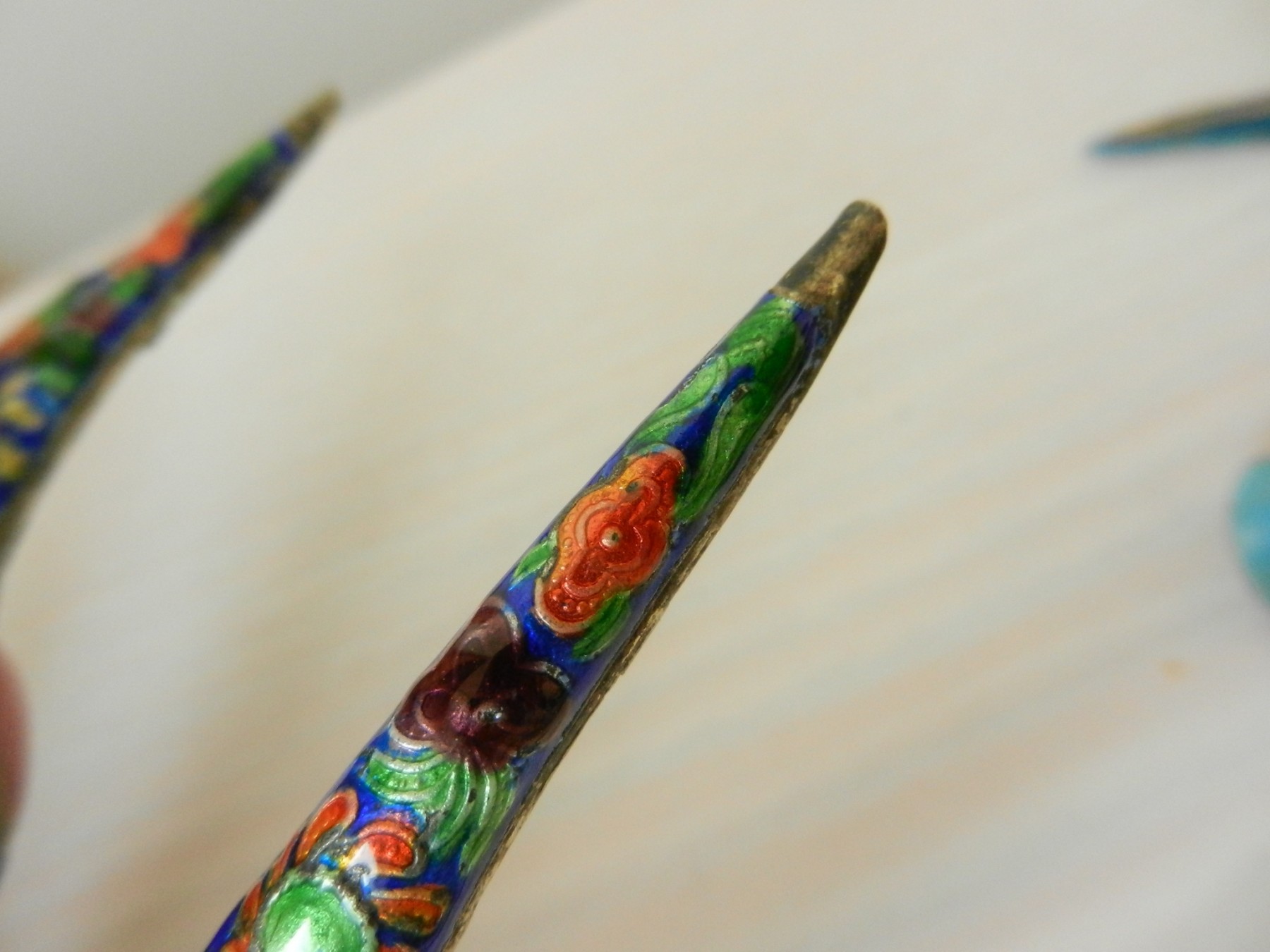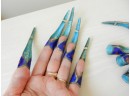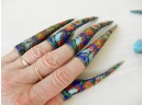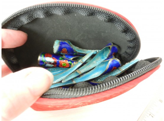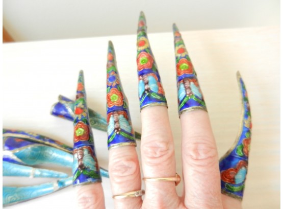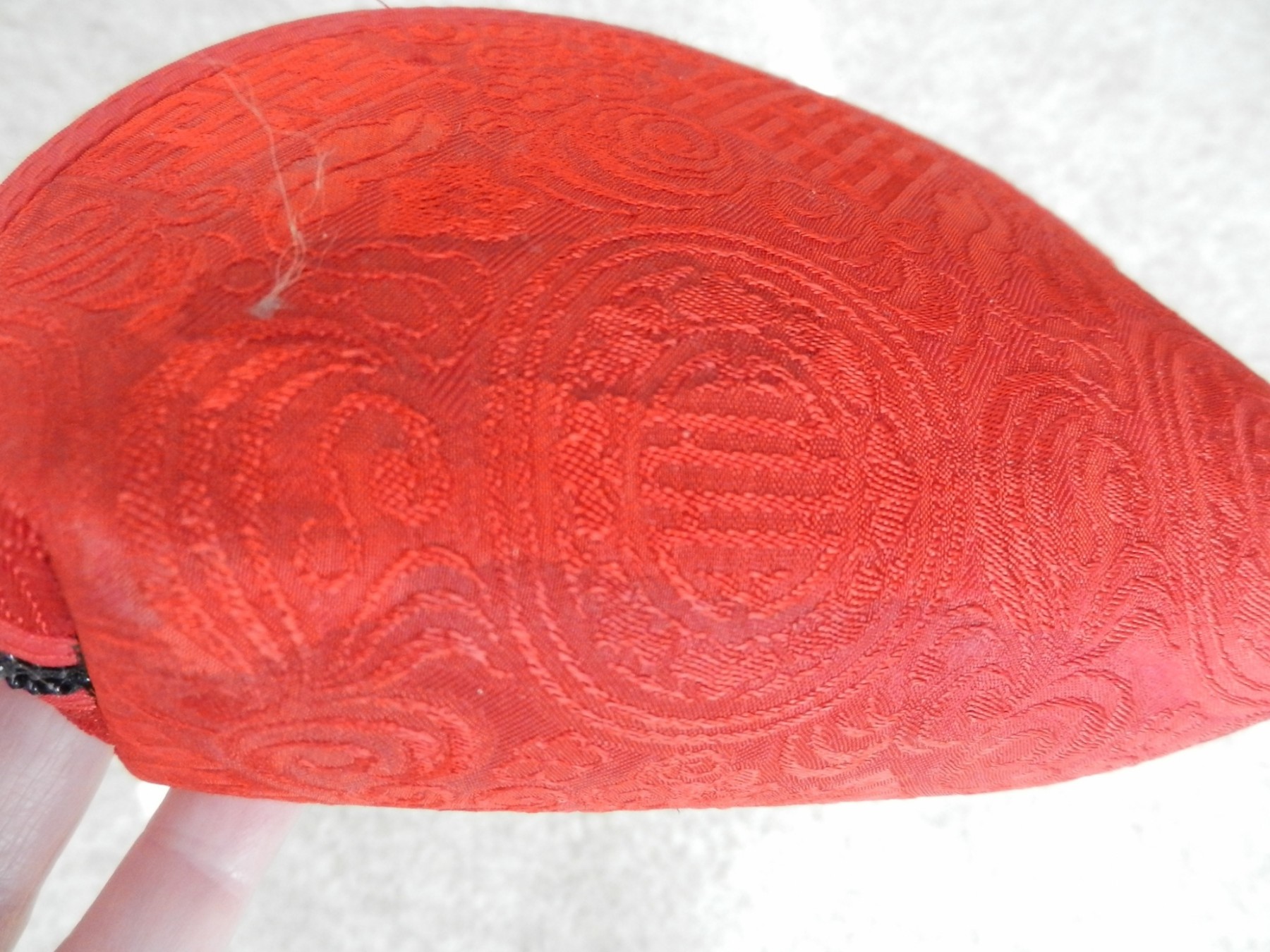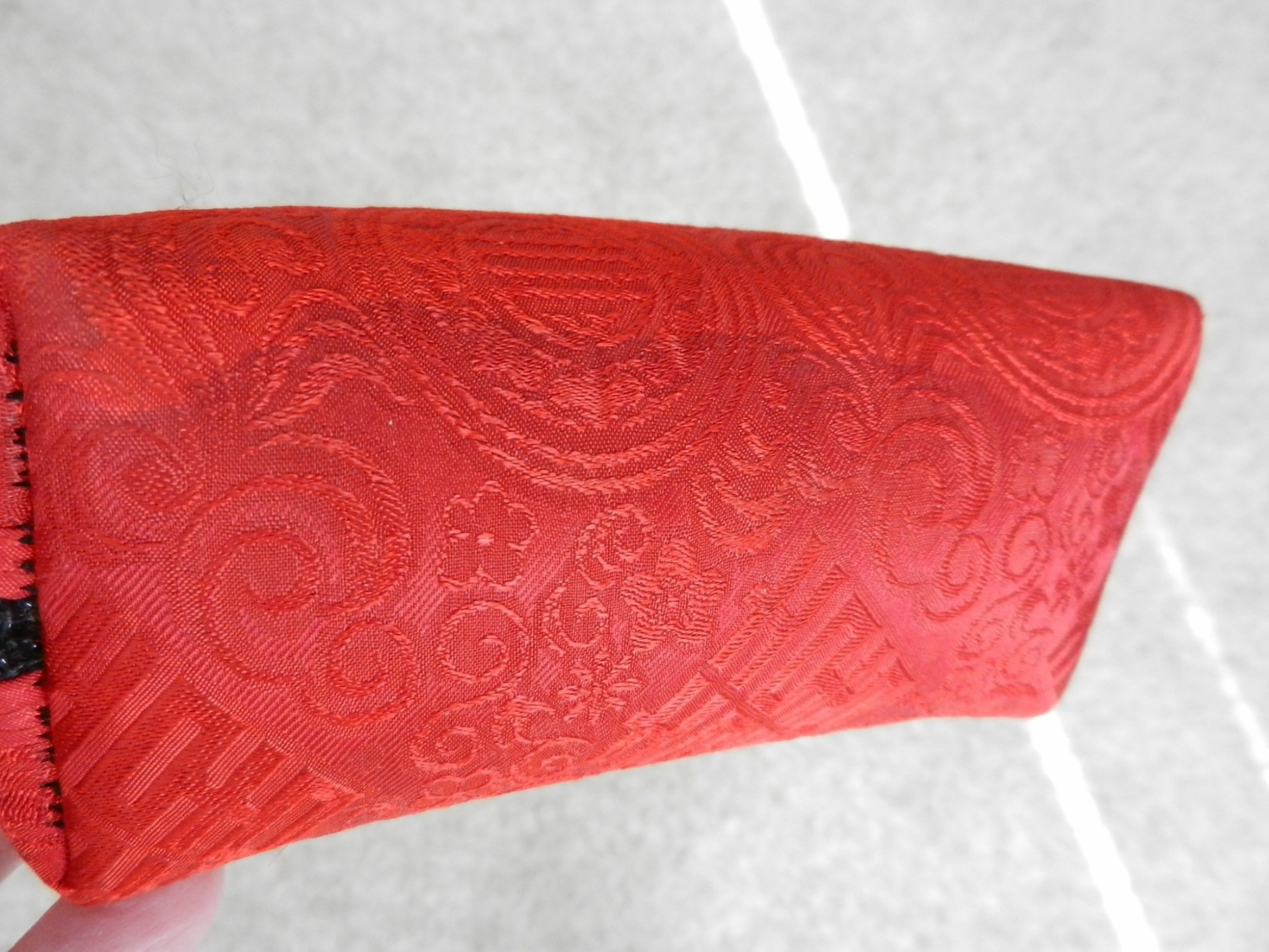 Vintage 10 enamel nail guard protectors in red satin zip bag (DP67)