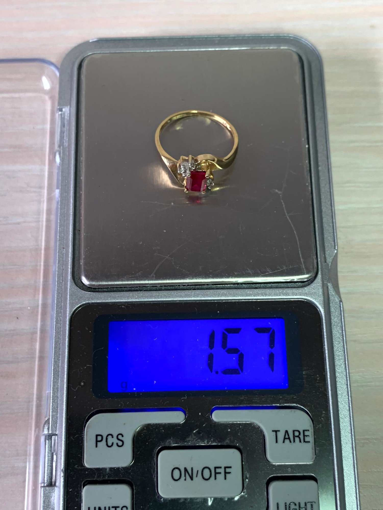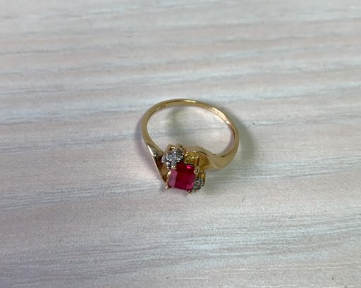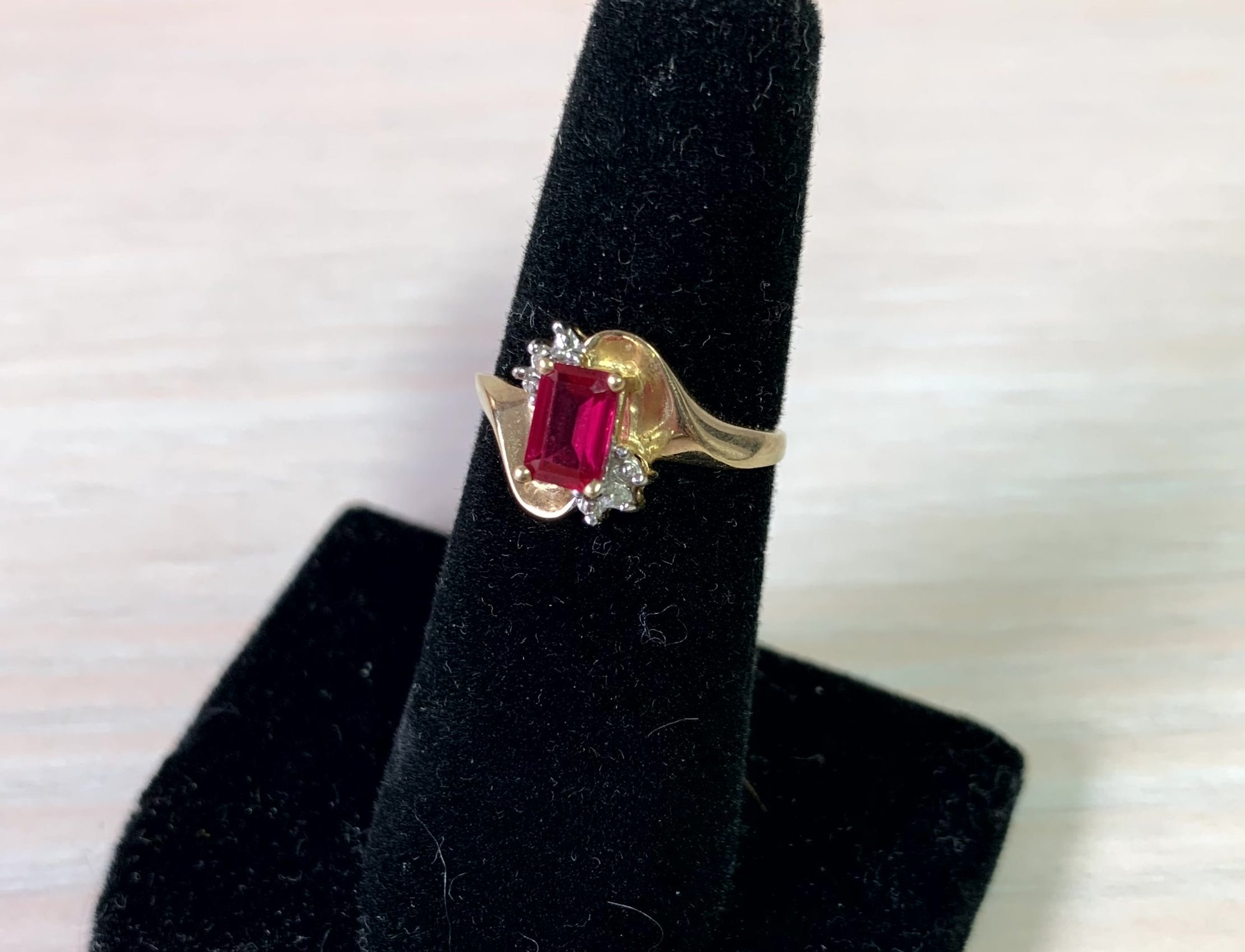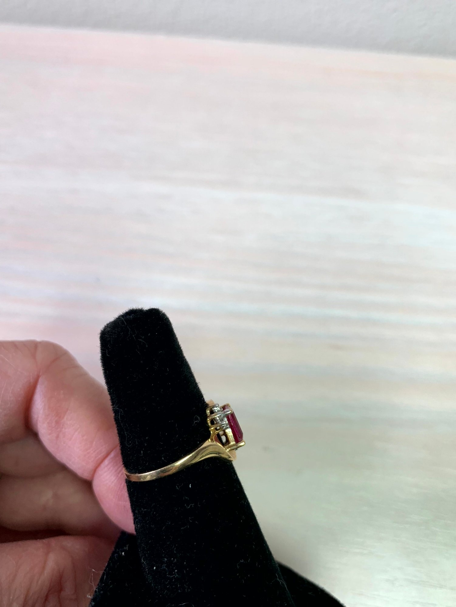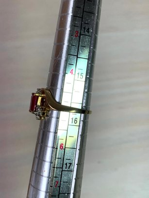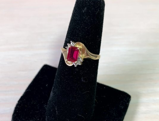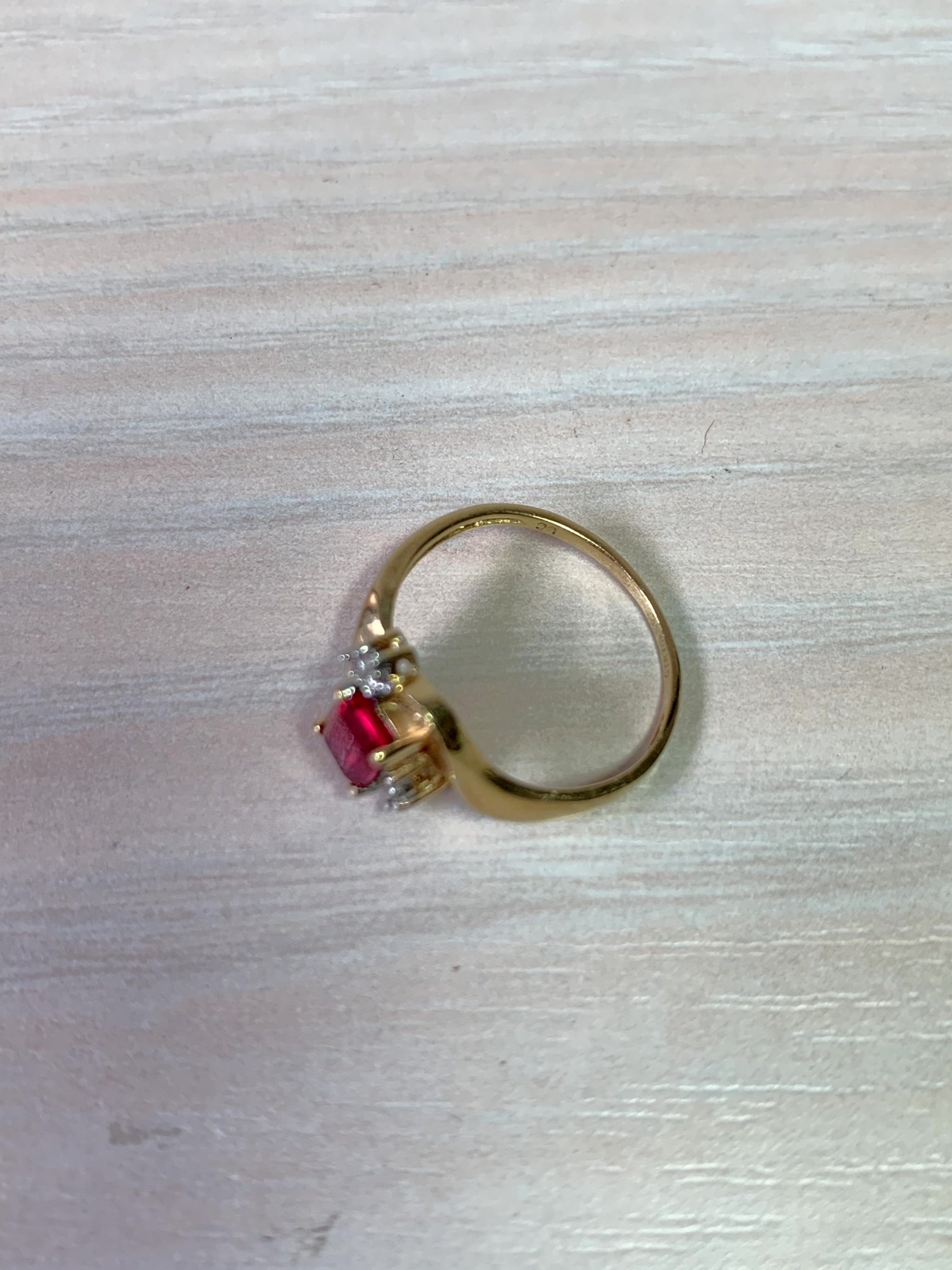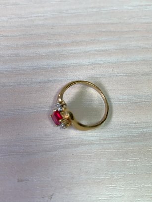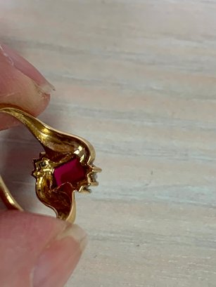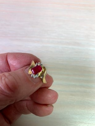 Vintage 10k gold ring with ruby and white stone shoulders (DL17)