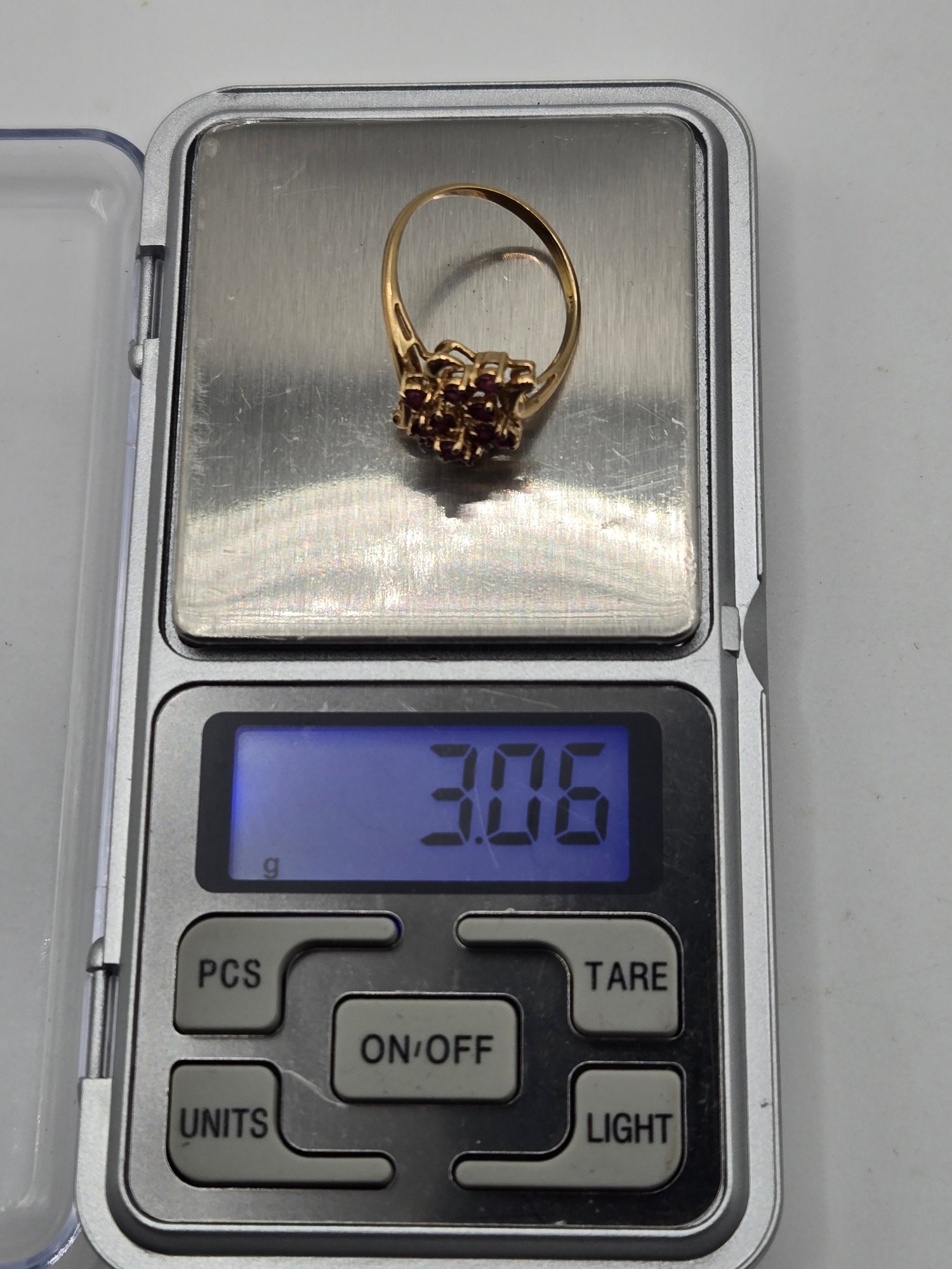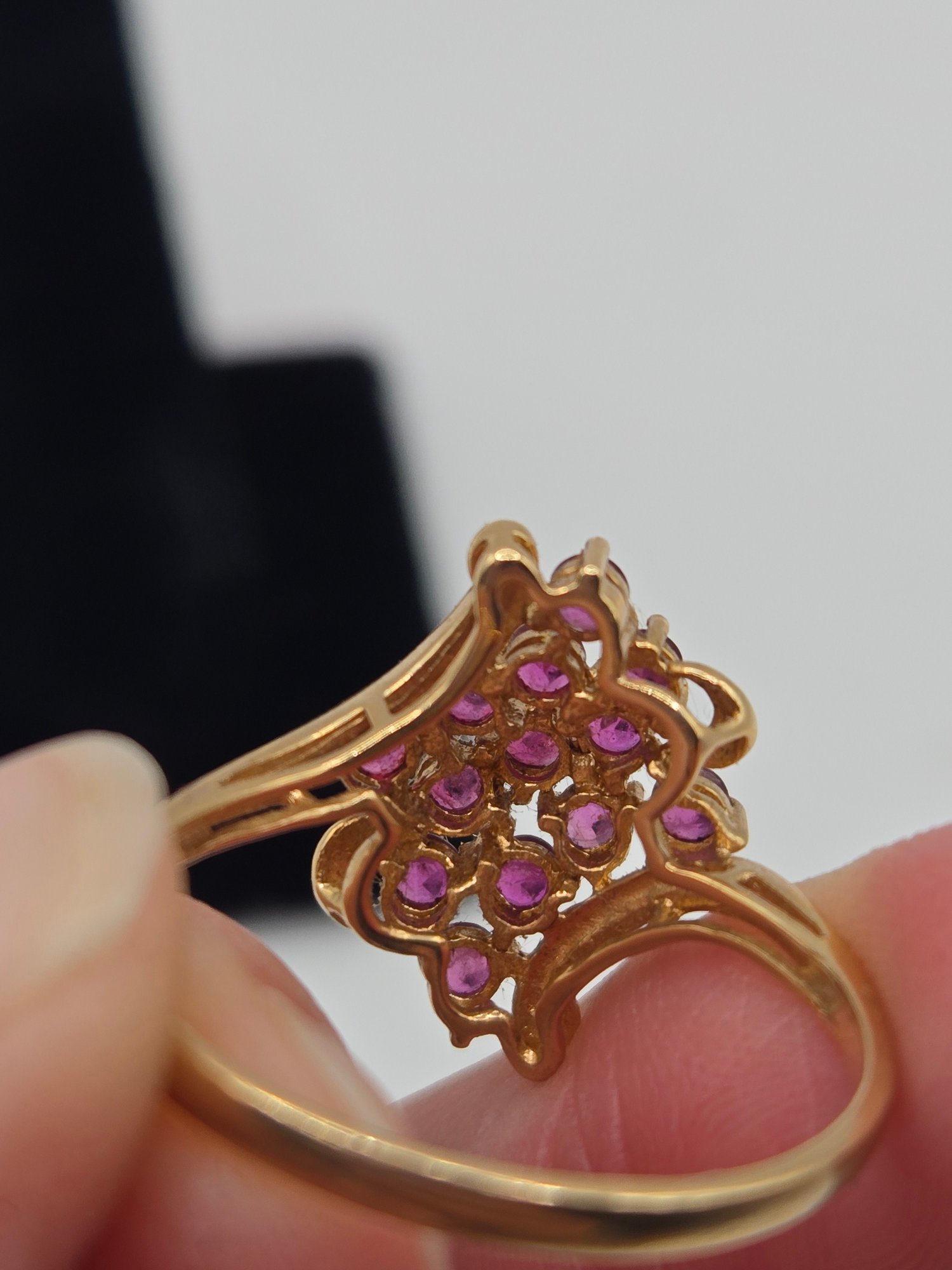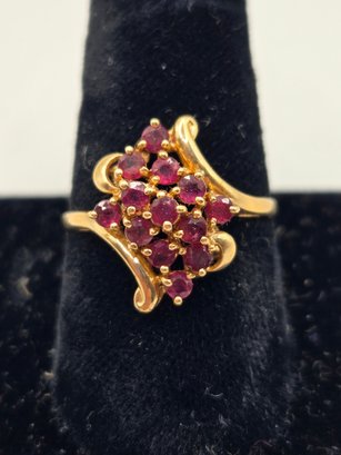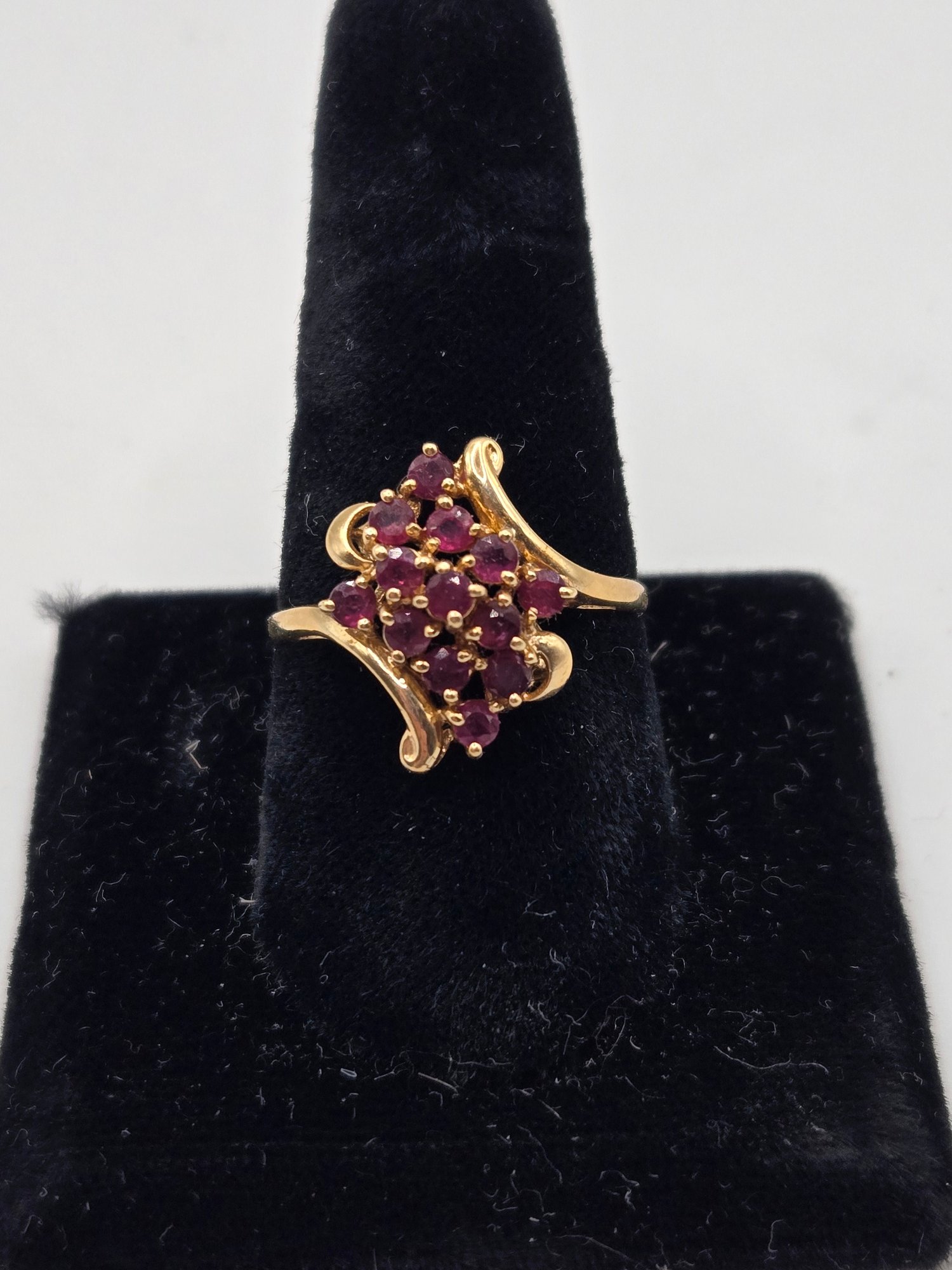 Vintage 10K yellow gold ring with a cluster of what appear to be 13 rubies.