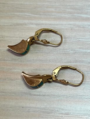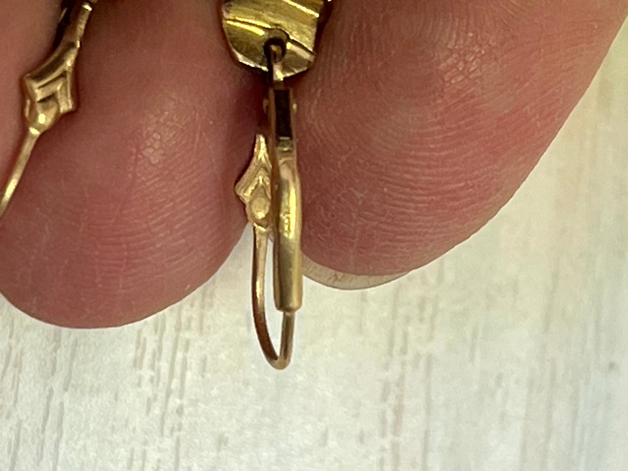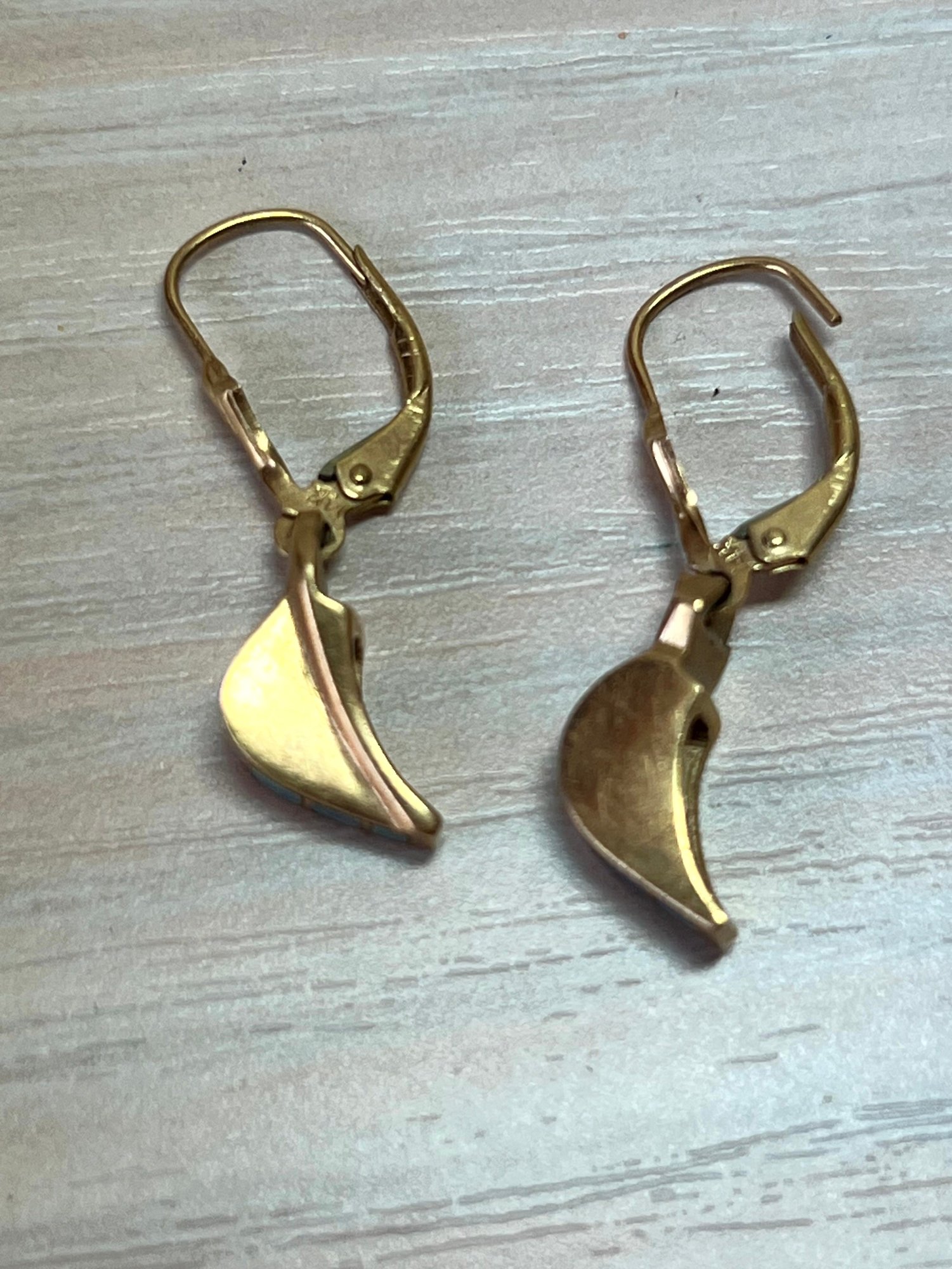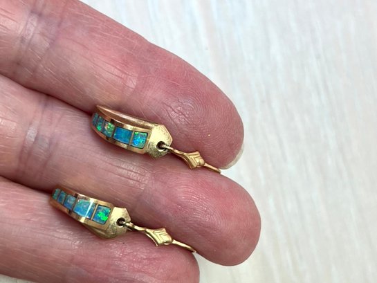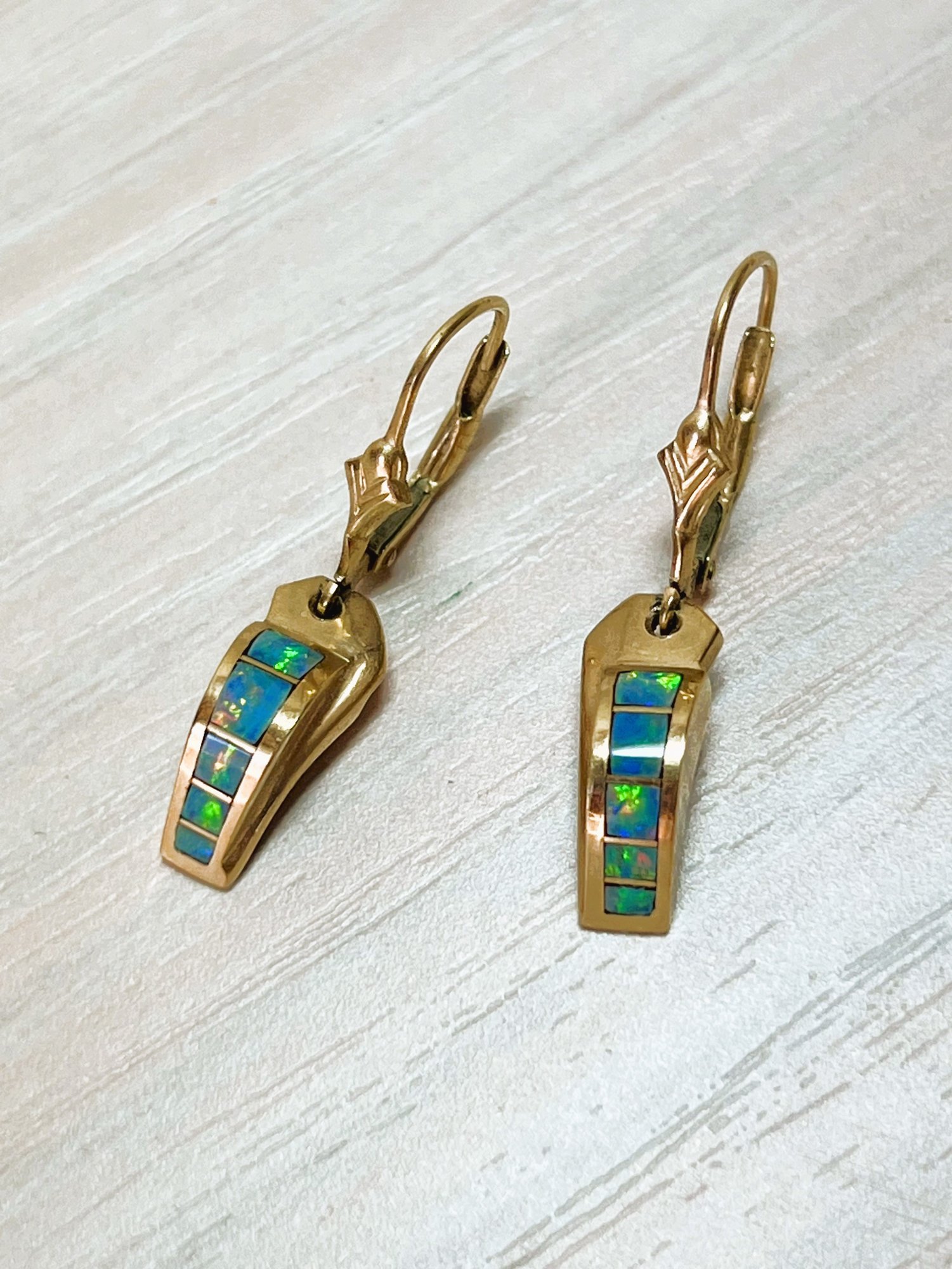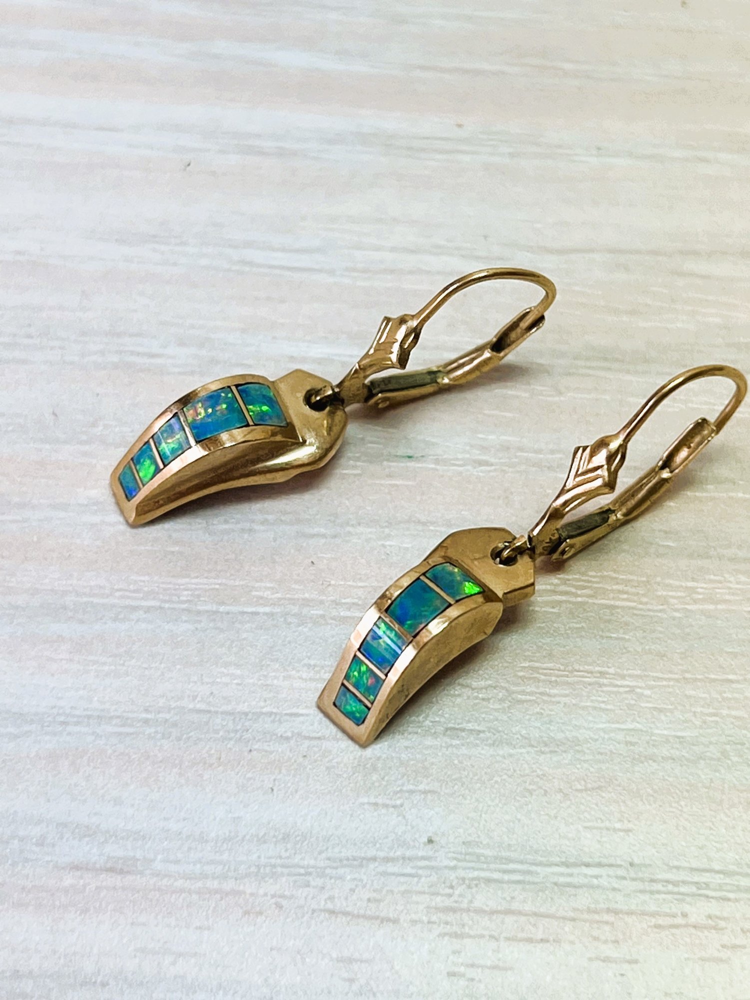 Vintage 14k gold and blue opal dangle earrings (DL96)