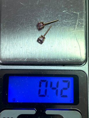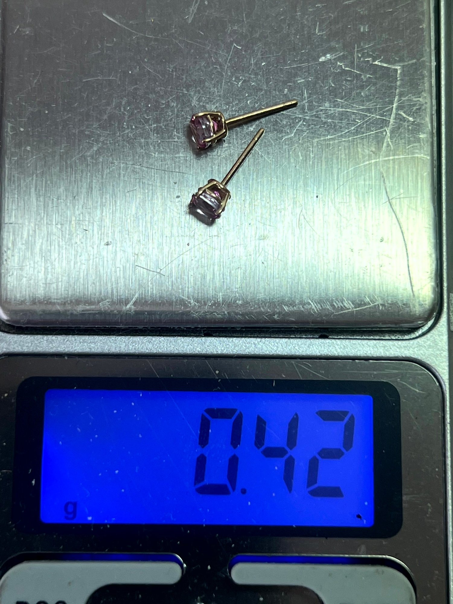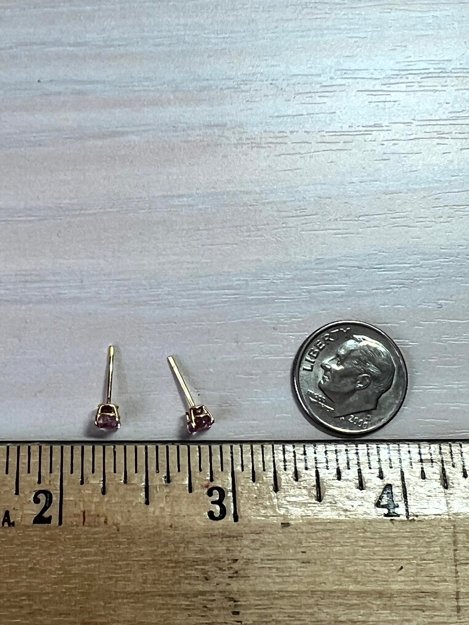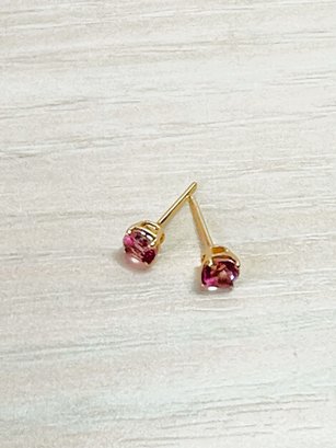 Vintage 14k gold Pink Stone Stud Earrings signed SJI (DL107)