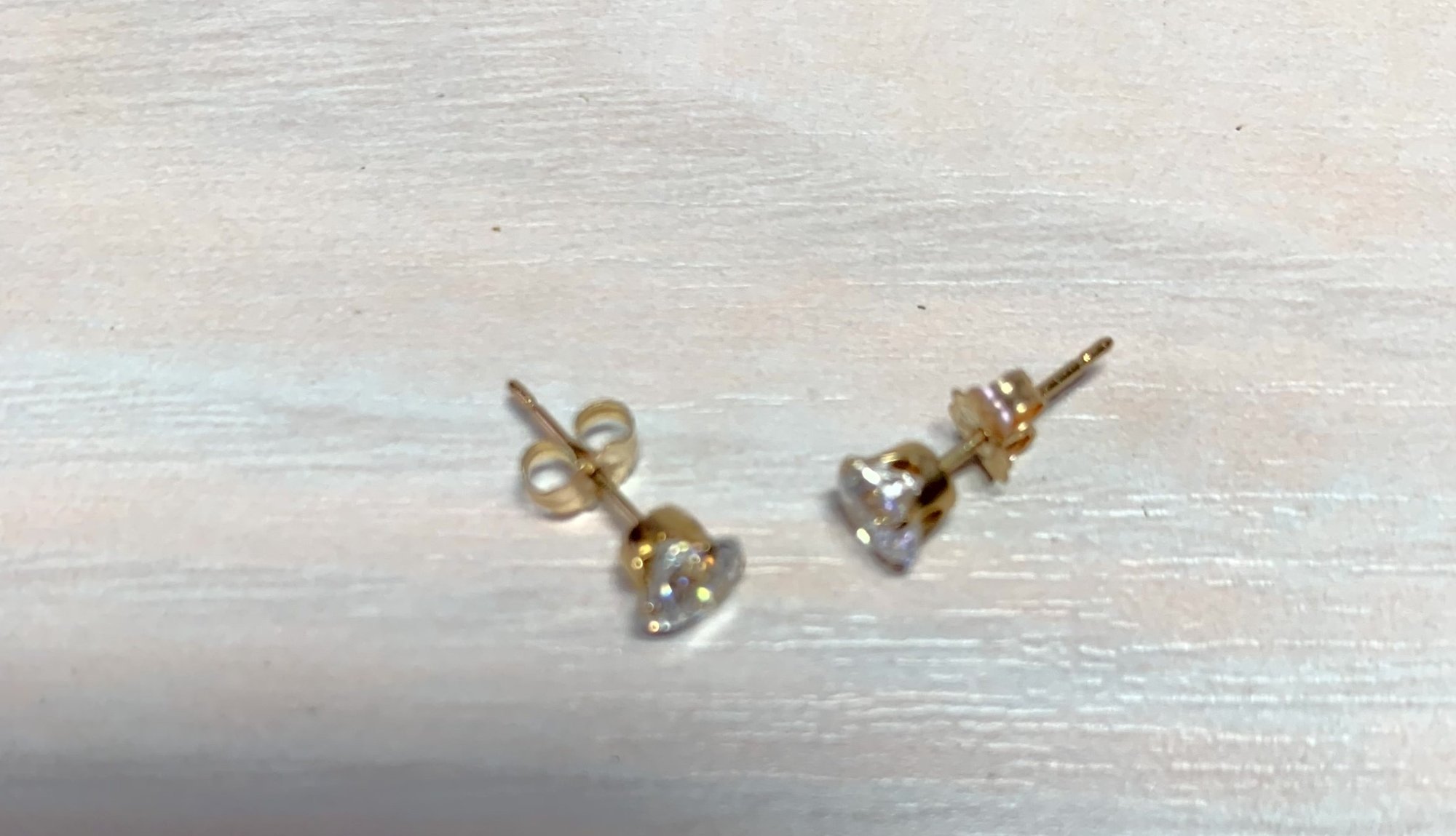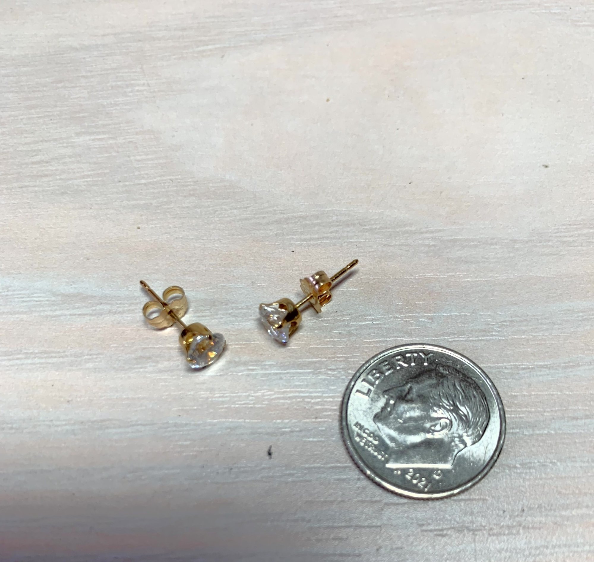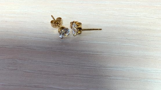 Vintage 14k gold studs with clear stones - not diamonds (DL12)