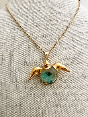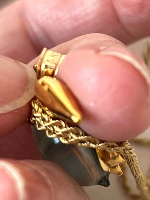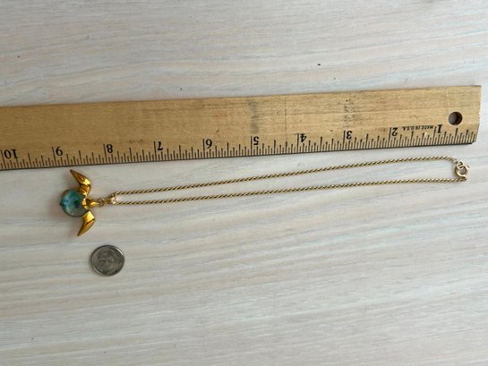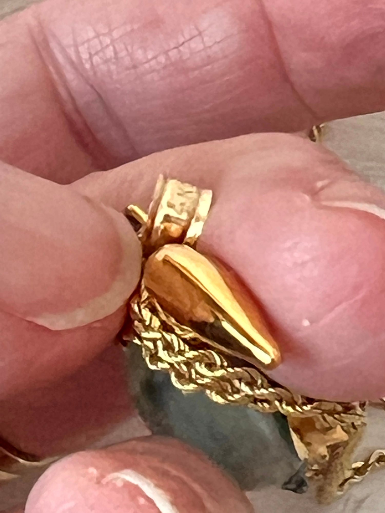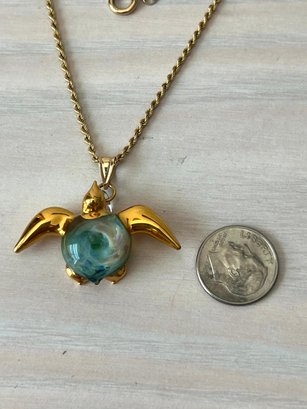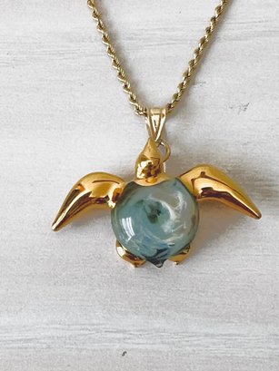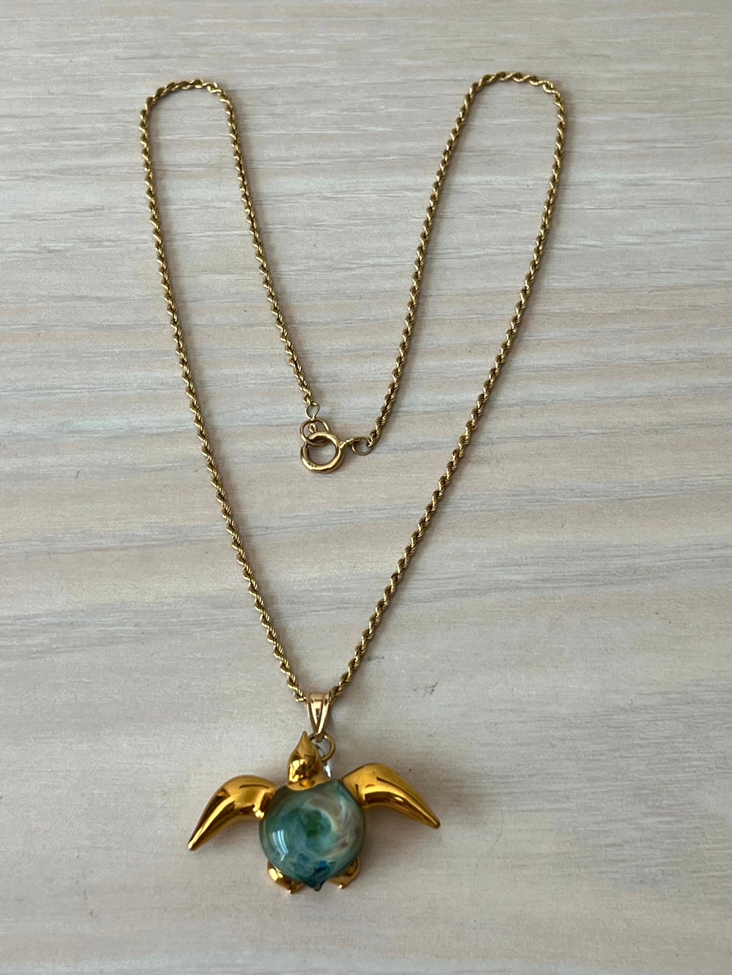 Vintage 14k gold twisted rope chain with glass sea turtle pendant (DL102)