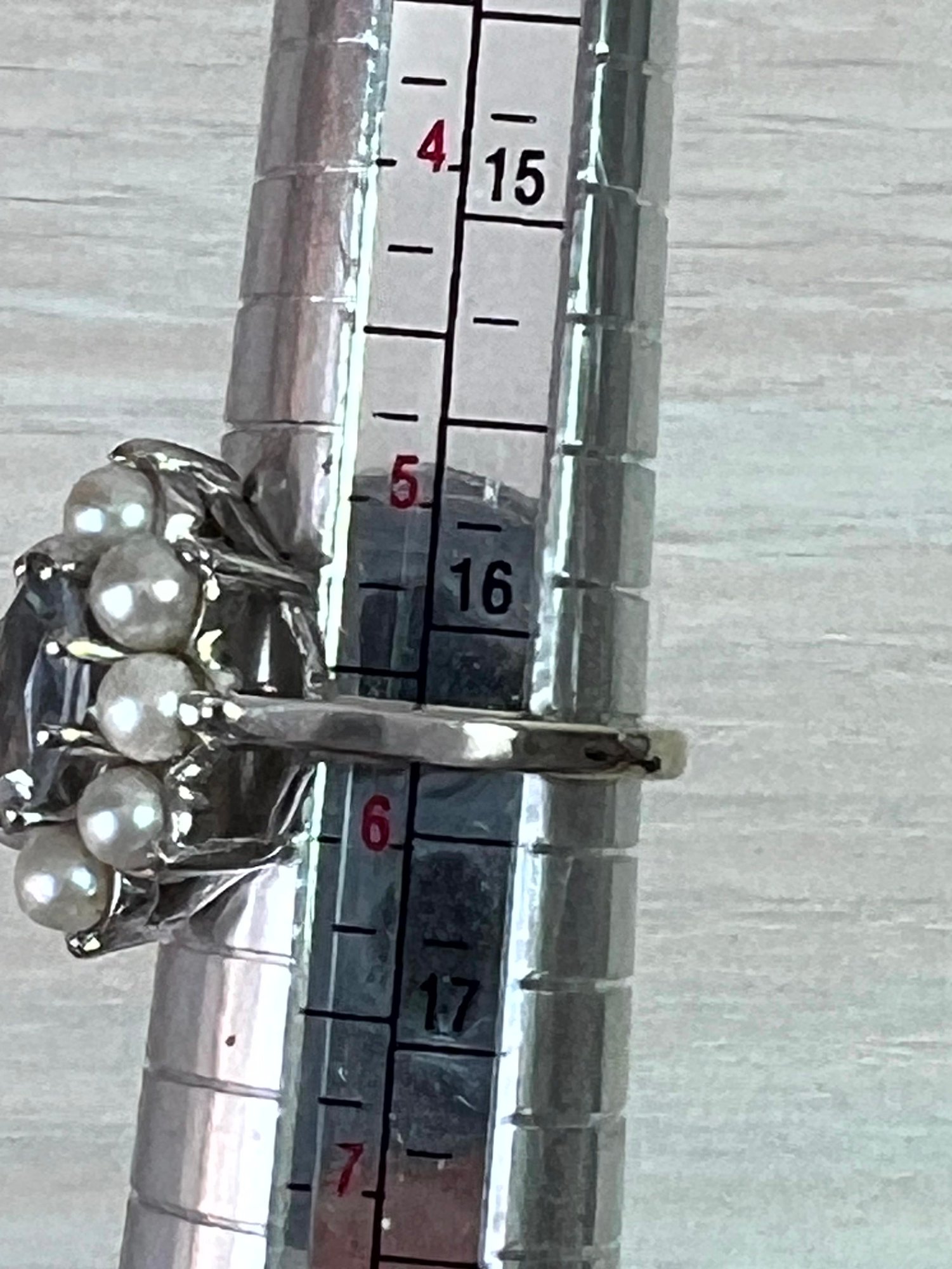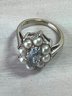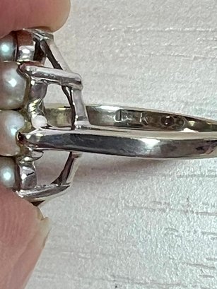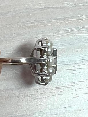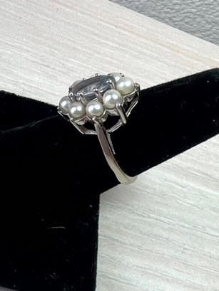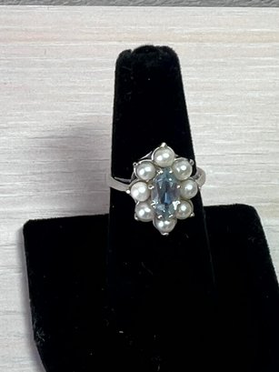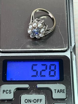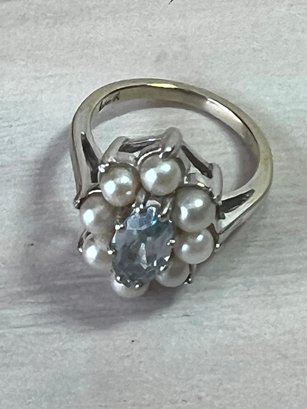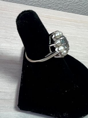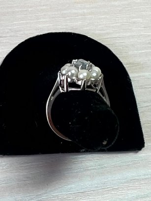 Vintage 14k white gold ring with blue stone and pearls (DL108)