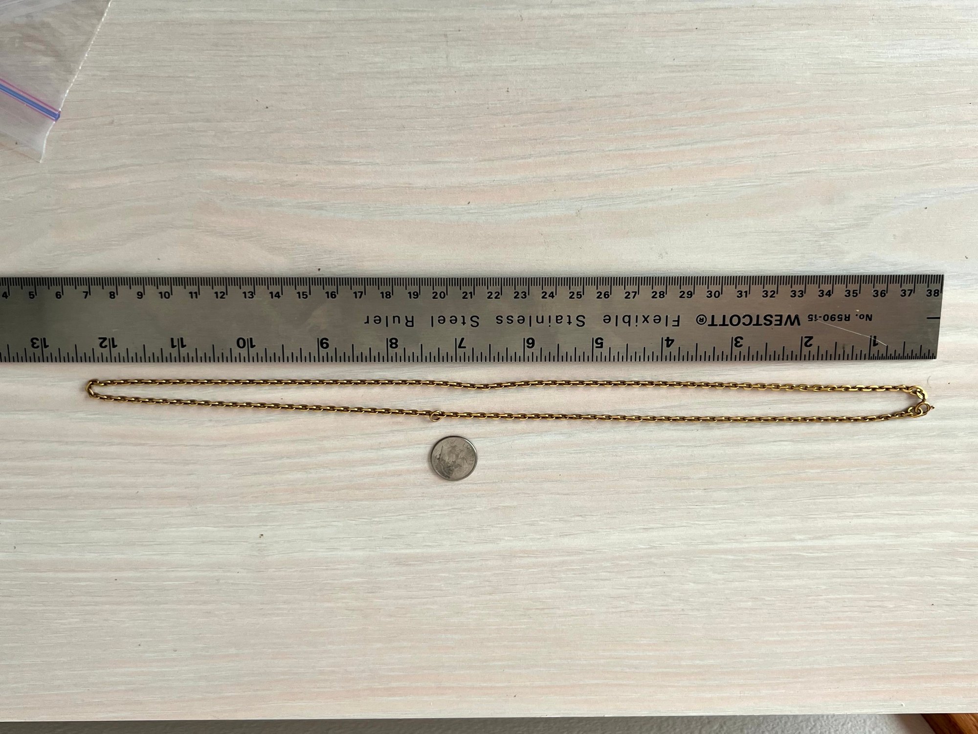 There is an extra loop, which is soldered closed partway down one side of the chain. It can be cut off.