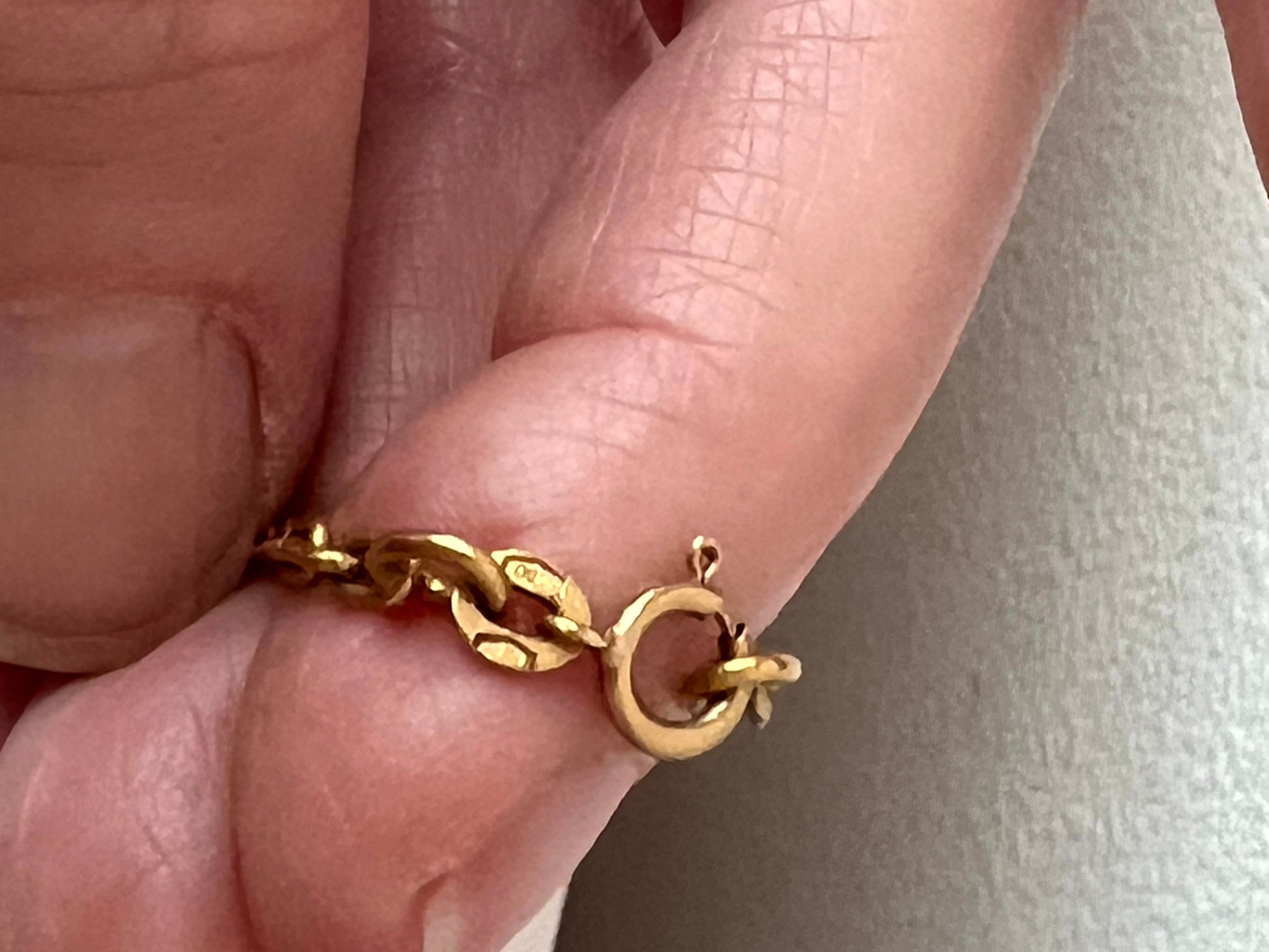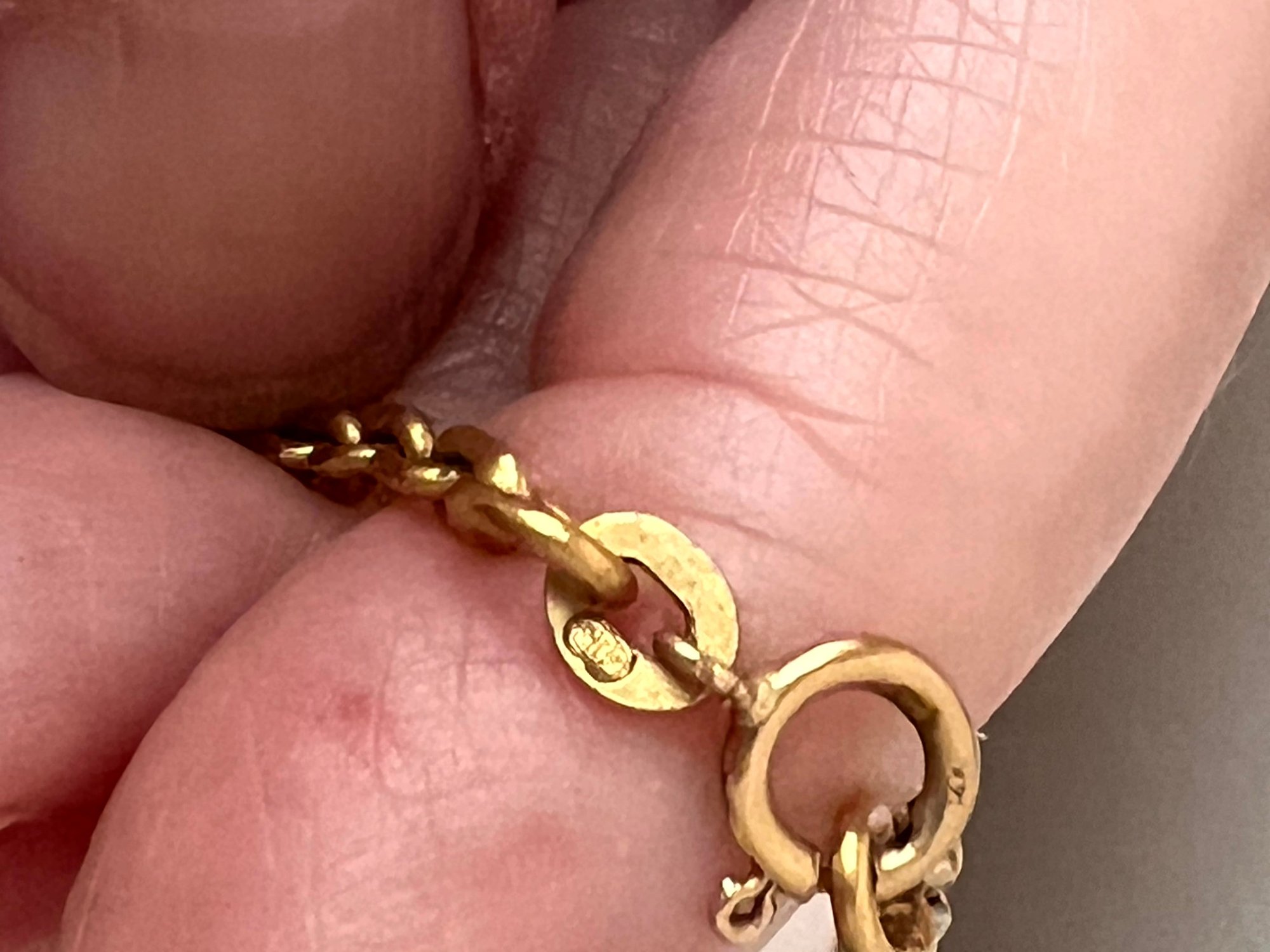 Marked 750 on the chain lozenge and 14k on the clasp.