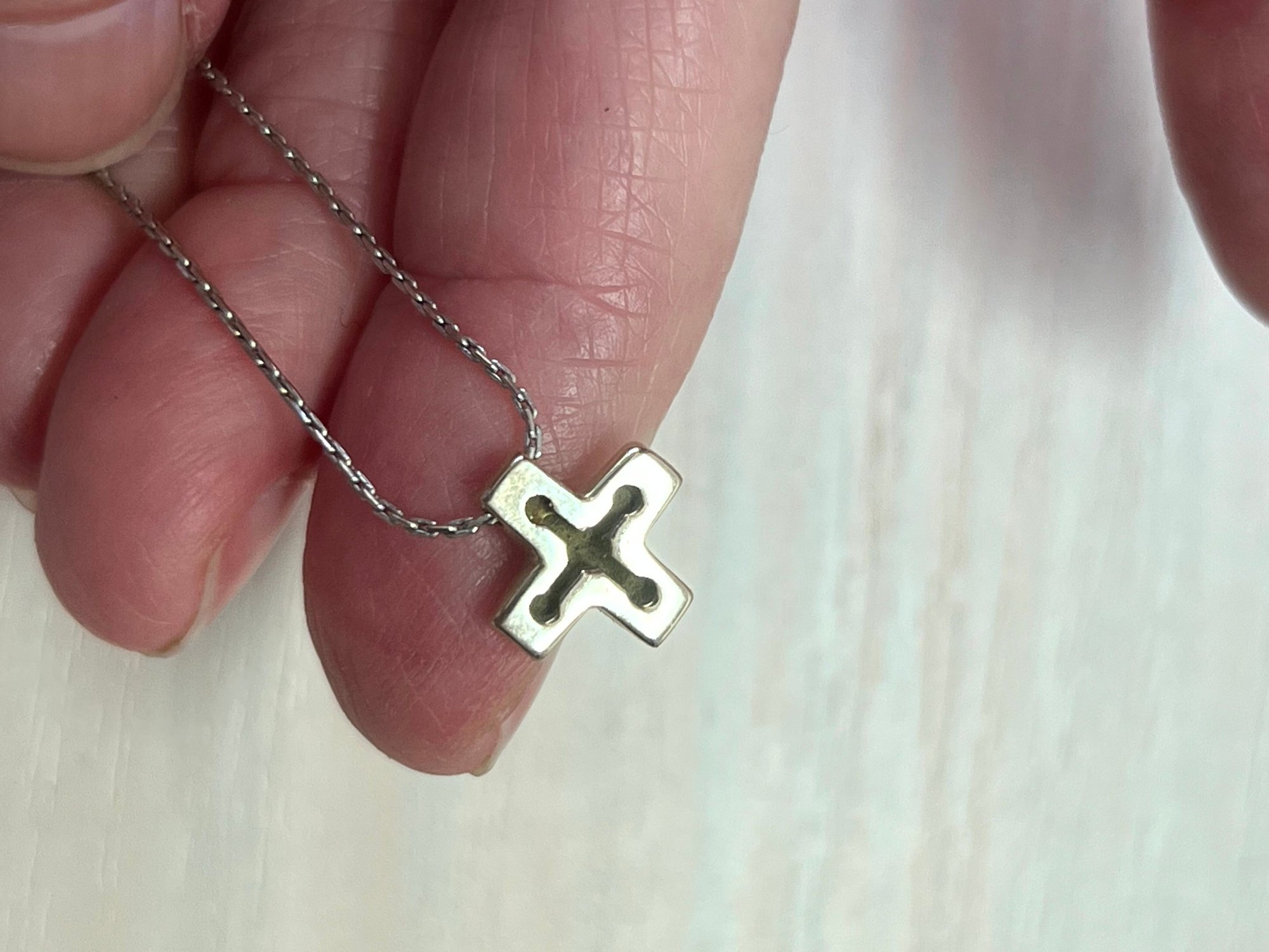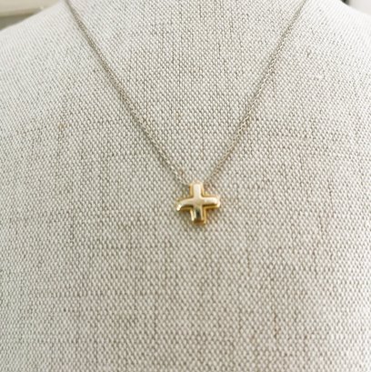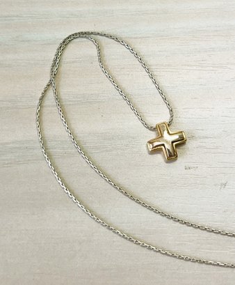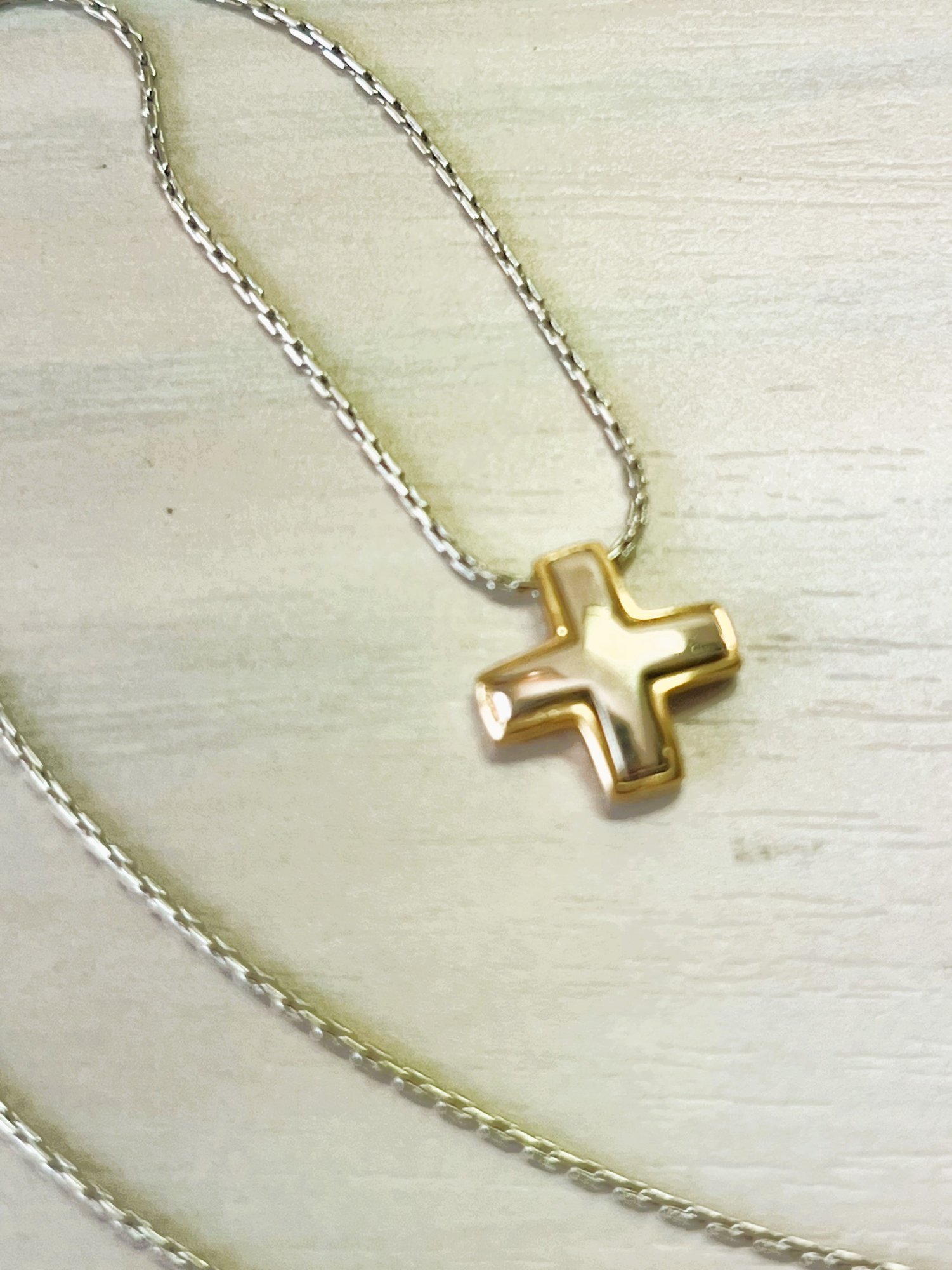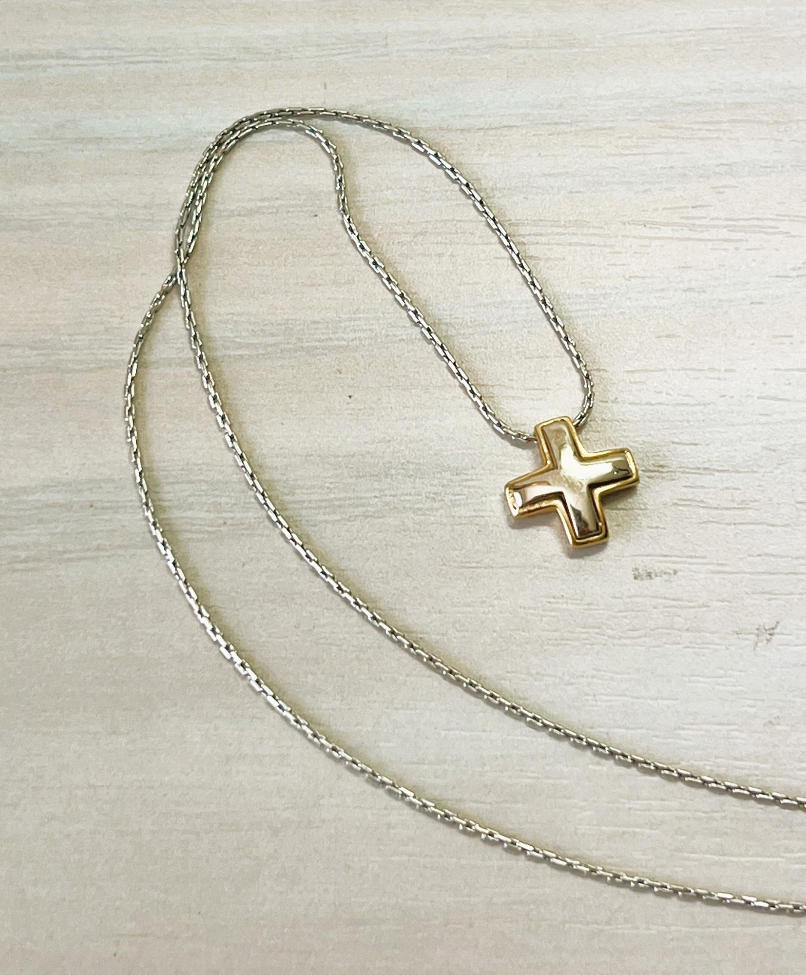 Vintage 18k white and yellow gold cross and chain (DL97)
