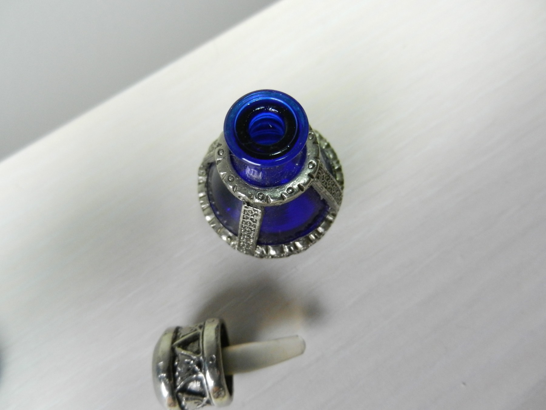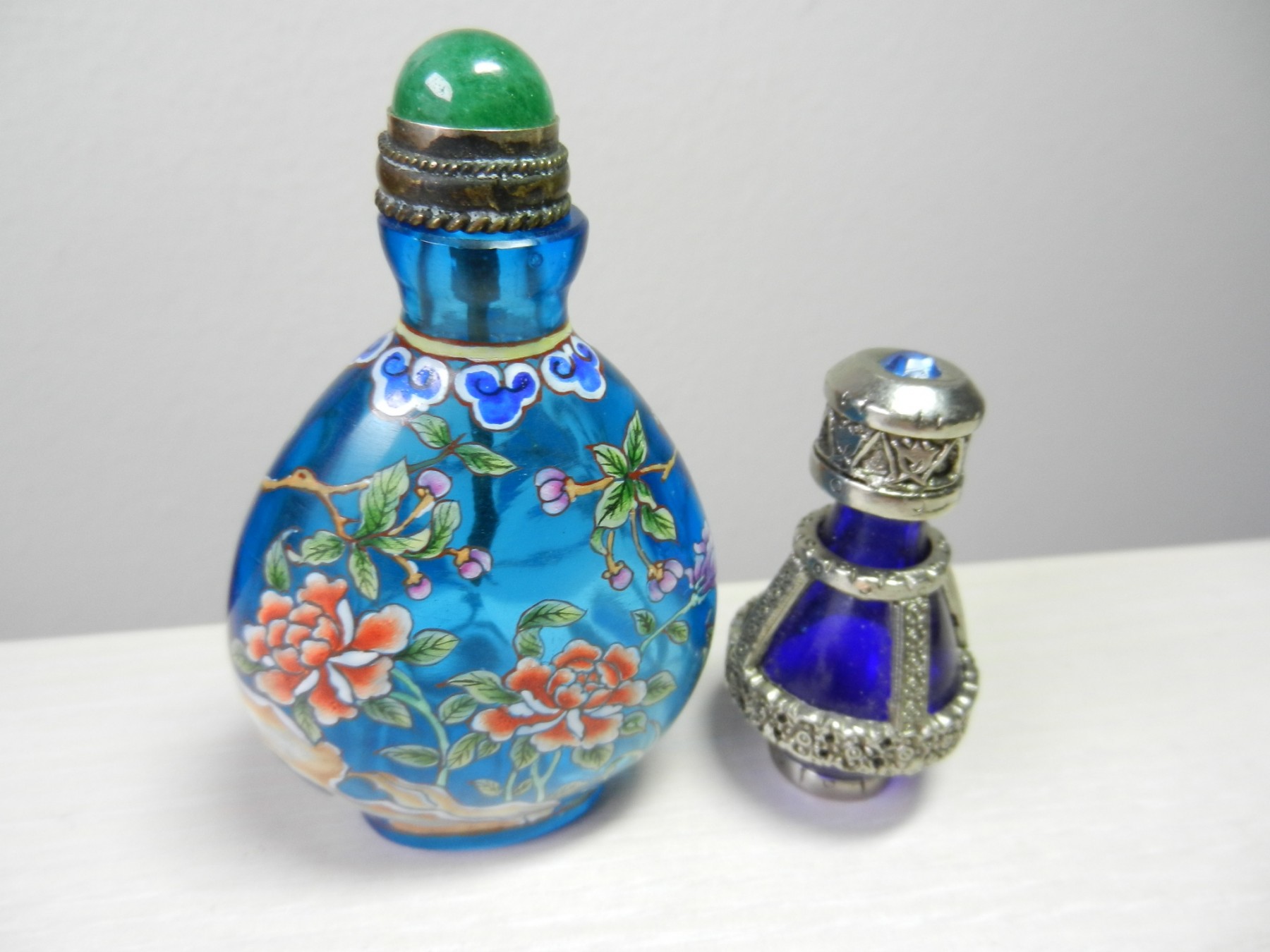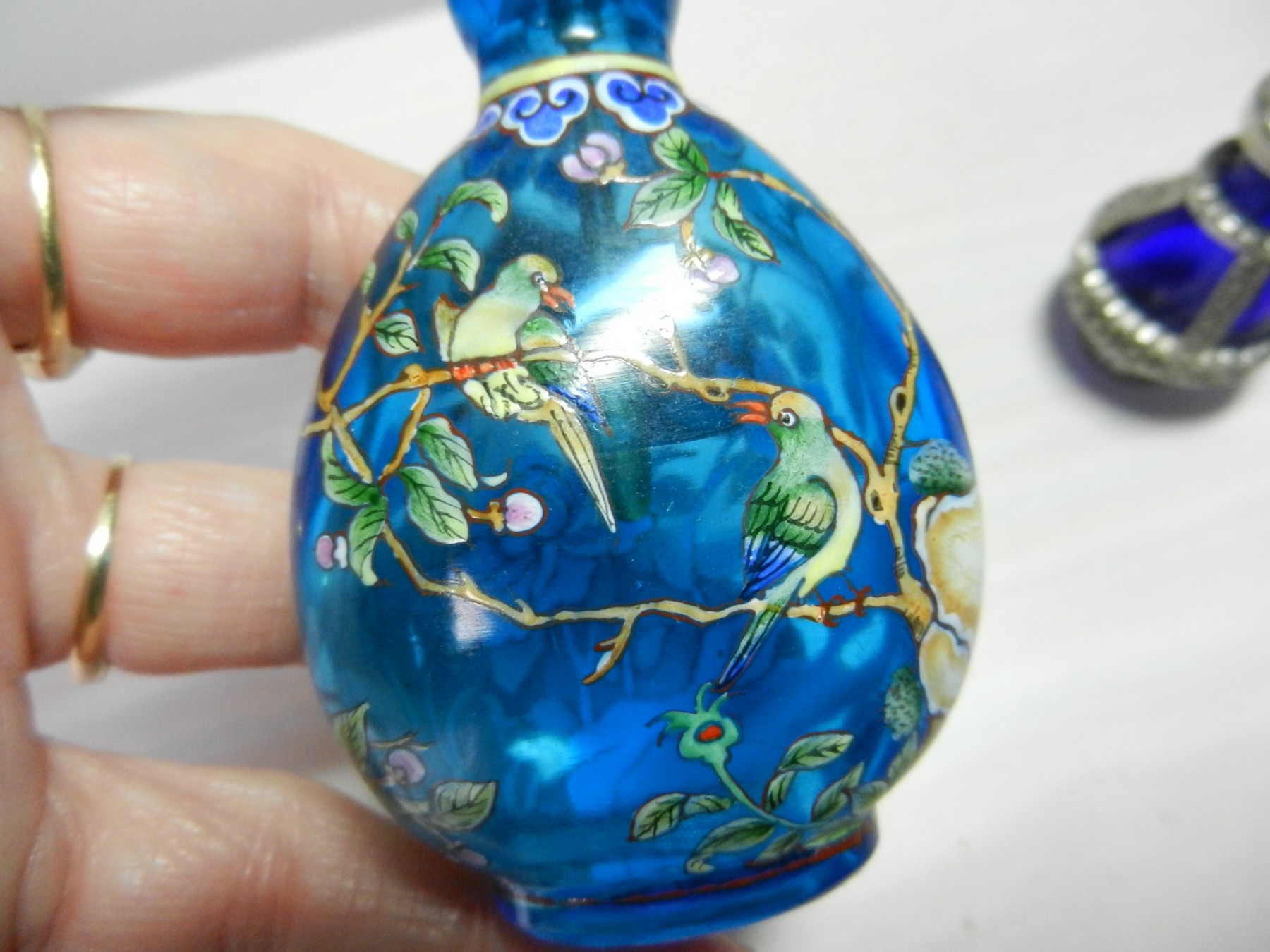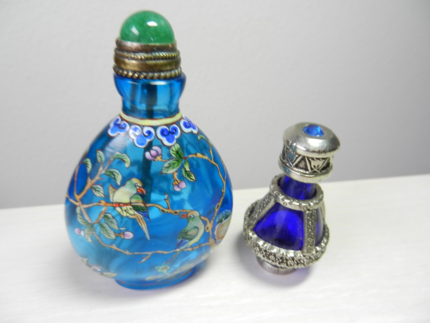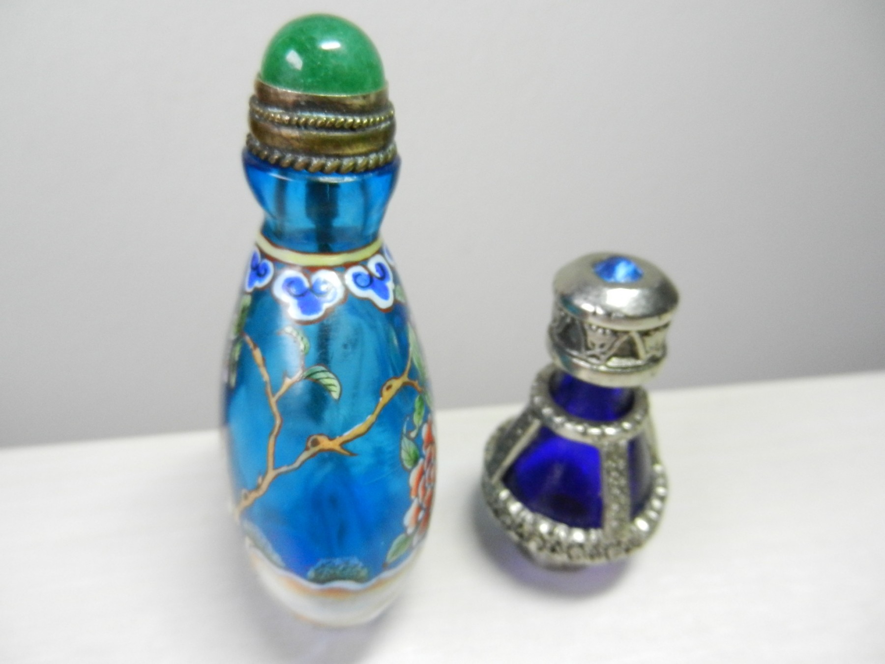 Vintage 2 blue glass snuff/perfume bottles (DP56)