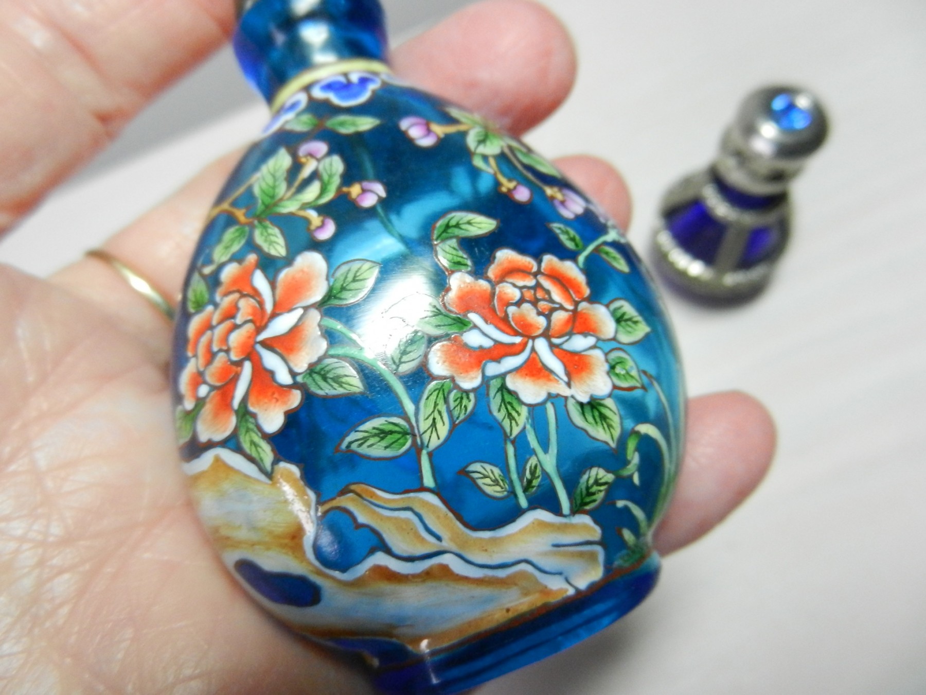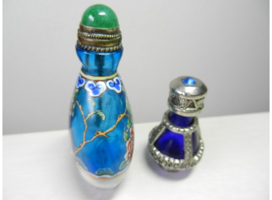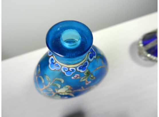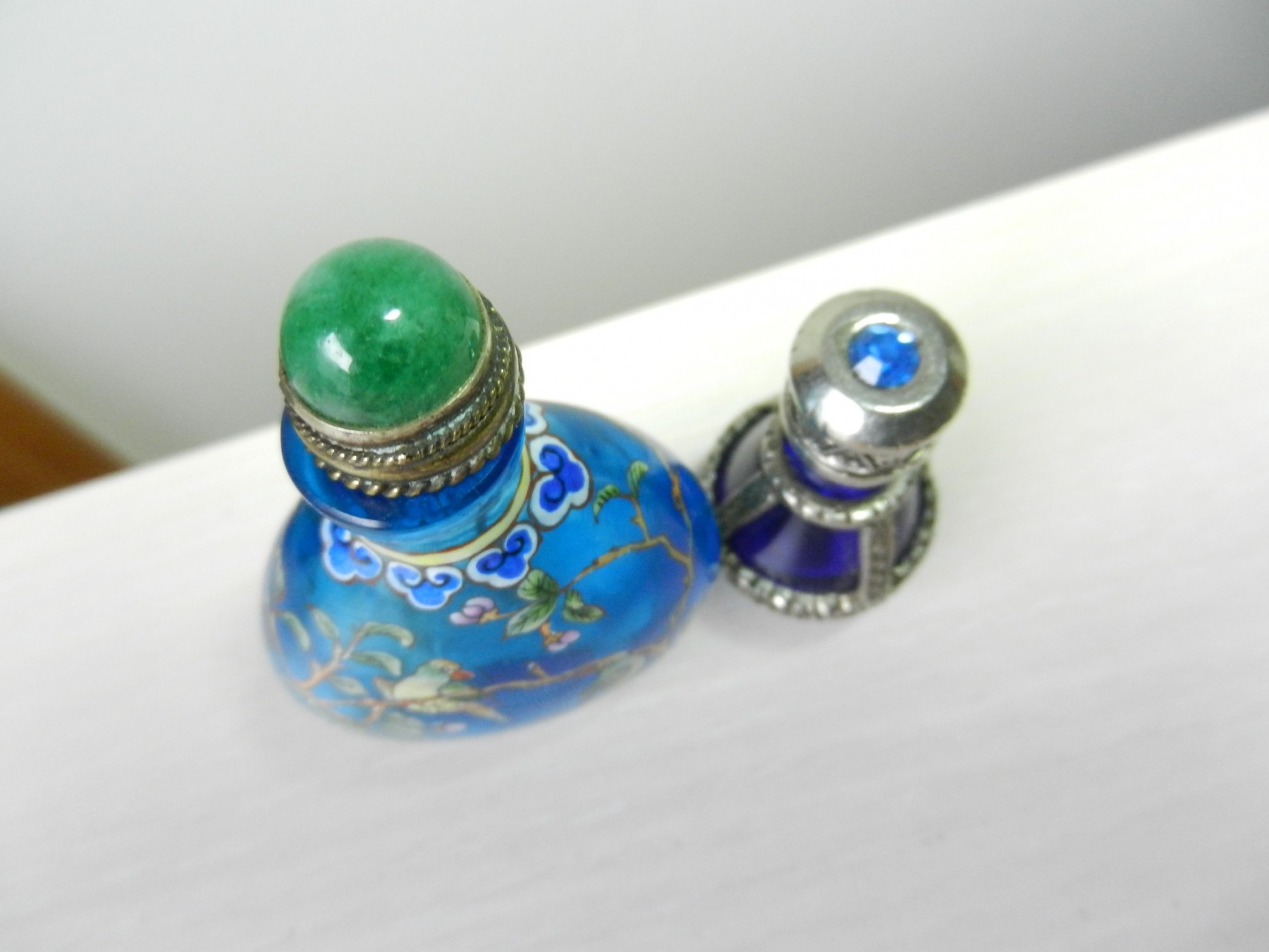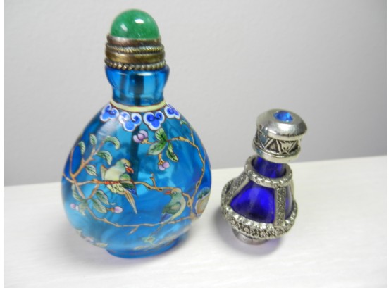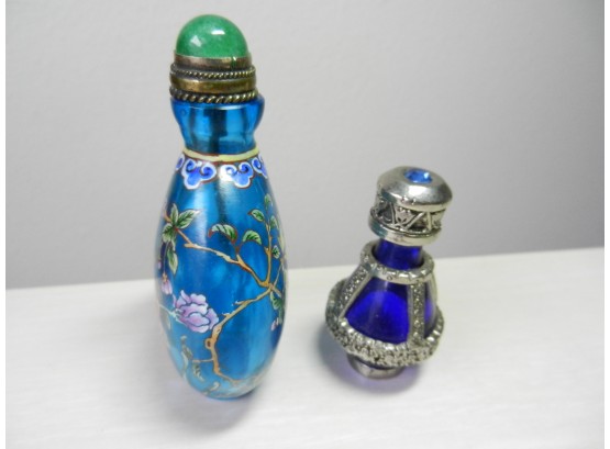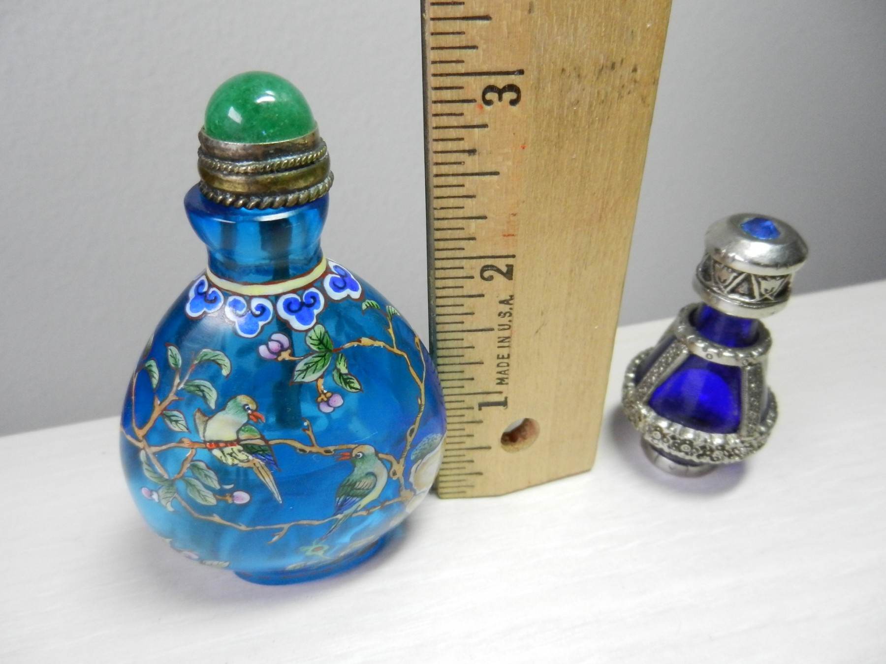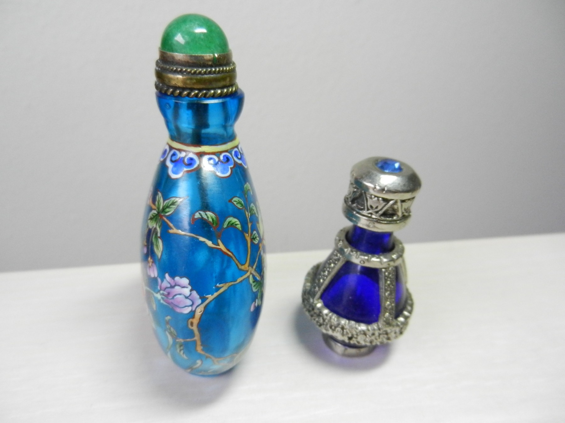 Vintage 2 blue glass snuff/perfume bottles (DP56)