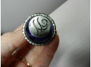 The larger one is approx. 3” high. The lid does not fit but just balances on the top. There is writing underneath it. The silver tone metal one has a symbol underneath. This one is probably a perfume bottle because of its stopper.