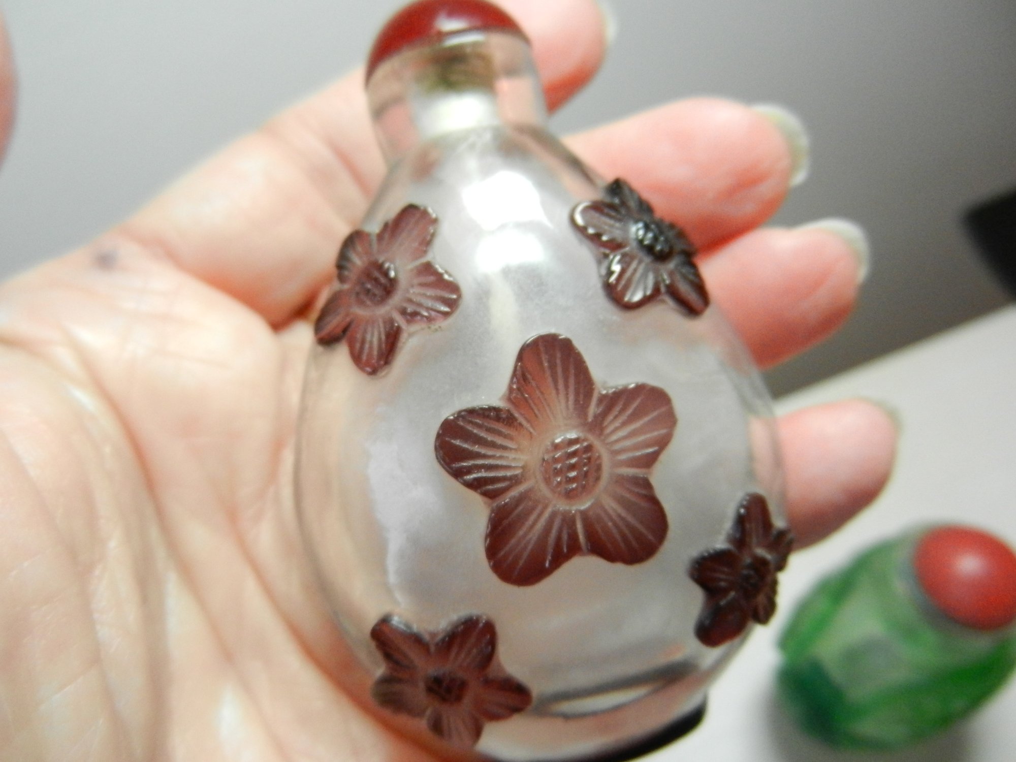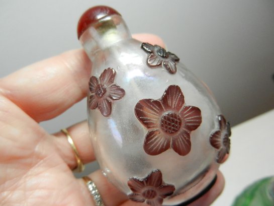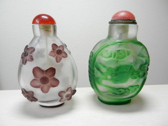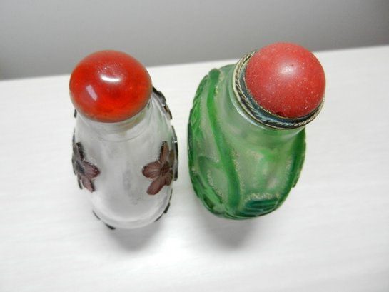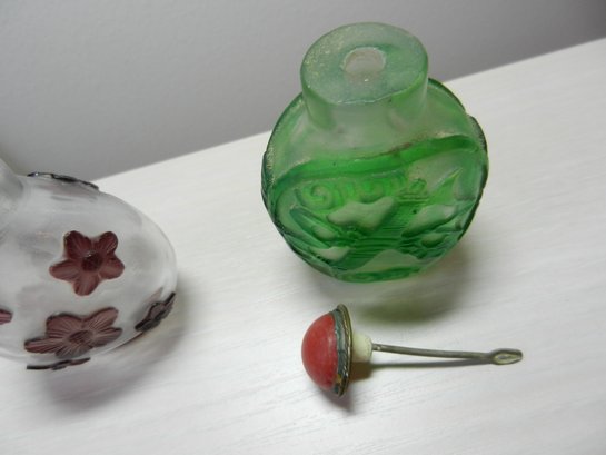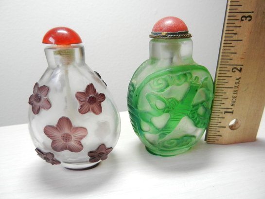 Vintage 2 glass cut to clear snuff bottles (DP26)